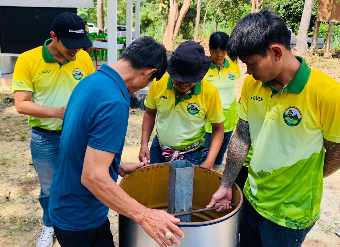 ดร.กฤษณ์ พงษ์เทพิน ผช.ผอ.ฝ่ายชุมชนสัมพันธ์ GULF กล่าวว่า การส่งเสริมนวัตกรรมถ่านไบโอชาร์แก่ชุมชน ว่า ถ่านไบโอชาร์ “ทำหนึ่งได้สาม” ถ่านไบโอชาร์ (Biochar) หรือ ถ่านชีวภาพ เป็นมากกว่าถ่านธรรมดา จากวัสดุชีวมวลจากป่าชุมชน ของเหลือใช้ทางการเกษตร เช่น กิ่งไม้ ใบไม้ ฟางข้าว หรือซังข้าวโพด ผ่านกระบวนการเผาแบบจำกัดออกซิเจน (Pyrolysis) ซึ่งเป็นกระบวนการที่สร้างคาร์บอนฯแบบเสถียรที่มีรูพรุนสูง นวัตกรรมนี้มีหลายรูปแบบ ถือเป็นว่าเป็นวิธีการที่ดีมาก สามารถสร้างประโยชน์ได้อย่างรอบด้าน ทั้งในมิติของการอนุรักษ์ป่าไม้ รักษาสิ่งแวดล้อม การฟื้นฟูดินทางการเกษตร และการลดคาร์บอน อนุรักษ์ป่า ลดมลภาวะ การผลิตและใช้ไบโอชาร์มีบทบาทสำคัญในการต่อสู้กับภาวะโลกร้อนและการอนุรักษ์ธรรมชาติอย่างแท้จริง เพราะ การกักเก็บคาร์บอนในดินระยะยาว (Carbon Sequestration) ไบโอชาร์เป็นถ่านที่มีคาร์บอนสูงและมีโครงสร้างที่เสถียรมาก เมื่อนำไปใส่ในดินจะทำหน้าที่เป็นแหล่งกักเก็บคาร์บอน ได้นานหลายร้อยถึงหลายพันปี ซึ่งช่วยลดปริมาณก๊าซคาร์บอนไดออกไซด์ CO2 ที่จะถูกปล่อยกลับสู่ชั้นบรรยากาศ ทำให้เกิดการ ลดโลกร้อน และชะลอการเปลี่ยนแปลงสภาพภูมิอากาศได้อย่างมีประสิทธิภาพ และ สอดคล้องกับกิจกรรมลดไฟป่า ของชุมชนด้วย ลดการเผาในที่โล่งและไฟป่า การนำเศษวัสดุเหลือใช้ทางการเกษตรและเศษกิ่งไม้ ใบไม้ในพื้นที่ป่าหรือไร่นา มาผลิตเป็นไบโอชาร์ เป็นการจัดการของเสียอินทรีย์วัตถุที่สร้างสรรค์ ช่วย ลดปริมาณเชื้อเพลิง ในธรรมชาติที่เสี่ยงต่อการเกิด ไฟป่า และยังช่วย ลดมลพิษฝุ่นควัน PM 2.5 ที่เกิดจากการเผาในที่โล่ง ซึ่งส่งผลดีต่อสุขภาพและสิ่งแวดล้อมโดยรวม ช่วยปรับปรุงคุณภาพดินให้พืชเติบโตได้ดีขึ้น ไบโอชาร์สามารถนำไปแช่จุลินทรีย์ เป็น “ถ่านจุลินทรีย์” สารปรับปรุงดินเป็นหัวใจสำคัญของการเกษตรที่ยั่งยืน เพิ่มการอุ้มน้ำ ไบโอชาร์มีรูพรุนสูงมาก (High Porosity) ทำหน้าที่เหมือนฟองน้ำ ช่วยให้ดินสามารถ เก็บน้ำและความชื้น ได้ยาวนานขึ้น ทำให้พืชทนทานต่อภาวะแล้ง เป็นบ้านของจุลินทรีย์ โครงสร้างรูพรุนเหล่านี้เป็นที่อยู่อาศัยที่สมบูรณ์แบบสำหรับ จุลินทรีย์ที่มีประโยชน์ ในดิน ซึ่งช่วยเพิ่มกิจกรรมทางชีวภาพของดิน กักเก็บและปลดปล่อยสารอาหารช่วย กักเก็บสารอาหาร และลดการชะล้างของปุ๋ย (ลดการสูญเสียไนโตรเจนและฟอสฟอรัส) พร้อมทั้งช่วย ลดความเป็นกรดของดิน ทำให้พืชสามารถดูดซึมสารอาหารได้ดีขึ้น ลดการใช้ปุ๋ยเคมีและเพิ่มผลผลิต การผลิตถ่านไบโอชาร์เป็นเชื้อเพลิง ปรับปรุงดิน จะสร้างอาชีพ สร้างรา