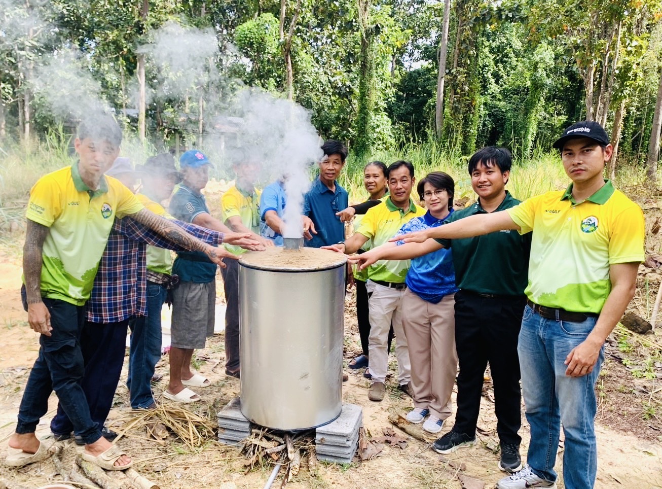 สำหรับกิจกรรมในครั้งนี้ GULF–CMWTE จับมือกับชุมชนบ้านทุ่งยาวฯ และวิสาหกิจชุมชนฯ นำองค์ความรู้ “ การผลิตถ่านไบโอชาร์“ มาอบรมสร้างความรู้และใช้เพื่อเพิ่มศักยภาพรักษาสิ่งแวดล้อมป่าชุมชน ช่วย กักเก็บคาร์บอนฯ ป้องกันและลดปริมาณเชื้อเพลิงไฟป่า และเป็นการสร้างรายได้ชุมชนอีกช่องทางหนึ่ง โดย ได้รับความรู้จาก วิทยากรผู้เชี่ยวชาญ คือ นายธนกร นันติ ประธานวิสาหกิจชุมชนไม้ดอกเมืองพร้าว การศึกษาเกษตรอัจฉริยะ มหาวิทยาลัยแม่โจ้ ผู้มีประสบการณ์ความสำเร็จ ในโครงการต้นกล้าชุมชนการใช้การผลิตถ่านไบโอชาร์ ผลงานลดพื้นที่ การเผภาคเกษตรกว่า 600 ไร่ ลดคาร์บอนฯภาคเกษตรมากถึง 9,000 กิโลกรัมคาร์บอนต่อเดือน เป็นวิทยากรด้านการผลิตถ่านไบโอชาร์แก่ชุมชนจำนวนมาก เป็นต้น ได้มาร่วมจัดอบรมเชิงปฏิบัติการ ด้านกระบวนการใช้ เตาไบโอชาร์ผลิตถ่านไบโอชาร์ แก่ชุมชนในพื้นที่บ้านทุ่งยาวฯ และหมู่ๆใกล้เคียง เข้าร่วมกว่า 50 คน และได้สาธิตกระบวนการผลิตจริง โดยผู้เข้าร่วมอบรม ผลการผลิตได้ถ่านไบโอชาร์คุณภาพเยี่ยม อบแห้ง 100 % ซึ่งชุมชนสามารถทำได้ และจะขยายผลต่อไป