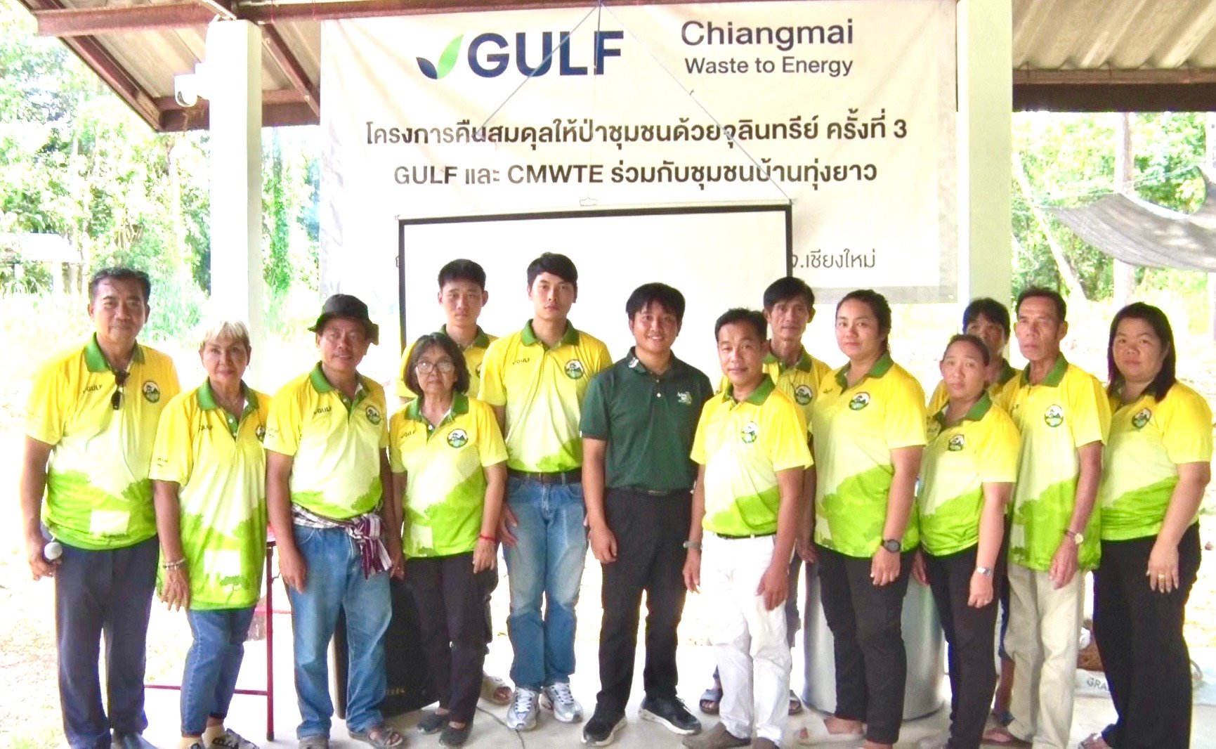 วันที่ 7-8 ตุลาคม 2568 กลุ่มบริษัทกัลฟ์ (GULF) และ บริษัทเชียงใหม่ เวสท์ ทู เอ็นเนอร์จี จำกัด (CMWTE) นำโดย ดร.กฤษณ์ พงษ์เทพิน ผู้ช่วยผู้อำนวยการฝ่ายชุมชนสัมพันธ์ GULF (วิทยากรส่งเสริมโครงการฯ ) ร่วมกับ วิสาหกิจชุมชนอนุรักษ์ป่าต้นน้ำห้วยต้นยาง บ้านทุ่งยาว ม.8 ต.ป่าป้อง อ.ดอยสะเก็ด จ.เชียงใหม่ นำโดย นายสมพงค์ เจริญศิริ กำนันตำบลป่าป้อง อ.ดอยสะเก็ด จ.เชียงใหม่ และประธานวิสาหกิจชุมชนฯ ร่วมกันจัดกิจกรรมต่อเนื่อง ภายใต้โครงการ “ คืนสมดุลให้ป่าชุมชนด้วยจุลินทรีย์ ” ซึ่งส่งเสริมและสนับสนุนจาก GULF–CMWTE ก้าวสู่ปีที่ 3 โดยมีเป้าหมายในการอนุรักษ์ป่าต้นน้ำห้วยต้นยาง ซึ่งมีพื้นที่ 2,307 ไร่ โดยที่ผ่านมาได้ดำเนินงานก้าวหน้าหลายด้าน ได้แก่ การอบรมความรู้ด้านนวัตกรรมจุลินทรีย์ฐานชีวภาพ การจัดตั้งศูนย์เรียนรู้และธนาคารจุลินทรีย์ชุมชน การผลิตสินค้าจากจุลินทรีย์เพื่อรักษาสิ่งแวดล้อม และการเกษตร เพื่อเสริมสร้างรายได้แก่ชุมชน อาทิ เช่น ปุ๋ยหมัก ปุ๋ยน้ำชีวภาพ (อาหารพืช) จุลินทรีย์บำบัดน้ำเสีย และ การเกษตรต่างๆ การอบรมและศึกษาดูงาน การฟื้นฟูป่า ด้วย “ไมคอร์ไรซ่า” การปลูกป่าเพิ่มพื้นที่สีเขียว การทำฝายชะลอน้ำ และ แปลงทดลองป่าไม้เศรษฐกิจด้วยเห็ดไมคอร์ไรซ่า ส่งเสริมครัวเรือนพึ่งตนเอง และปลูกป่าครัวเรือน ฯลฯ ปีที่ผ่านมา ได้ส่งเสริมการรวมกลุ่มจดทะเบียนเป็น “วิสาหกิจชุมชนอนุรักษ์ป่าต้นน้ำห้วยต้นยาง “ กับ สำนักงานเกษตรอำเภอดอยสะเก็ด จ.เชียงใหม่ เพื่อยกระดับการจัดการสร้างกลไกในการบริหารจัดการที่มีประสิทธิภาพและขับเคลื่อนงานอนุรักษ์ป่าชุมชนอย่างป็นระบบมากยิ่งขึ้น ตามหลักการพัฒนาที่ยั่งยืน (Sustainable) โดยกำหนดยุทธศาสตร์เชื่อมโยง 3 องค์ประกอบหลัก คือ ทรัพยากรธรรมชาติและสิ่งแวดล้อม เศรษฐกิจและสังคม ควบคู่กัน รวมถึงการใช้ทรัพยากรป่าไม้ในท้องถิ่น เช่น ใบไม้ เศษไม้ ในป่าซึ่งเป็นเชื้อเพลิงไฟป่าและการย่อยสลายตามธรรมชาติและไฟป่าก่อเกิดคาร์บอนไดออกไซด์ และอื่นๆซึ่งเป็นมลภาวะในอากาศ (ภาวะโลกร้อน) และ เศษวัสดุทางการเกษตรและครัวเรือน นำกลับมาใช้ประโยชน์ในการลดรายจ่ายสร้างผลิตภัณฑ์สร้างรายได้หรือมูลค่าเพิ่มเชิงเศรษฐกิจ และการจัดสรรค์เพื่อเชื่อมโยงพัฒนาสังคมและสิ่งแวดล้อมอย่างยั่งยืน เป็นต้น