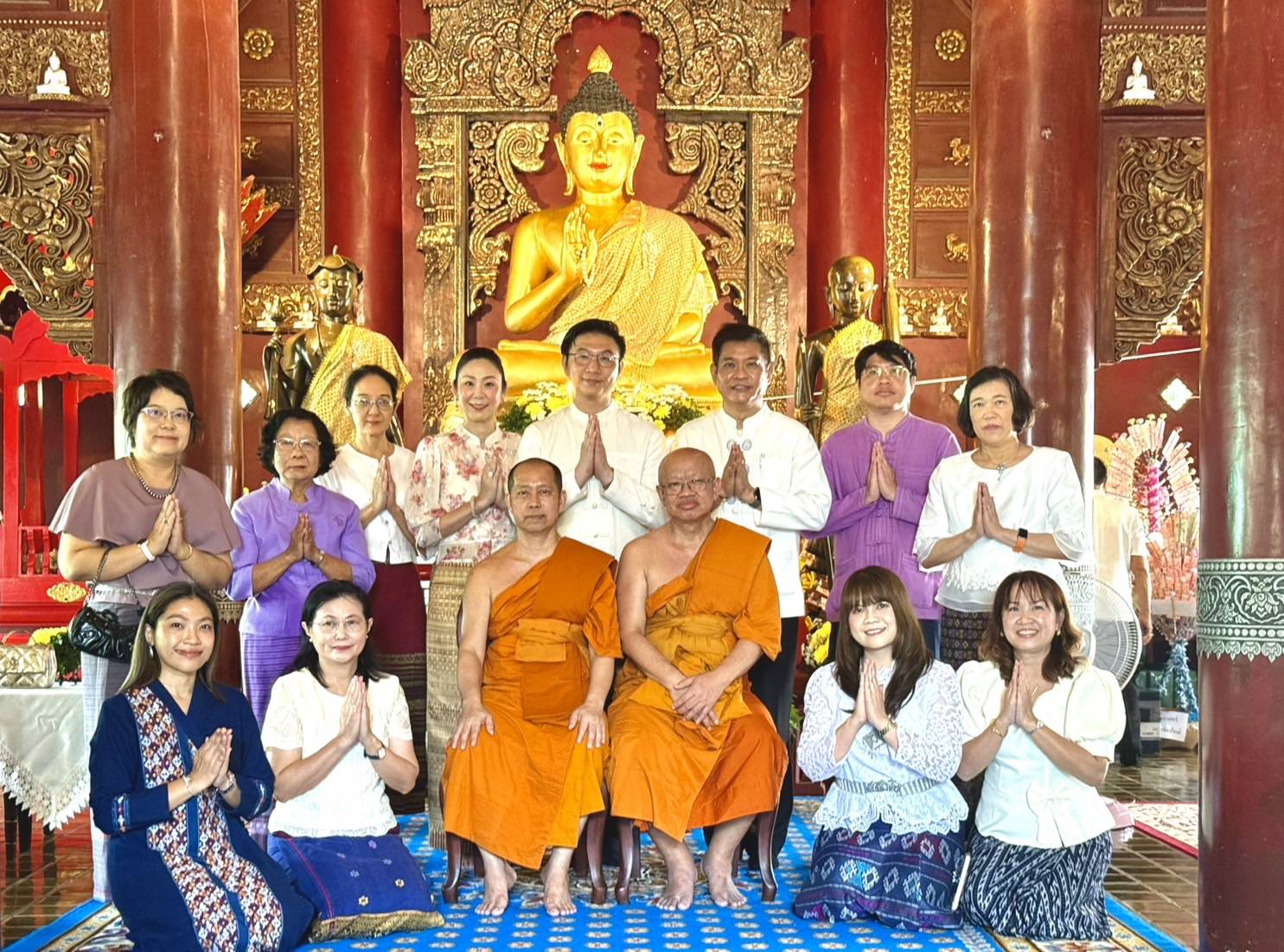 รศ.พญ.ยุพา สุมิตสวรรค์ ที่ปรึกษาผู้ทรงคุณวุฒิ คณะแพทยศาสตร์ มช. พร้อมด้วย คุณวีรชาติ ชูฤทธิ์ หัวหน้าฝ่ายการพยาบาล ปฏิบัติหน้าที่รองผู้อำนวยการ โรงพยาบาลมหาราชนครเชียงใหม่, คุณมะลิวรรณ หินทอง เลขานุการคณะแพทยศาสตร์ ผู้บริหารฝ่ายการพยาบาล หัวหน้างาน และบุคลากรคณะแพทยศาสตร์ มช. ร่วมพิธีทำบุญทอดกฐินสามัคคี ประจำปี 2568 วัดปันเสา เพื่อปฏิสังขรณ์วิหาร และซ่อมแซมกุฏิสงฆ์