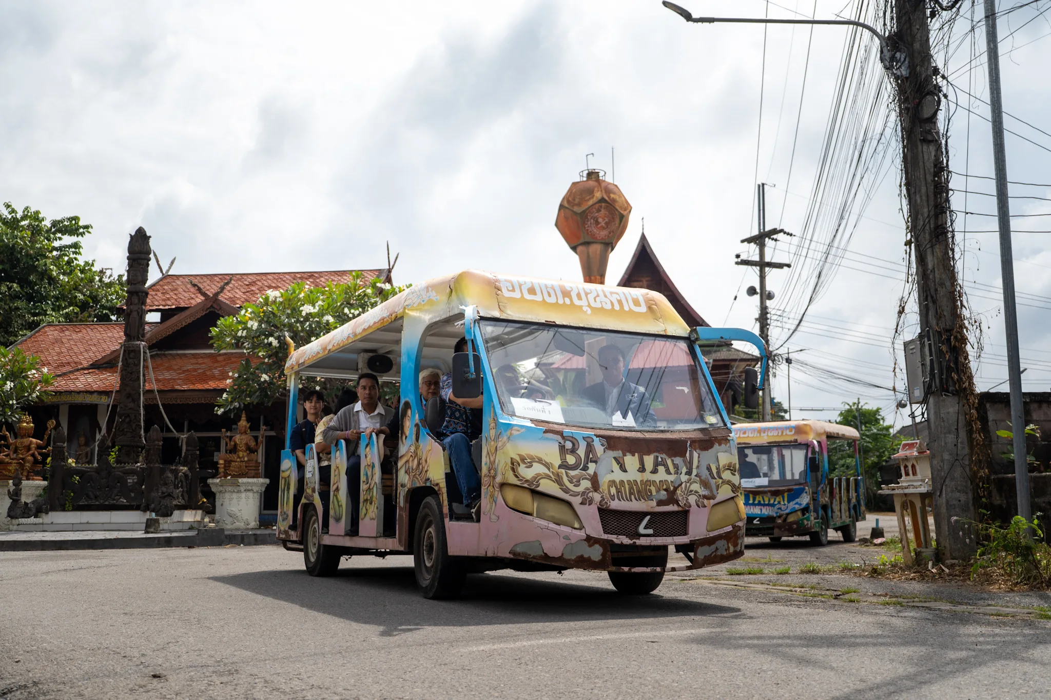 เริ่มต้นทริปด้วยการไหว้พระขอพรที่ “วัดถวาย” และเยี่ยมชม “พิพิธภัณฑ์เฉลิมพระเกียรติฯ วัดถวาย” ทำความรู้จักประวัติความเป็นมาของชุมชน ต่อด้วยรับประทานอาหารเหนือที่ร้านของคนในท้องถิ่นอย่างร้าน “ขนมจีนป้าคำ” และ “ข้าวซอยตานนท์” ช่วงบ่าย ร่วมทำงานหัตถกรรมไม้แกะสลัก เดินเส้นแต่งลาย ลงรักปิดทอง พร้อมเลือกซื้อสินค้าจากคนในชุมชน และปั่นจักรยานเที่ยวชมวิถีชีวิตที่ “ชุมชนบ้านถวายสองฝั่งคลอง” ปิดท้ายด้วยแหล่งท่องเที่ยวแนวไลฟ์สไตล์อย่างคาเฟ่ที่แนะนำโดยคนท้องถิ่น