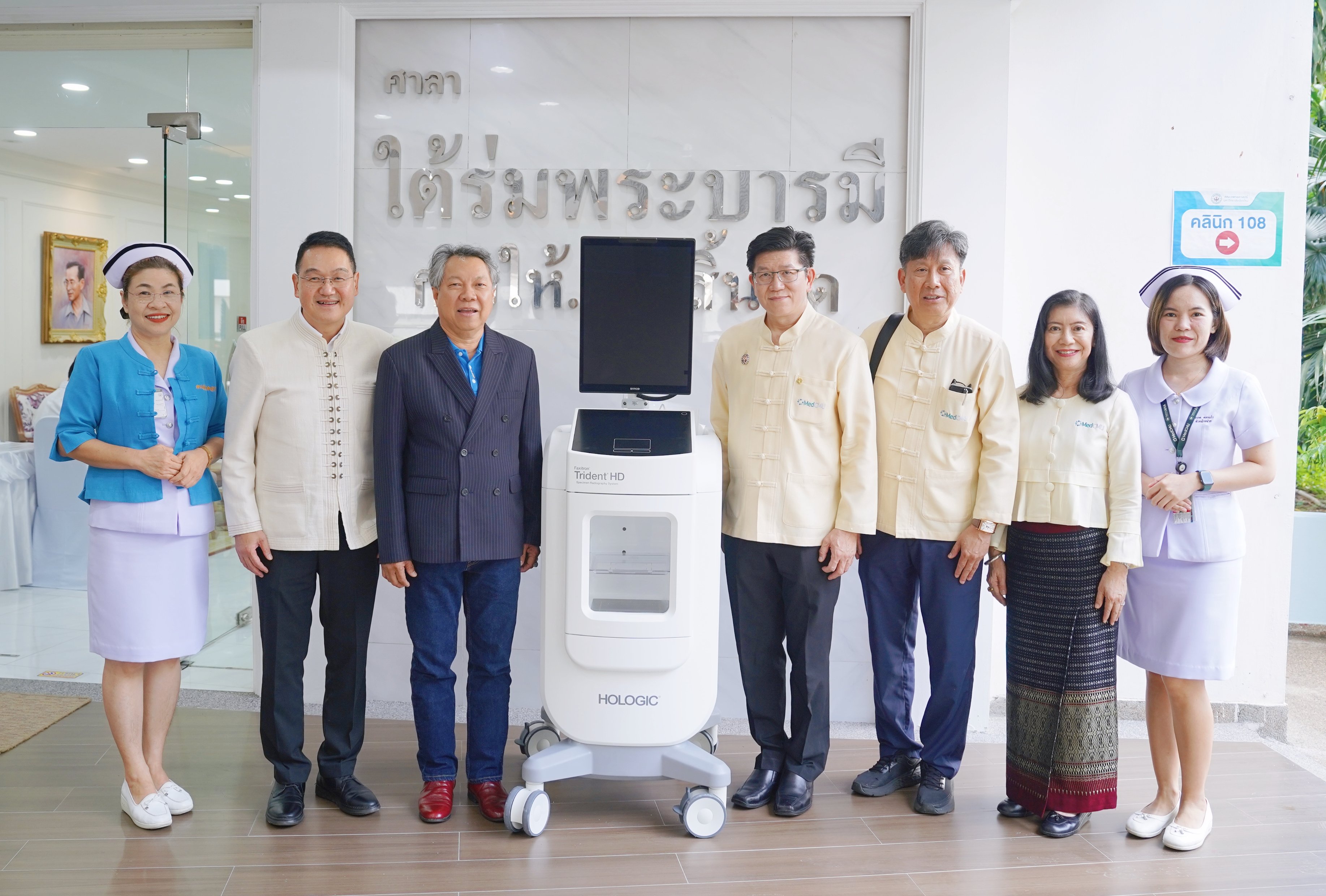 รศ.นพ.นเรนทร์ โชติรสนิรมิต คณบดีคณะแพทยศาสตร์ มหาวิทยาลัยเชียงใหม่ พร้อมด้วย ศ.(เชี่ยวชาญพิเศษ) นพ.บรรณกิจ โลจนาภิวัฒน์ ที่ปรึกษาผู้ทรงคุณวุฒิ คณะแพทยศาสตร์ มช., รศ.นพ.ณัฐพงศ์ โฆษชุณหนันท์ รองคณบดีด้านบริหารทั่วไป คณะแพทยศาสตร์ มช. และคุณพัชรา อุบลศรี ที่ปรึกษาประธานมูลนิธิโรงพยาบาลสวนดอก รับมอบเครื่องเอ๊กซเรย์ตัวอย่างชิ้นเนื้อเต้านม มูลค่า 5,000,000 บาท จากคุณสมคิด รุจีปกรณ์ กรรมการและเลขาธิการมูลนิธิสุทธิรัตน์ อยู่วิทยา เพื่อนำไปใช้ในกิจการของห้องผ่าตัดโรงพยาบาลมหาราชนครเชียงใหม่