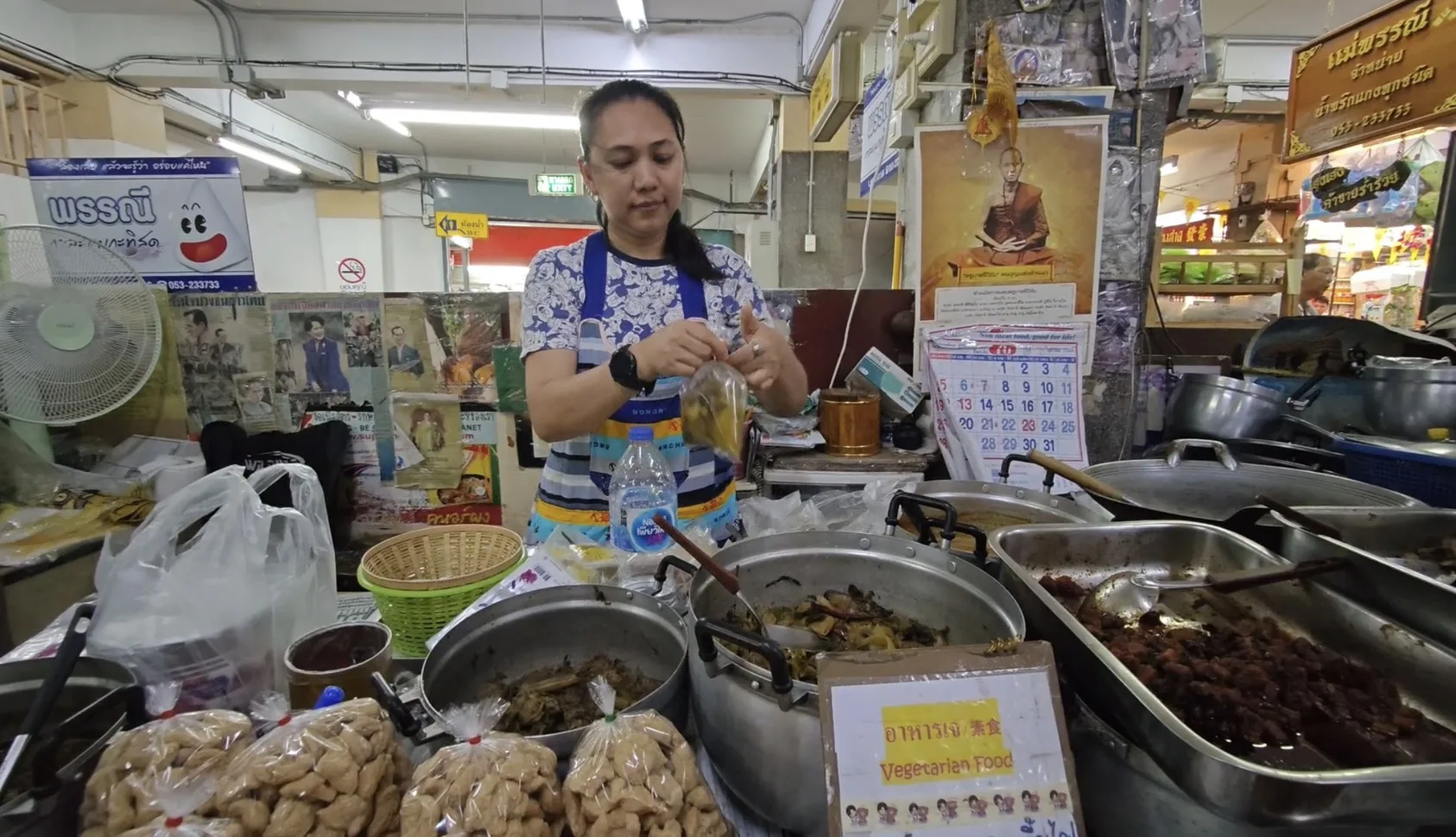 เช่นเดียวกับร้านอาหารเจปรุงสำเร็จที่ตลาดวโรรส ที่เตรียมทำอาหารเจวันละกว่า 20 เมนู ให้กับลูกค้าได้เลือกซื้อไปรับประทาน พร้อมเมนูพิเศษเป็นลาบเจ พะโล้เจ ต้มหน่อไม้จีน ที่ทำเฉพาะช่วงเทศกาล ส่วนในช่วงนี้ราคาพืชผักแพงจากน้ำท่วมแหล่งปลูกหลายจังหวัด และปรับขึ้นราคาตามอุปสงค์อุปทาน แต่ทางร้านจะยังคงขายอาหารราคาเดิมถุงละ 35-40 บาท เพื่อร่วมเป็นส่วนหนึ่งของเทศกาลและช่วยชาวบ้านประหยัดเงิน