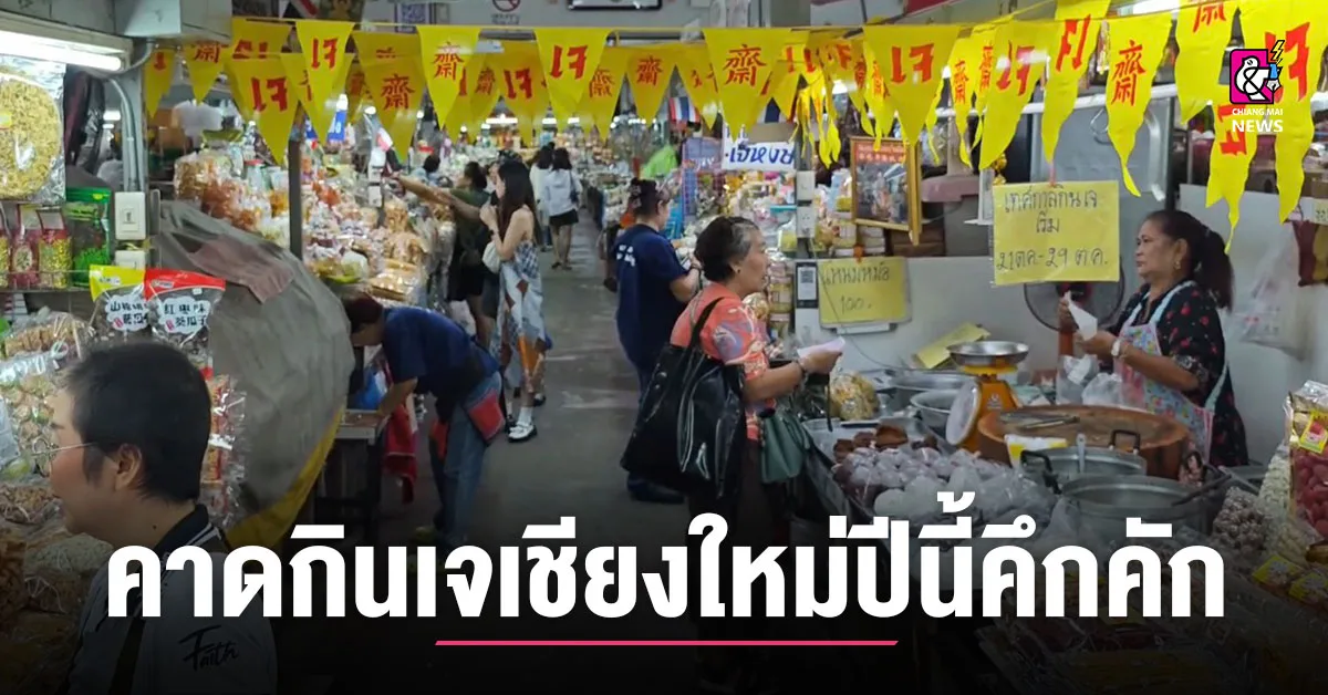 บรรยากาศก่อนเข้าสู่เทศกาลกินเจที่จังหวัดเชียงใหม่ เริ่มคึกคัก ตลาดสดหลายแห่งตกแต่งธงเจสีเหลืองต้อนรับเทศกาล ร้านค้านำสินค้าวัตถุดิบทำอาหารเจออกมาวางจำหน่ายให้ประชาชนซื้อไปเตรียมทำอาหารรับประทานในเทศกาลที่จะมีขึ้นระหว่างวันที่ 21-29 ตุลาคม นี้ มีทั้ง ขาเห็ดเจ เห็ดลายญี่ปุ่น เห็ดหอมแห้ง ลูกชิ้นเจ โปรตีนเกษตร เต้าหู้ และอีกมากมายหลายเมนู โดยแม่ค้าเชื่อว่าเทศกาลกินเจเชียงใหม่ปีนี้จะคึกคัก เนื่องจากปีที่ผ่านมาจังหวัดเชียงใหม่ ประสบอุทกภัยเป็นวงกว้างทำให้ประชาชนจำนวนไม่น้อยพลาดถือศีลกินเจ
