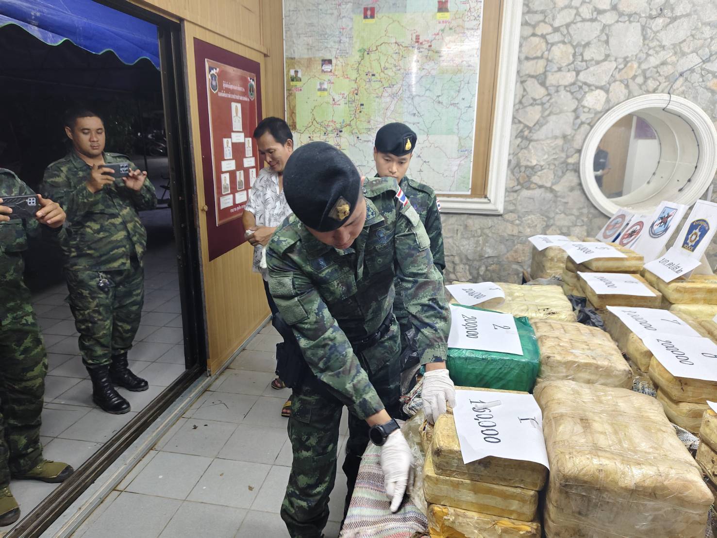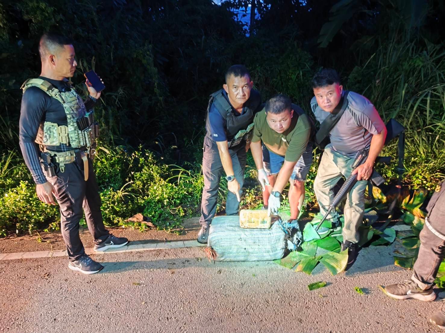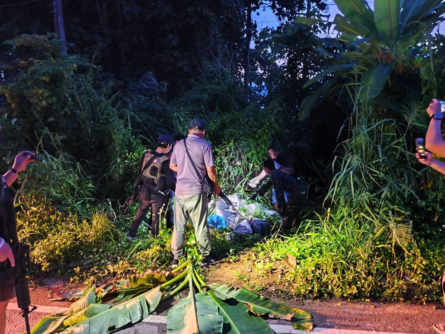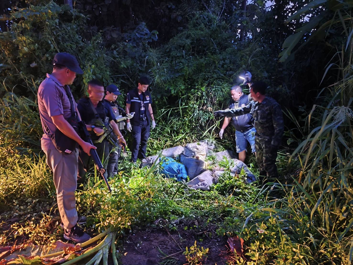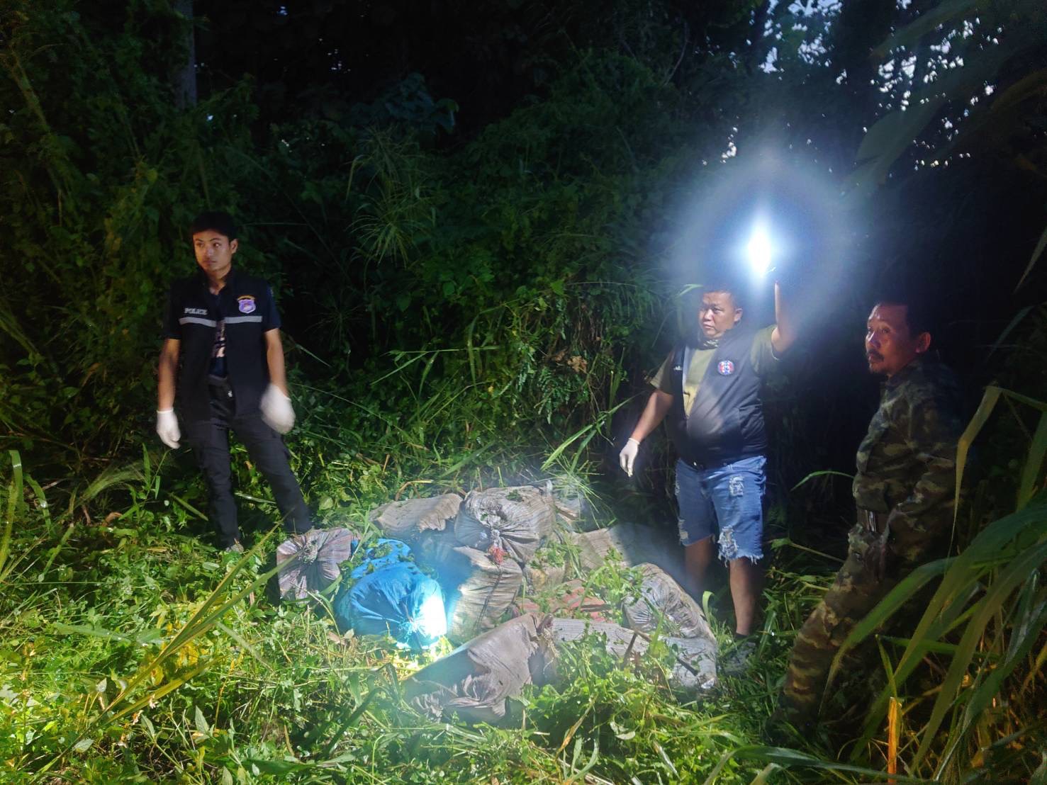 ยาบ้าพรางถุงกระสอบ ซุกโพลงหญ้าข้างทาง ยาบ้าหรือเมทแอมเฟตามีจำนวน 1,180 มัด หรือ กว่า 2,360,000 เม็ด
