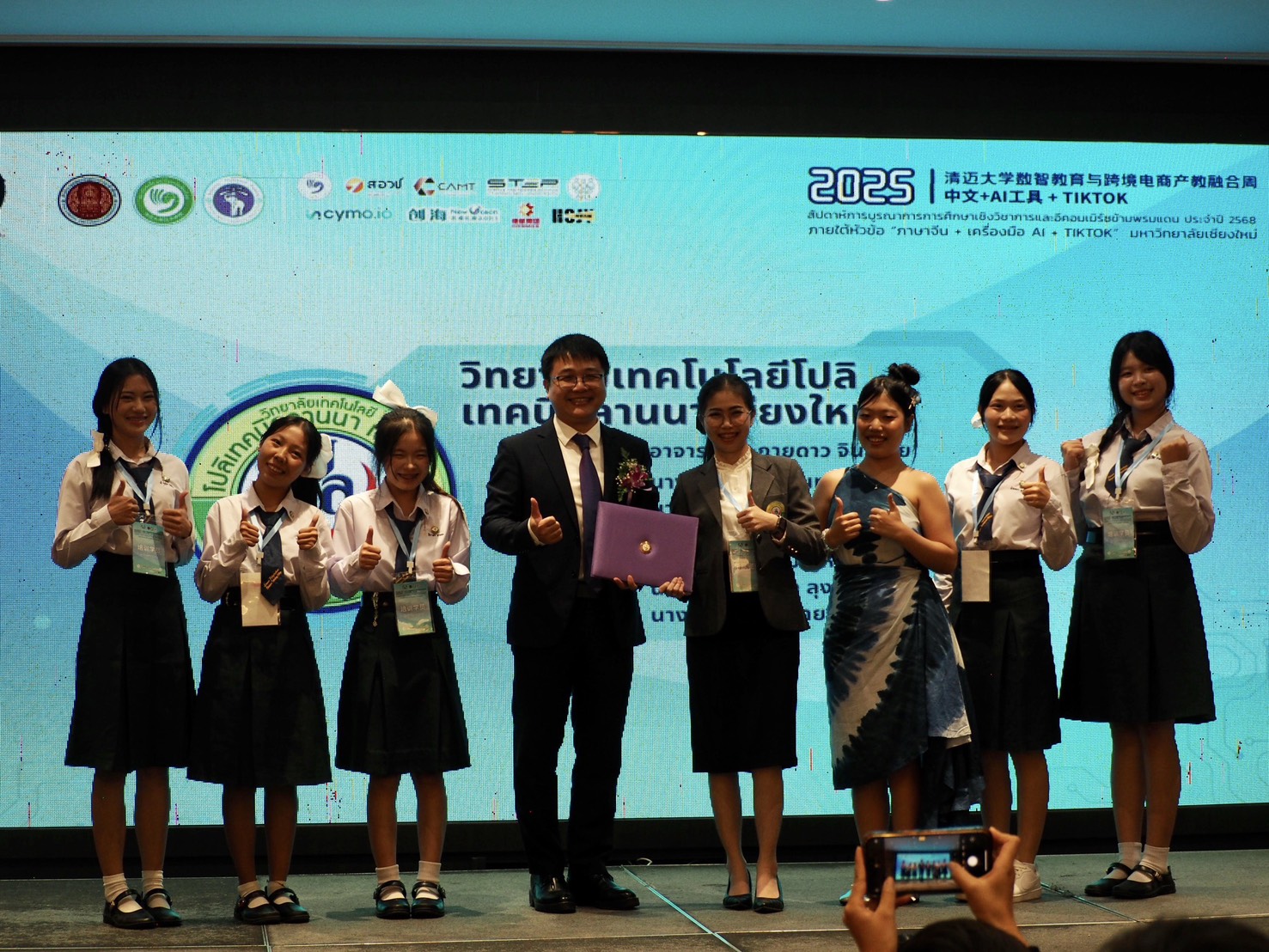 Ms. Lian Chen ผู้อำนวยการฝ่ายจีน สถาบันขงจื่อ มหาวิทยาลัยเชียงใหม่ กล่าวว่า ตลอดหลายวันที่ผ่านมา โครงการนี้ได้เปิดโอกาสให้นักเรียนและนักศึกษาได้ลงมือปฏิบัติจริง พัฒนาจาก “ภาษา” สู่ “ทักษะ” และจาก “ห้องเรียน” สู่ “ตลาด” โดยการใช้ภาษาจีนในการสื่อสาร ใช้เครื่องมือ AI สร้างสรรค์เนื้อหา และใช้ TikTok ถ่ายทอดผลิตภัณฑ์ไทยสู่ผู้ชมในวงกว้าง ซึ่งสะท้อนถึงการเรียนรู้ที่นำไปใช้ได้จริง และการต่อยอดพันธกิจของสถาบันขงจื่อฯ ในการส่งเสริมความร่วมมือด้านการศึกษาและการพัฒนาอย่างเป็นรูปธรรม