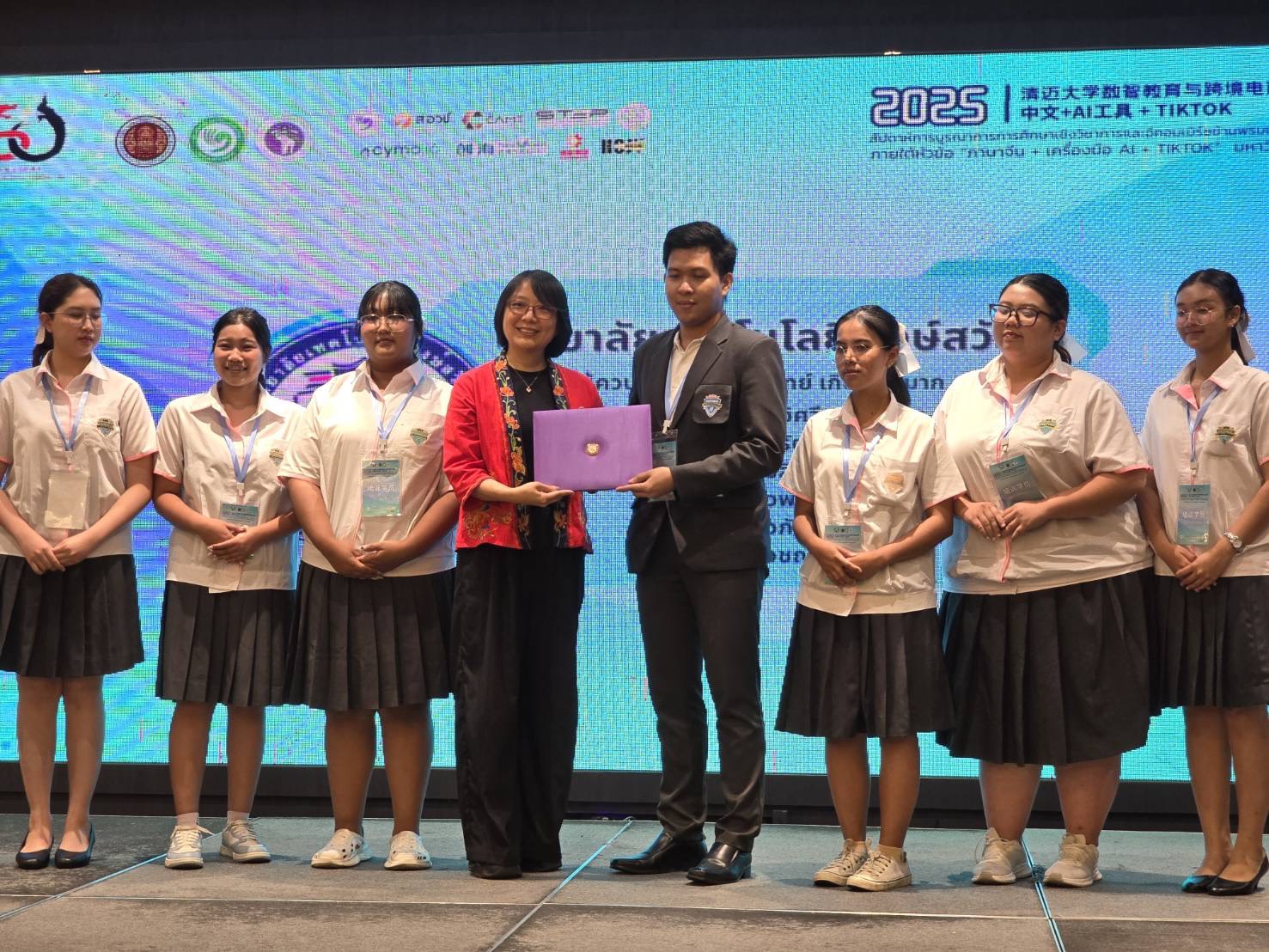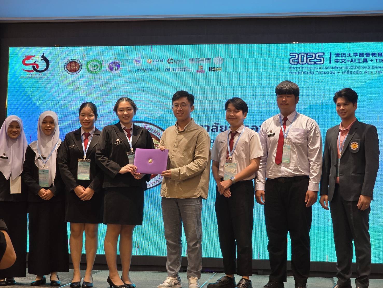 ทั้งนี้ การอบรมครั้งนี้ได้คัดเลือกผู้เข้าร่วมจำนวน 48 คน จาก 8 สถานศึกษาอาชีวะทั่วประเทศ ครอบคลุม 4 ภูมิภาค เพื่อเปิดโอกาสให้เยาวชนได้นำความรู้ด้าน ภาษาจีน เทคโนโลยี AI และการตลาดดิจิทัล มาประยุกต์ใช้ในการพัฒนาผลิตภัณฑ์ท้องถิ่นสู่ตลาดสากล ผู้เข้าร่วมและครูที่ปรึกษาทุกท่านได้รับ เกียรติบัตรรับรองจากคณะกรรมการจัดงาน และมีการมอบรางวัล 2 ประเภท ได้แก่ รางวัลชนะเลิศ 1 รางวัล มูลค่า 14,000 บาท รางวัลชมเชย 7 ทีม ทีมละ 7,000 บาทโดยทีม ที่ชนะเลิศ ได้แก่ วิทยาลัยเทคโนโลยีโปลิเทคนิคลานนา เชียงใหม่ นับเป็นอีกหนึ่งก้าวสำคัญของความร่วมมือทางการศึกษาอาชีวะไทย–จีนอย่างแท้จริง