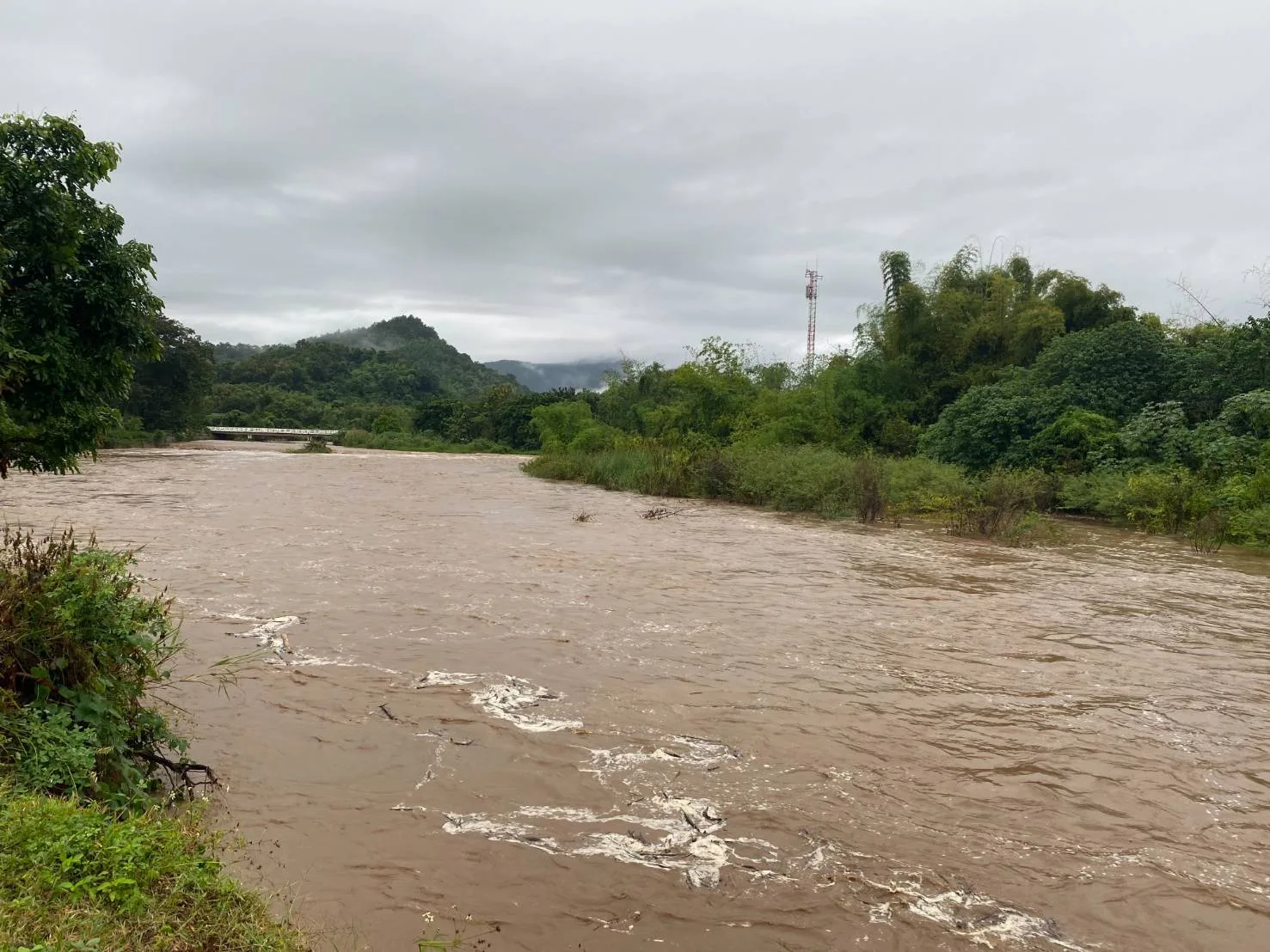 ลงพื้นที่ตรวจสอบลำน้ำแม่วาง บ้านทุ่งปี๊ หมู่ที่ 5 ตำบลทุ่งปี้ พบว่า ระดับน้ำมีแนวโน้มลดลง อย่างต่อเนื่อง แต่ยังอยู่ในระดับที่ต้องเฝ้าระวัง