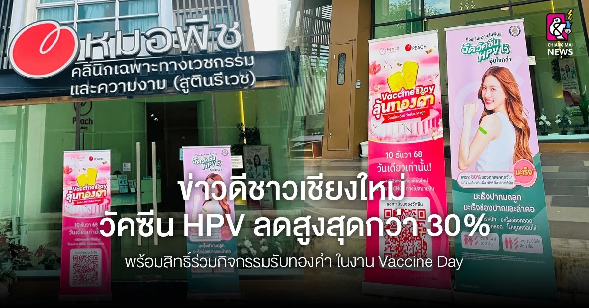 คลินิกหมอพีชจับมือแอป Talk to PEACH จัดงาน “Vaccine Day” เพิ่มโอกาสให้คนเชียงใหม่เข้าถึงวัคซีน HPV ด้วยราคาพิเศษ พร้อมกิจกรรมลุ้นทองคำ