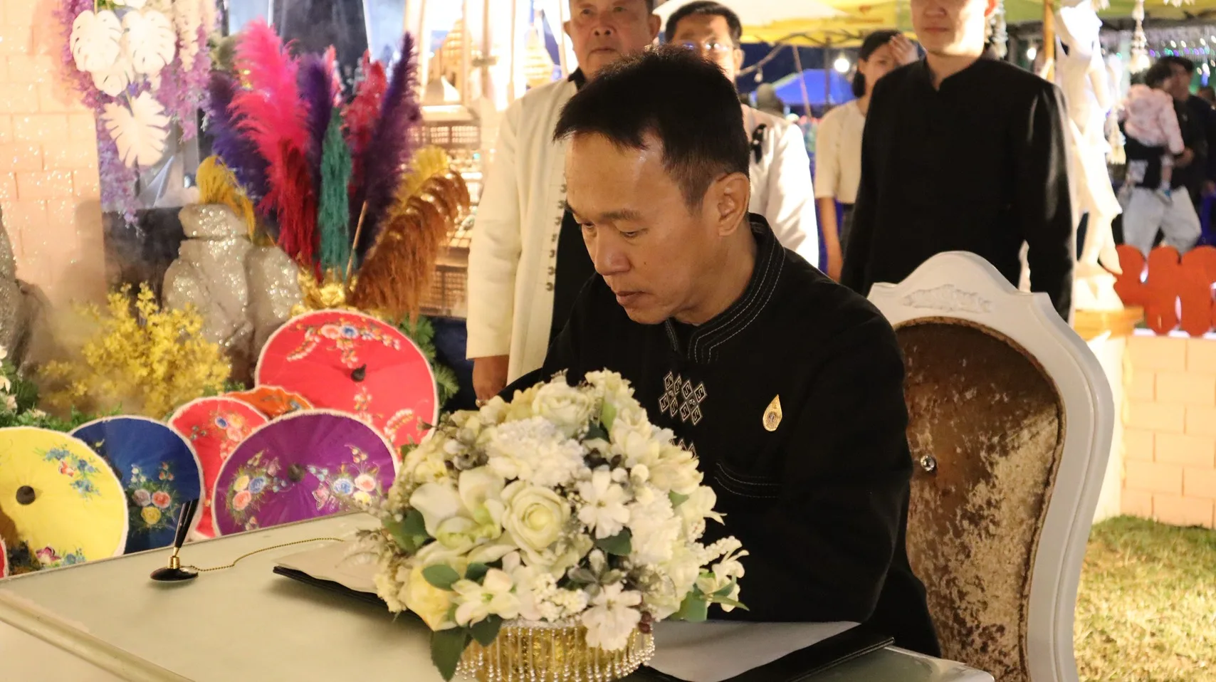 โดยมี นายศิวะ ธมิกานนท์ รองผู้ว่าราชการจังหวัดเชียงใหม่ เป็นประธาน นายสมศักดิ์ อรุณโสตถิกุล ปลัดอำเภอหัวหน้ากลุ่มงานบริหารงานปกครอง รักษาราชการแทน นายอำเภอสันกำแพง หัวหน้าส่วนราชการทุกหน่วยงานจำนวนมาก นายชาครีย์ ขัติรัตน์ นายกเทศมนตรีตำบลสันกำแพง ประธาน ชมรมท้องถิ่น นำ อปท.ส่วนท้องถิ่นทั้ง 10 ตำบล คณะผู้บริหาร เจ้าหน้าที่เทศบาลตำบลสันกำแพง โดยมี นายเกรียงศักดิ์ โพธิ ประธานชมรม กำนัน ผู้ใหญ่บ้าน นำ กำนัน ผู้ใหญ่บ้าน ทั้ง 10 ตำบล 100 หมู่บ้านร่วมพิธีเปิดอย่างพร้อมเพรียง นอกจากนี้โดยทางเทศบาลตำบลสันกำแพง ได้รับรางวัลชนะเลิศอันดับ 1 การประกวดซุ้มร้านค้าท้องถิ่นทั้ง 10 ตำบล