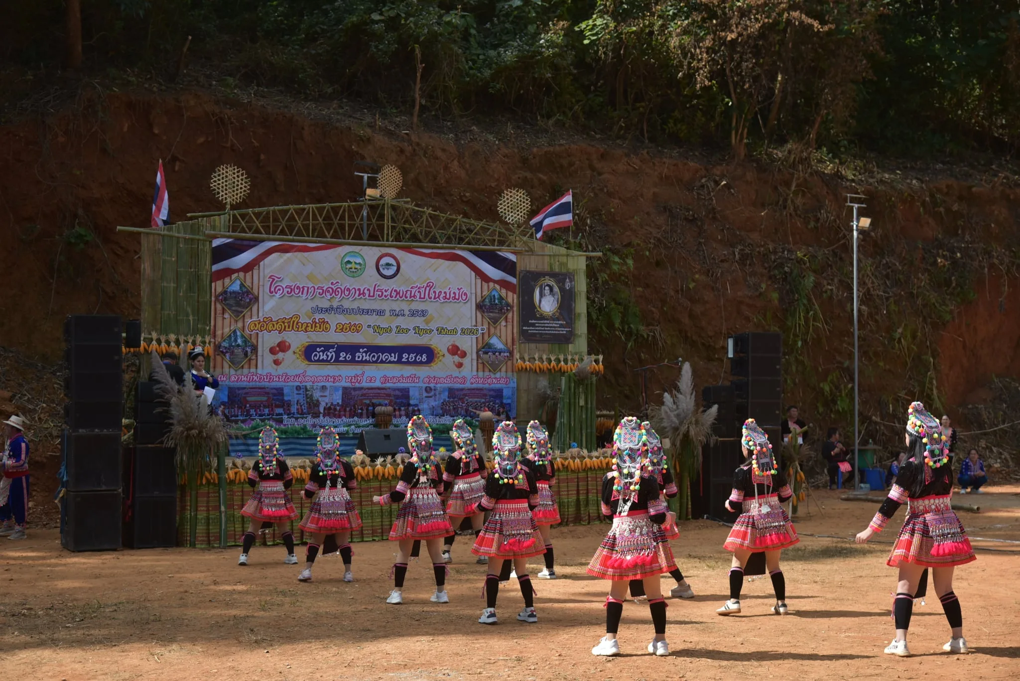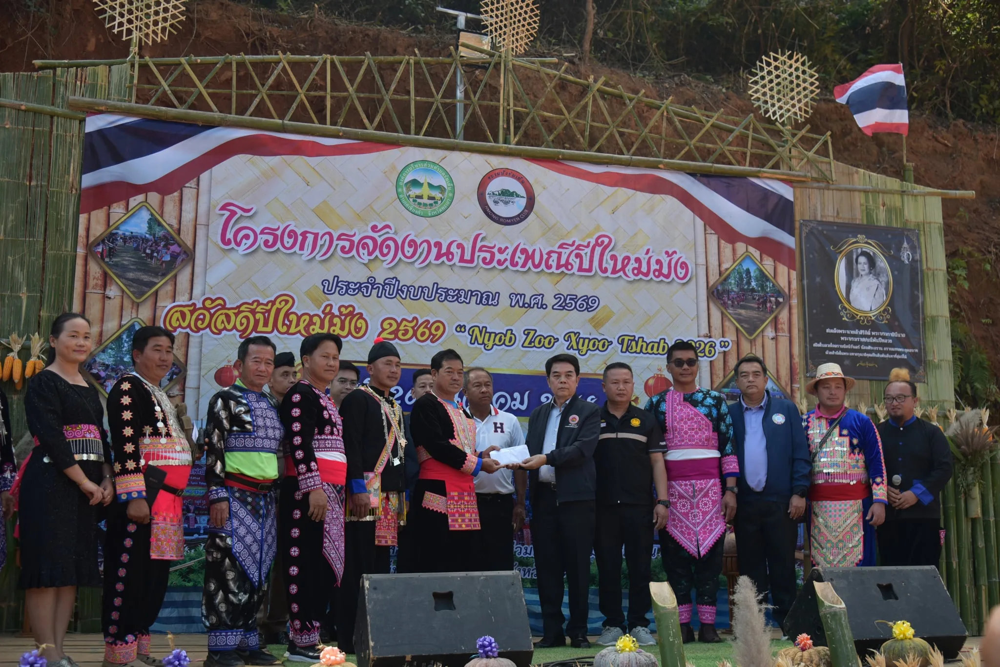 วันที่ 26 ธ.ค.68 ผู้สื่อข่าวรายงานว่า ภายในลานกีฬาบ้านห้วยเดื่อดอยนาง ม.22 ต.ร่มเย็น อ.เชียงคำ จ.พะเยา ได้มีการจัดงานประเพณีปีใหม่ม้งประจำปี 68 ซึ่งทาง อบต.ร่มเย็นจับมือกับชมรมม้ง ต.ร่มเย็นในการจัดงานนี้ขึ้นมา ด้วยพื้นที่ ต.ร่มเย็นส่วนหนึ่งจะมีพี่น้องชาติพันธุ์ม้งอาศัยอยู่เป็นจำนวนมาก และในช่วงนี้ใกล้จะสิ้นปีประเพณีปีใหม่ม้งจึงกลับมาจัดแบบยิ่งใหญ่ภายใน ต.ร่มเย็นอีกครั้ง โดยทาง ส.อ.สมจิตร ฟูธรรม ส.อบจ.อ.เชียงคำ เขต 1 จ.พะเยา ได้เดินทางมาเป็นประธานในการเปิดงานครั้งนี้ด้วย
