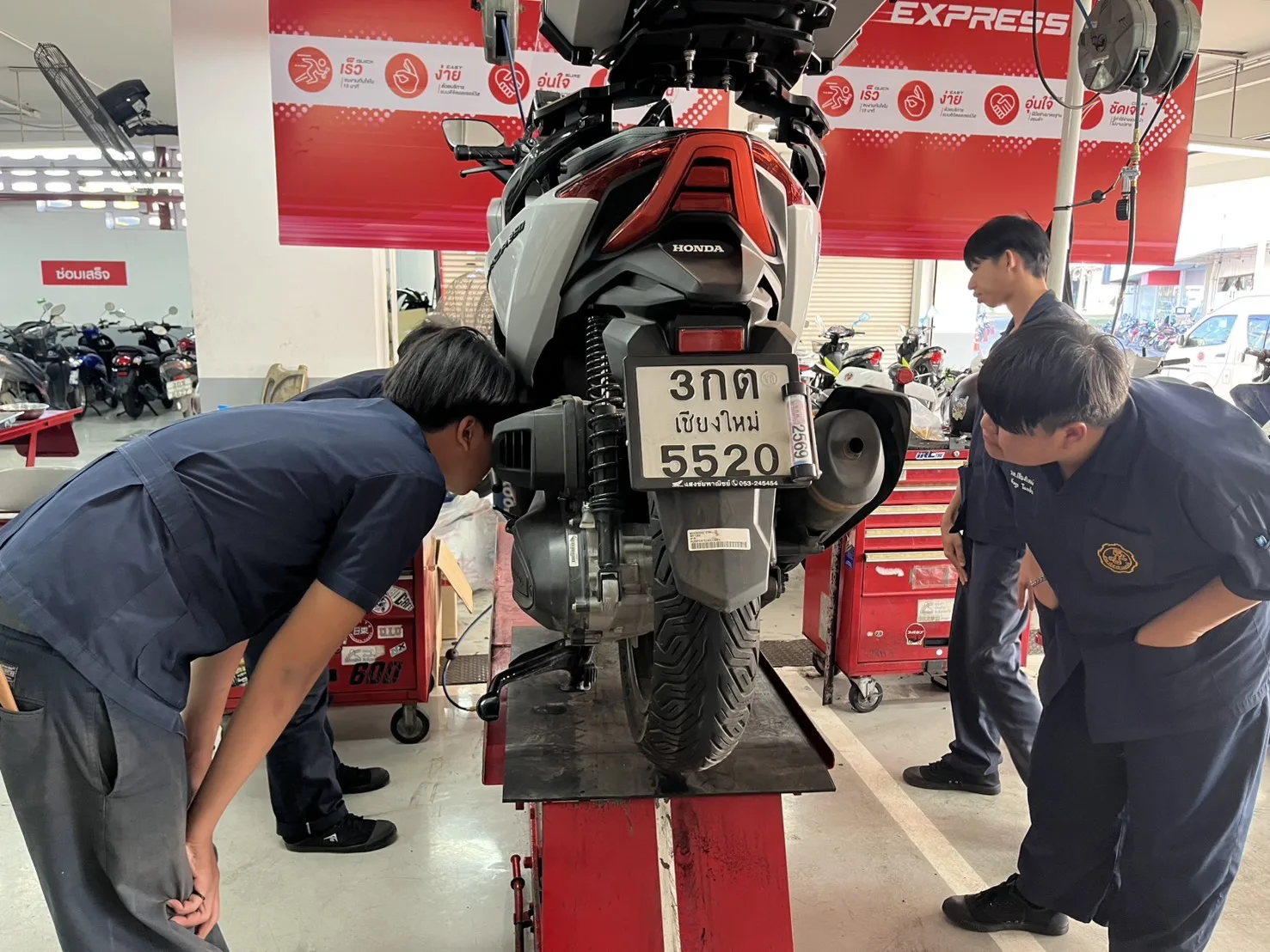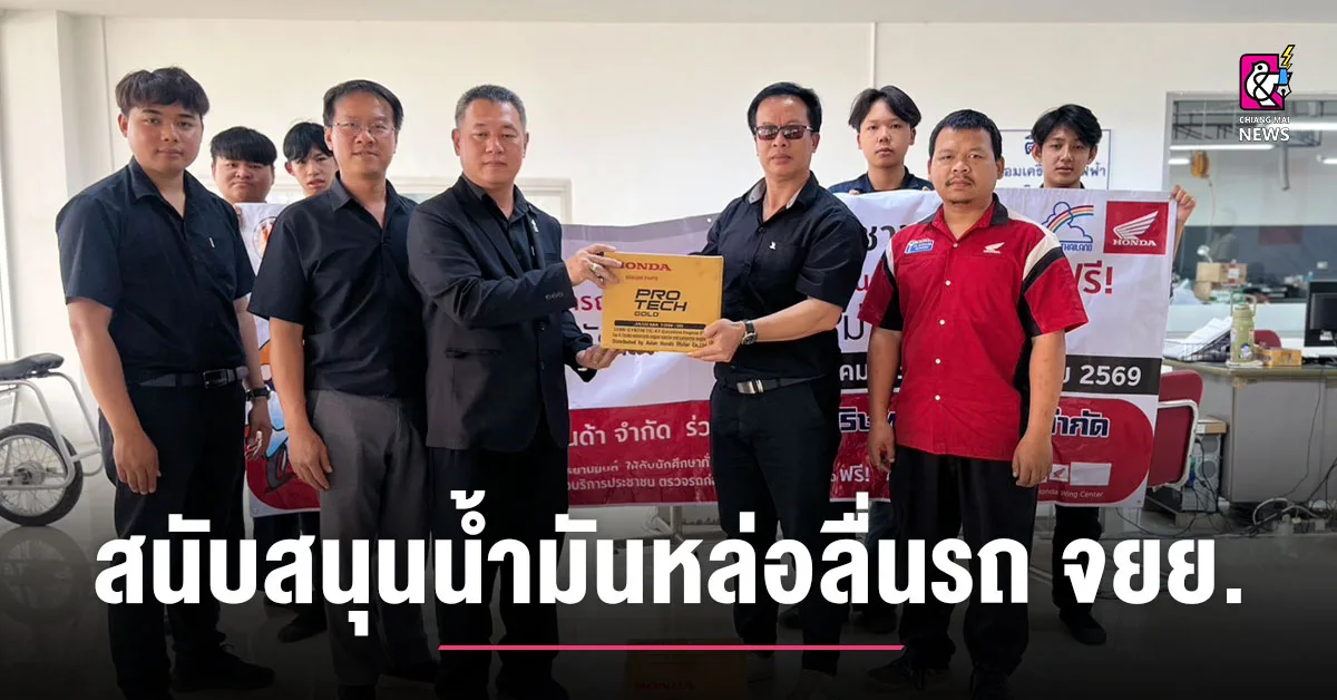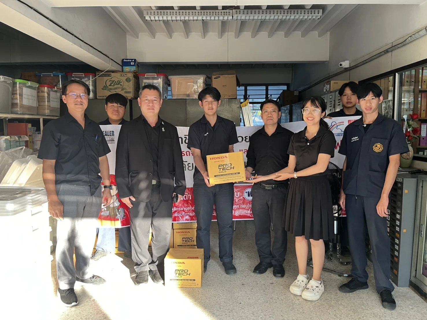 วันอังคาร ที่ 23 ธันวาคม 2568 ดร.วัชรพงศ์ ฝั้นติ๊บ ผู้อำนวยการวิทยาลัยเทคนิคเชียงใหม่ ปฏิบัติหน้าที่ผู้อำนวยการสำนักงานอาชีวศึกษาจังหวัดเชียงใหม่ และรักษาการในตำแหน่งที่ปรึกษาด้านนโยบายและแผน สำนักงานคณะกรรมการการอาชีวศึกษา มอบหมายให้ นายสุจินต์ วังใหม่ รองผู้อำนวยการฝ่ายพัฒนากิจการนักเรียน นักศึกษา พร้อมด้วย นายสิราม ถามดี หัวหน้างานโครงการพิเศษและบริการชุม และคณะครูแผนกวิชาช่างยนต์ เข้ารับการสนับสนุน น้ำมันหล่อลื่นรถจักรยานยนต์ชนิดเกียร์ธรรมดา จำนวน 2 ลัง จากบริษัทนิยมพานิช จำกัด จังหวัดเชียงใหม่ เพื่อนำไปใช้สนับสนุนการดำเนินการโครงการอาชีวะอาสา ช่วยประชาชน “บริการตรวจเช็กรถจักรยานยนต์ และเปลี่ยนถ่ายน้ำมันหล่อลื่น ตามโครงการ 7 วันอันตรายปีใหม่ 2569 ระหว่างวันที่ 30 ธันวาคม 2568 ถึงวันที่ 5 มกราคม 2568 ณ กองพลทหารราบที่ 7 จังหวัดเชียงใหม่