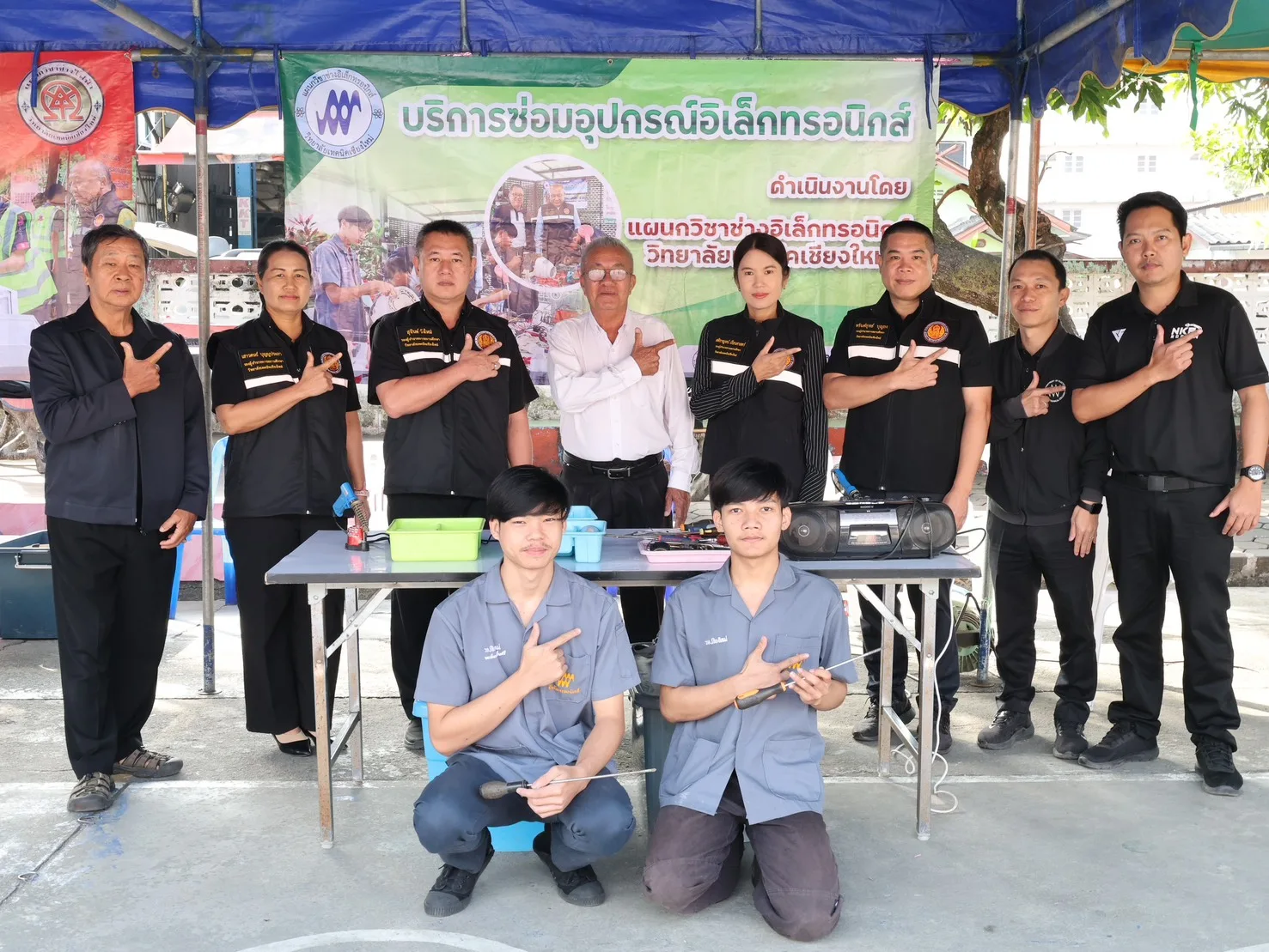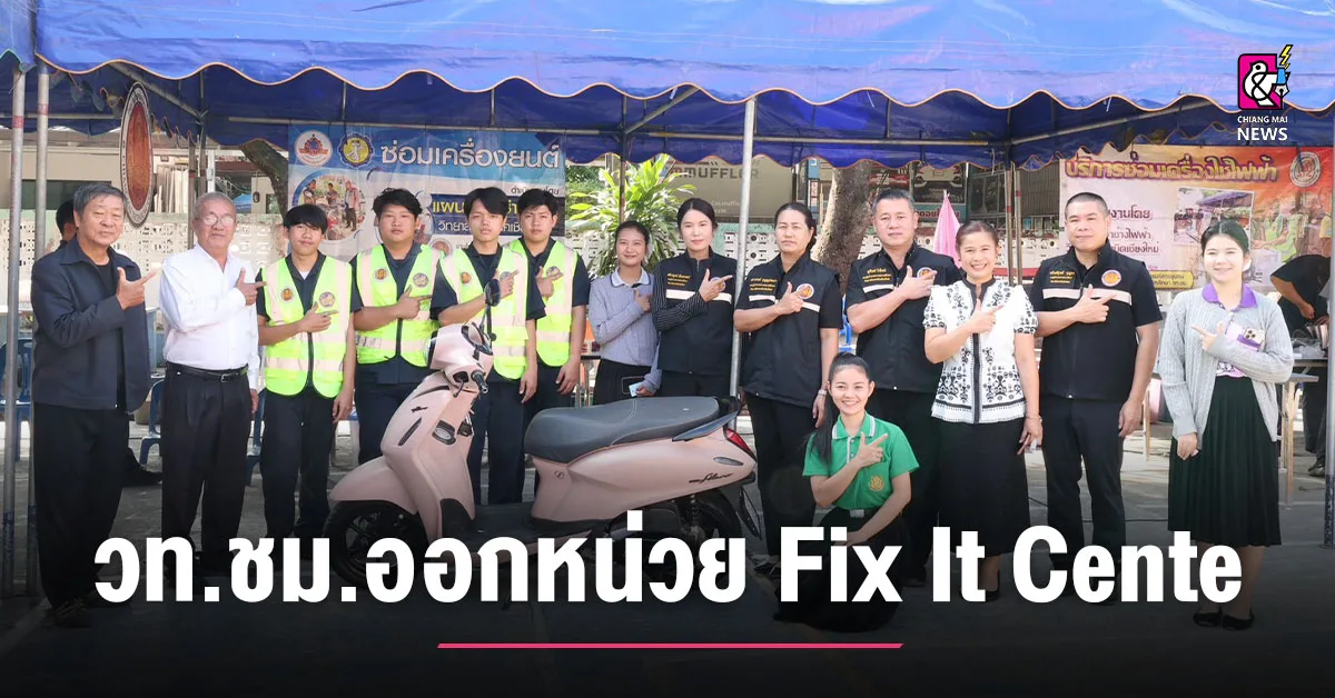 วันอังคารที่ 23 ธันวาคม พ.ศ. 2568 ดร.วัชรพงศ์ ฝั้นติ๊บ ผู้อำนวยการวิทยาลัยเทคนิคเชียงใหม่ ปฏิบัติหน้าที่ผู้อำนวยการสำนักงานอาชีวศึกษาจังหวัดเชียงใหม่ และรักษาการในตำแหน่งที่ปรึกษาด้านนโยบายและแผน สำนักงานคณะกรรมการการอาชีวศึกษา ได้มอบหมายให้ นายสุจินต์ วังใหม่ รองผู้อำนวยการฝ่ายพัฒนากิจการนักเรียน นักศึกษา พร้อมด้วย นายสิราม ถามดี หัวหน้างานโครงการพิเศษและบริการชุมชน คณะครู และนักเรียน นักศึกษา จากแผนกวิชาช่างยนต์ แผนกวิชาช่างไฟฟ้า และแผนกวิชาอิเล็กทรอนิกส์ ออกให้บริการประชาชนภายใต้โครงการ Fix It Center