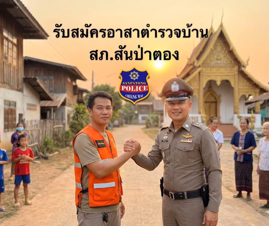 สถานีตำรวจภูธรสันป่าตอง จ.เชียงใหม่ ขอประชาสัมพันธ์โครงการ อาสาสมัครตำรวจบ้าน เพื่อเปิดโอกาสให้ข้าราชการตำรวจที่เกษียณอายุราชการ ได้ร่วมเป็นพลังสำคัญในการดูแลความสงบเรียบร้อยและช่วยเหลือประชาชนในชุมชน