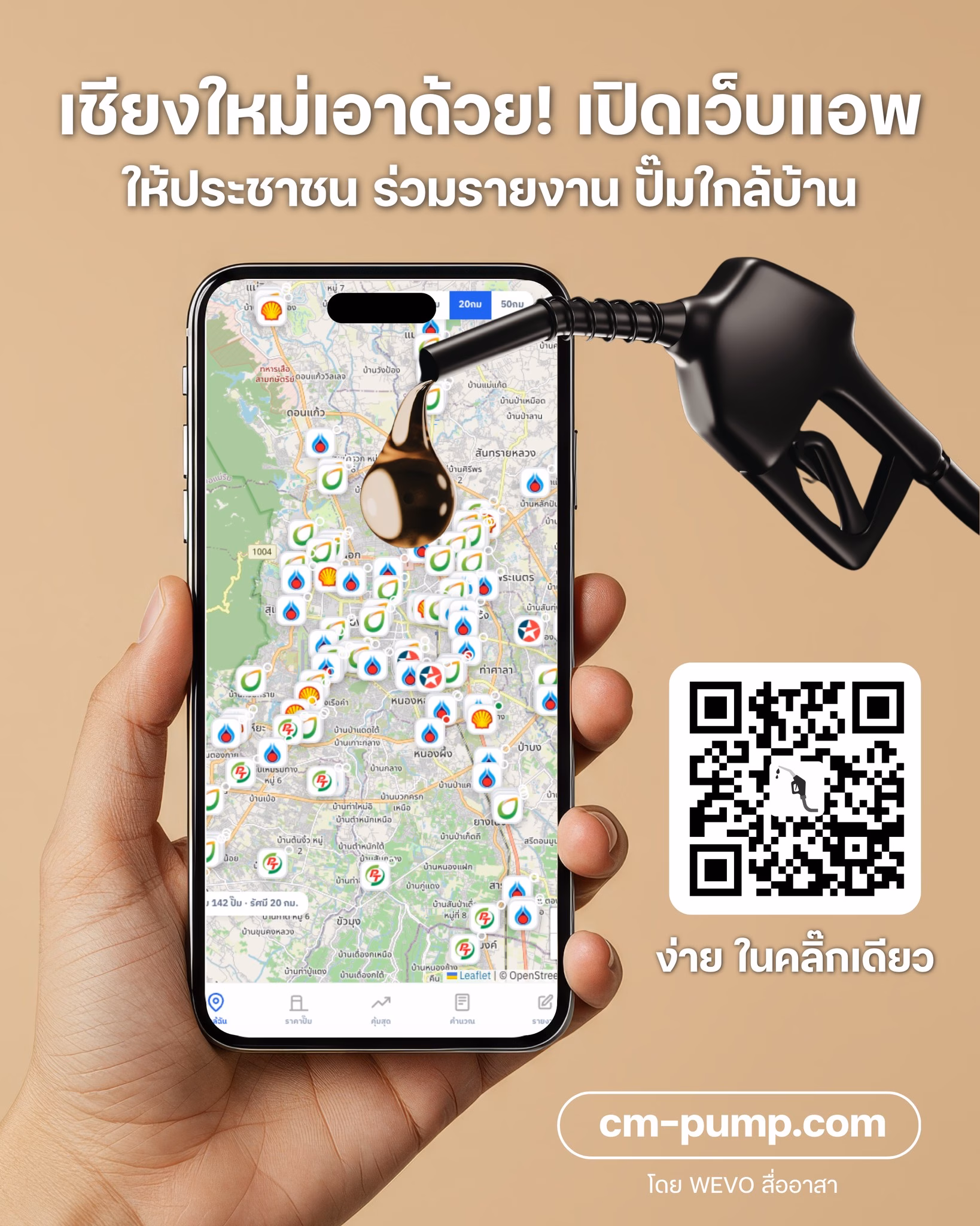 สื่ออาสาเชียงใหม่ เปิดตัวเว็บแอปฯ “CM-PUMP” ดึงพลังโซเชียล “รายงานสถานะน้ำมัน จากปั๊มใกล้บ้าน” แก้ปัญหาขับรถวนหา