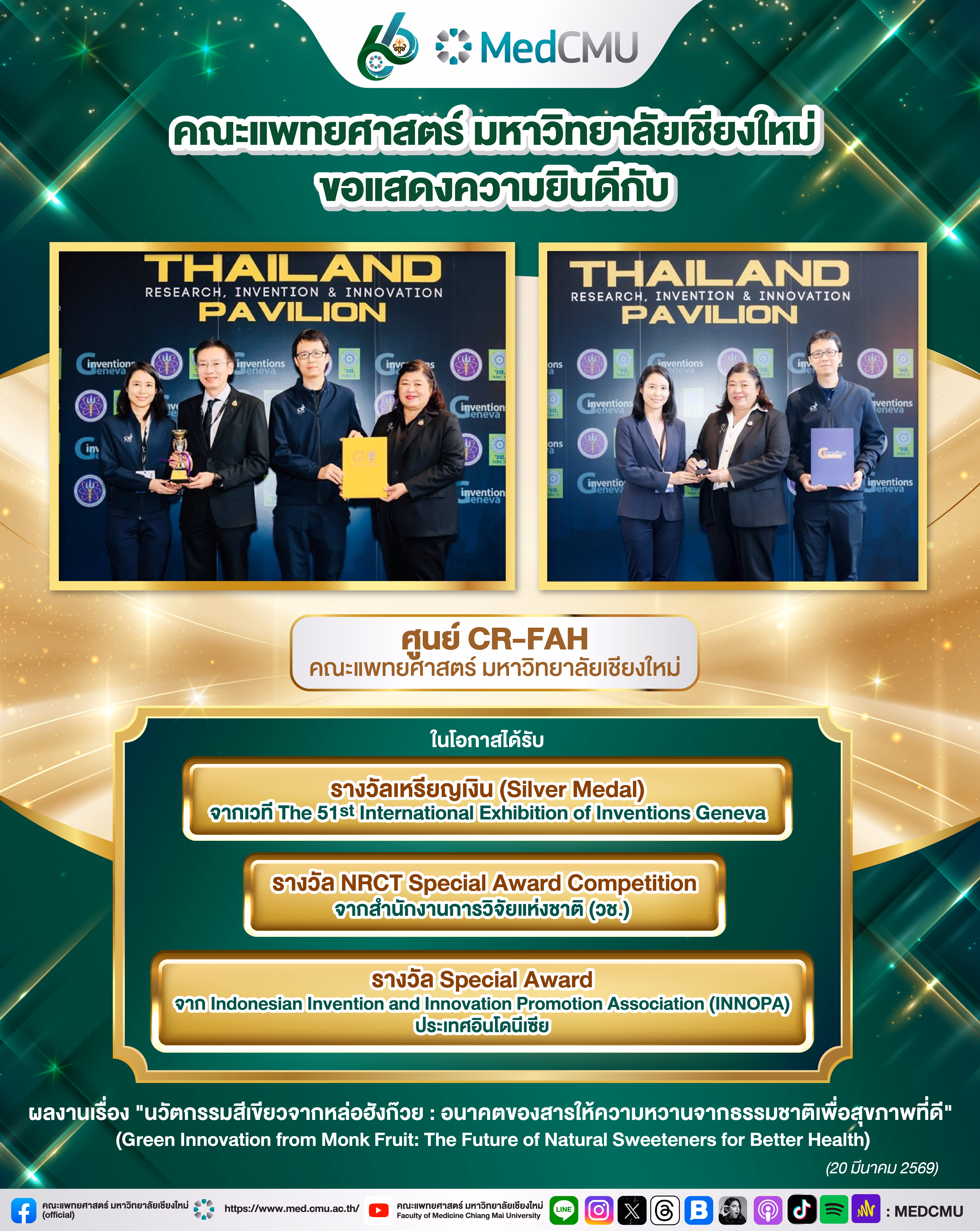 คณะแพทยศาสตร์ มหาวิทยาลัยเชียงใหม่ ขอแสดงความยินดีกับ
