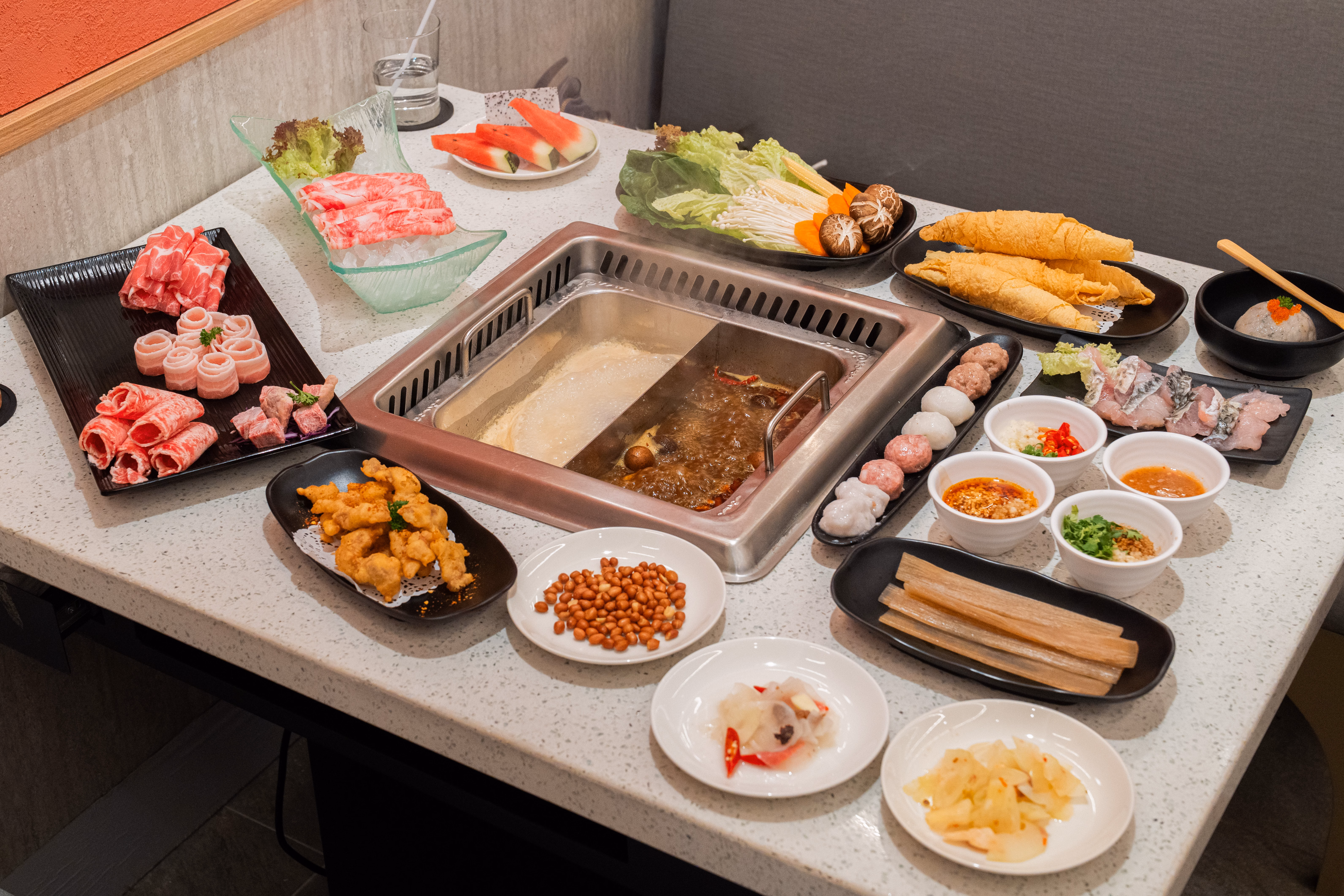 น้ำซุปอื่นๆ ให้เลือกตามชอบ ซุปมะเขือเทศ ซุปเห็ดรวม ซุปพริกไทยผักกาดดอง ซุปไก่แช่เหล้า และซุปน้ำมะพร้าว ซึ่งแต่ละน้ำซุปอุดมไปด้วยสารอาหารที่มีประโยชน์ต่อสุขภาพ พร้อมวัตถุดิบคุณภาพพรีเมี่ยมกว่า 100 รายการ ทั้ง เนื้อวากิว A4 จากญี่ปุ่น หรือจะเป็นชุดหมูรวม และ ซีฟู้ด ฟองเต้าหู้ทอดที่นี่อร่อยมา น้ำจิ้มมีหลายสูตรตามชอบ ทางร้านมีวิธีแนะนำการปรุงสำหรับแต่ละสูตรให้ด้วย เปิดแล้ววันนี้รอให้ทุกท่านได้มาลองด้วยตนเอง