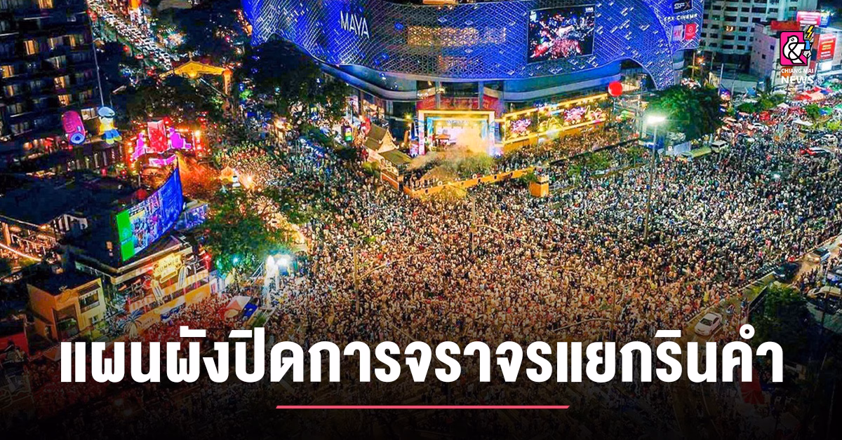 แผนผังการปิดการจราจรที่บริเวณแยกรินคำช่วงวันที่ 11-15 เมษายน 2569 ในการจัดงานสงกรานต์หน้าห้างเมญ่า