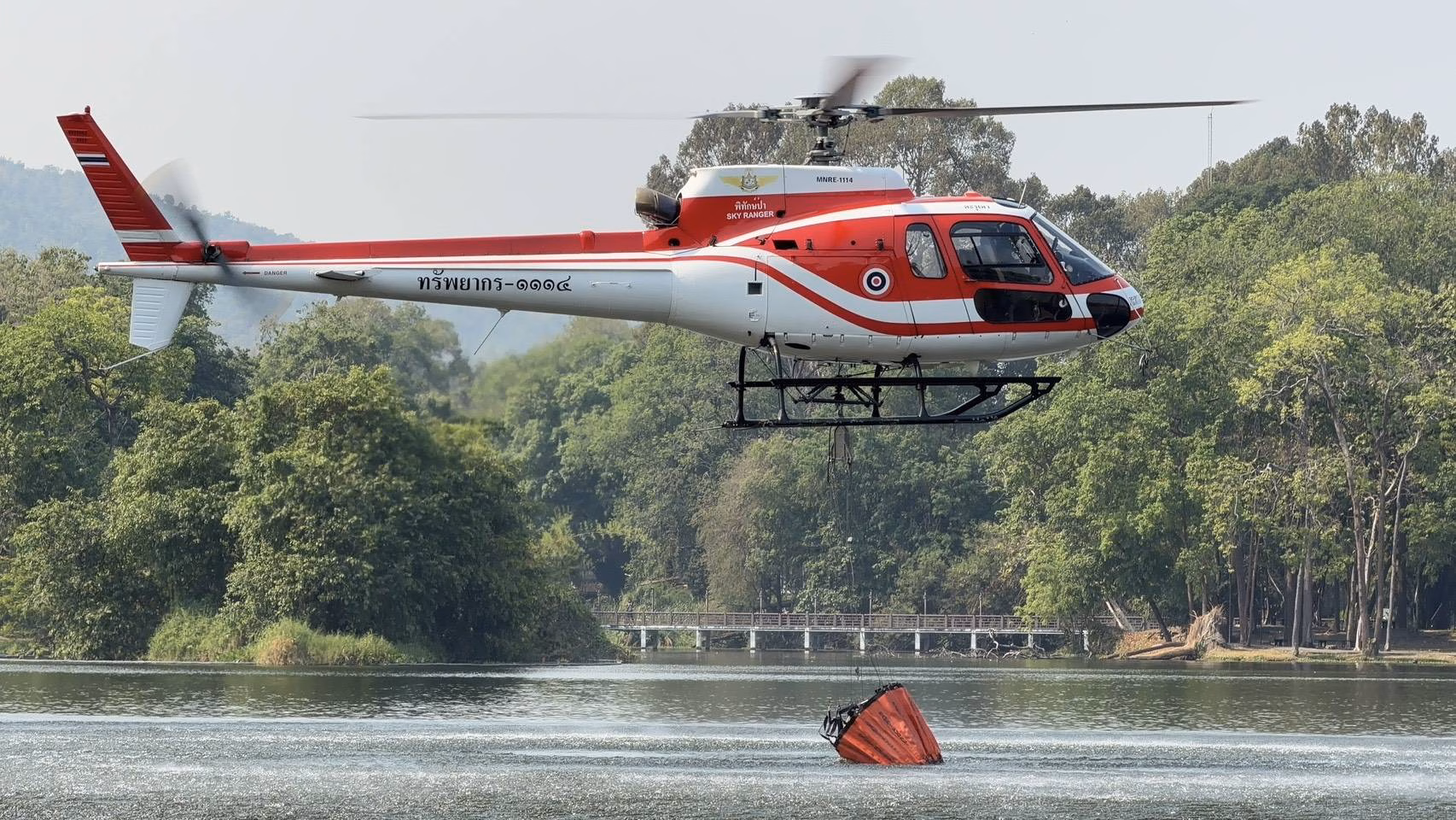 พร้อมกันนี้ ได้สนับสนุนภาคอากาศ โดยส่งเฮลิคอปเตอร์ของกระทรวงทรัพยากรธรรมชาติและสิ่งแวดล้อม บินโปรยน้ำลดความรุนแรงของไฟในพื้นที่สูง เพื่อควบคุมเพลิงให้อยู่ในวงจำกัดในช่วงเช้า ก่อนที่ในช่วงบ่ายจะส่งเฮลิคอปเตอร์รุ่น เคเอ 32 ของกรมป้องกันและบรรเทาสาธารณภัย เข้าร่วมปฏิบัติการโปรยน้ำดับไฟเพิ่มเติม เพื่อเสริมกำลังและป้องกันไม่ให้ไฟป่าลุกลามเข้าสู่พื้นที่สำคัญของจังหวัด