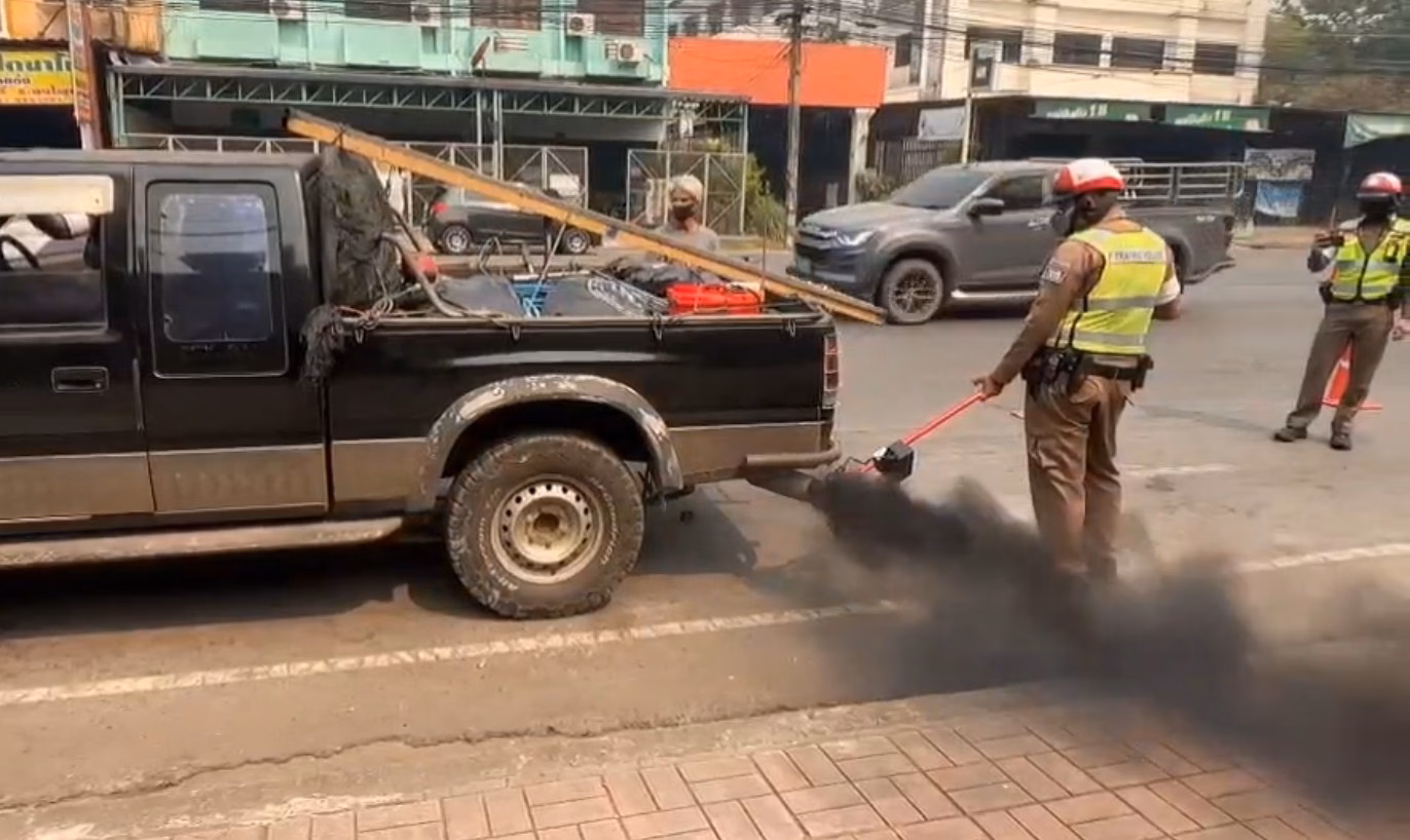 ตำรวจจราจรเชียงใหม่ ตั้งจุดตรวจวัดควันดำรถยนต์และรถจักรยานยนต์ปล่อยควันดำเกินค่ามาตรฐานกำหนด ตามนโยบายลดฝุ่นควัน PM 2.5 ของ ภ.5