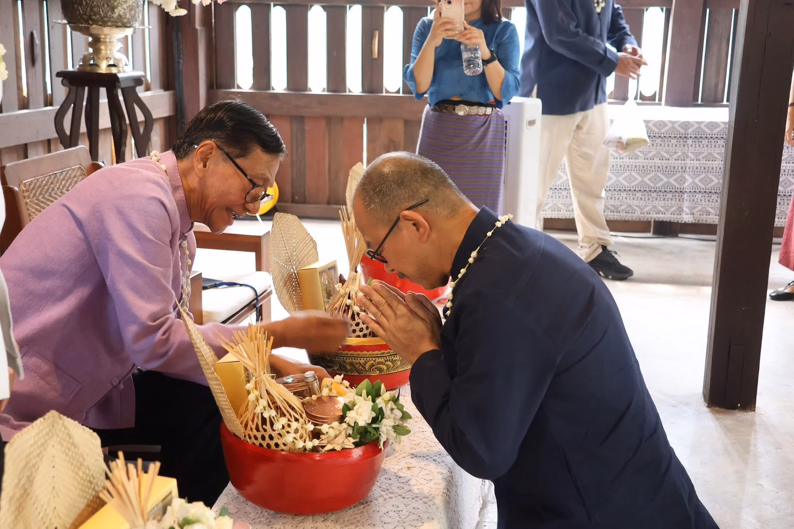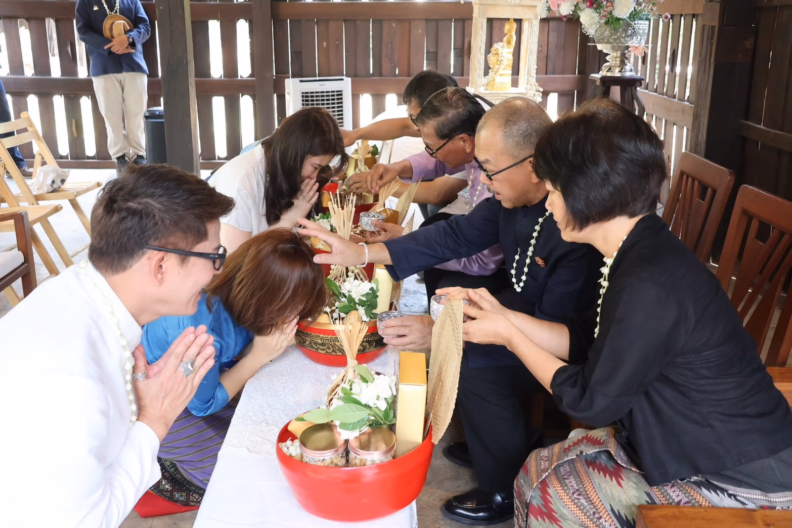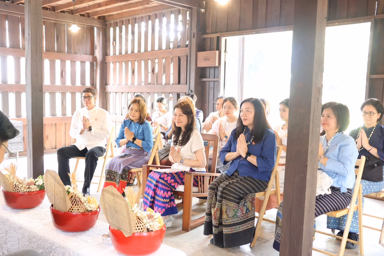 โอกาสนี้ คณะผู้บริหารนำโดย ดร.กรวรรณ สังขกร รักษาการแทนรองผู้อำนวยการและบุคลากรสำนักฯ ได้นำเครื่องสักการะดำหัวตามประเพณีล้านนา ขอขมาและแสดงความเคารพต่อคณะกรรมการอำนวยการผู้ทรงคุณวุฒิประจำสำนักฯและผู้บริหารอาวุโส