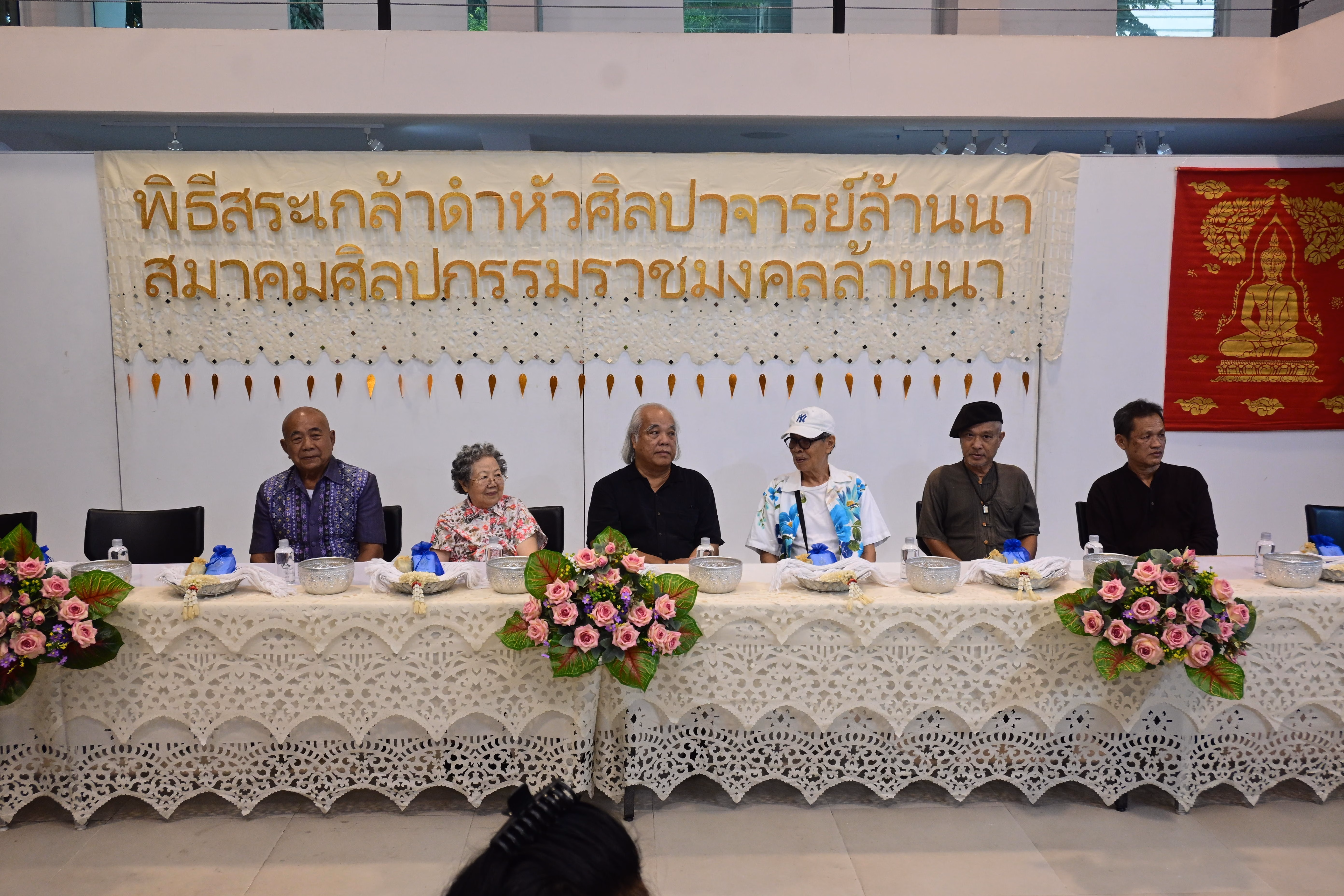 เริ่มพิธีสระเกล้าดำหัว คณะร่วมนำของดำหัว อาหาร หรือ เครื่องดื่มมา “ฮอม” กัน ศิลปาจารย์ โดยมี อาจารย์พีระพงษ์ ดวงแก้ว,อาจารย์ศรีวันนา เสาร์คง(อาจารย์แม่),อาจารย์พงศ์เดช ไชยคุตร, ผู้ช่วยศาสตราจารย์วิชิต ชมทวีวิรุตม์,อาจารย์ประกิตศิลป์ วรมิศร์, อาจารย์ศรีใจ กันทะวัง รับพรจากคณาจารย์ ส่วนทาง ผศ.ดร.สุรสิทธิ์ เสาว์คง ไม่สามารถมาร่วมงานได้แต่ได้ฝากคำอวยพรมา ปิดท้ายด้วย อาจารย์ธงชัย ศรีสุขประเสริฐ นายกสมาคมศิลปกรรมราชมงคลล้านนานา กล่าวไว้ว่า ปีหน้าเราพบกันที่หอศิลป์เทา หอศิลป์ธรรม ร่วมประทานอาหารพบปะพูดคุยกันอย่างอบอุ่น ณ หอศิลปะวัฒนธรรม คณะศิลปกรรมและสถาปัตยกรรมศาสตร์ มหาวิทยาลัยเทคโนโลยีราชมงคลล้านนา (เจ็ดยอด)