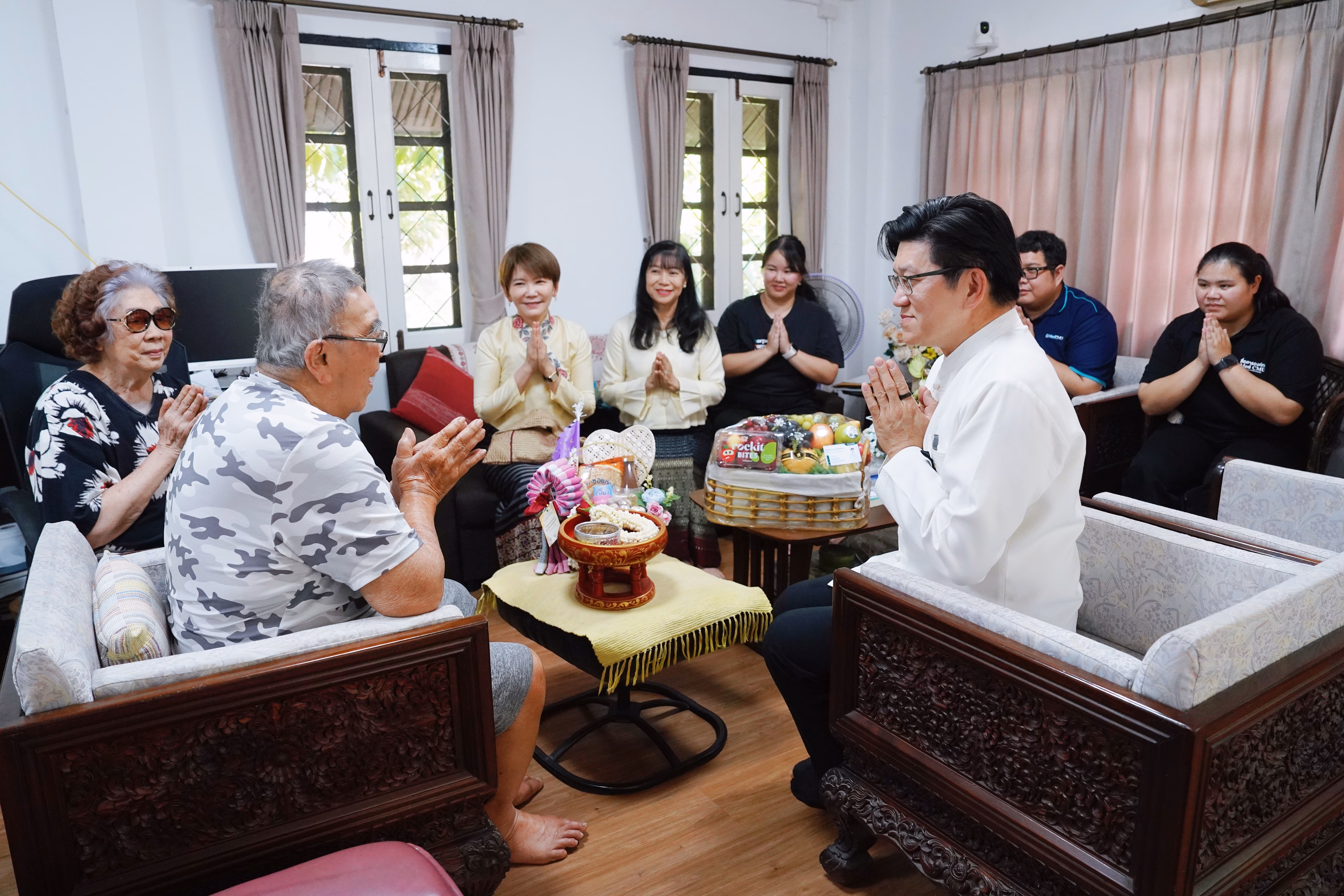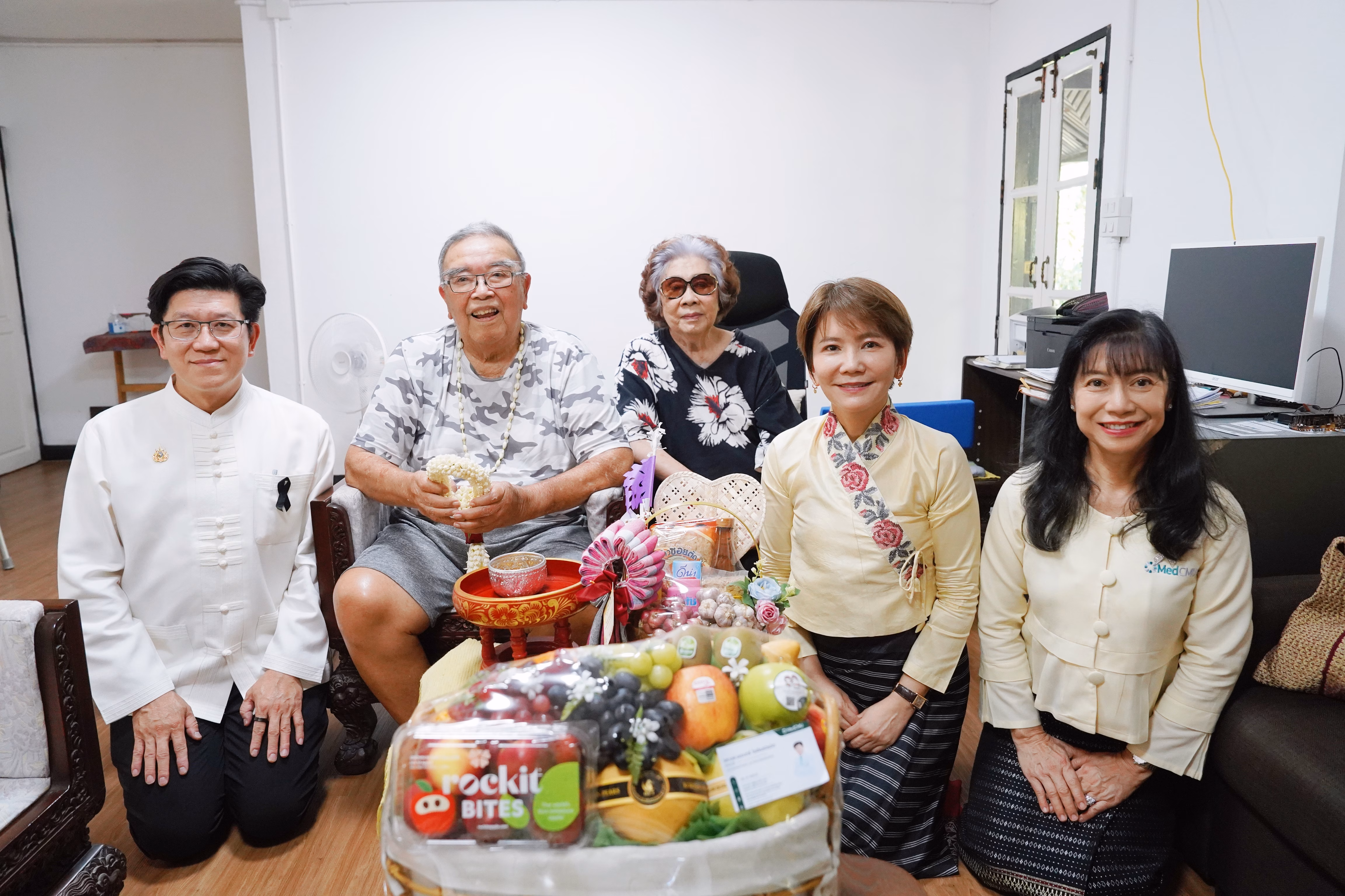 รศ.นพ.นเรนทร์ โชติรสนิรมิต คณบดีคณะแพทยศาสตร์ มช. พร้อมด้วย ผศ.พญ.พุดตาน วงศ์ตรีรัตนชัย รองคณบดีด้านสื่อสารองค์กร และคุณพัชรา อุบลศรี ที่ปรึกษาประธานมูลนิธิโรงพยาบาลสวนดอก คณะแพทยศาสตร์ มช. ร่วมสูมาคารวะ รดน้ำดำหัว และขอพร ศ.เกียรติคุณ นพ.พงษ์ศิริ ปรารถนาดี อดีตนายแพทย์ผู้อำนวยการโรงพยาบาลนครเชียงใหม่ เนื่องในเทศกาลวันสงกรานต์
