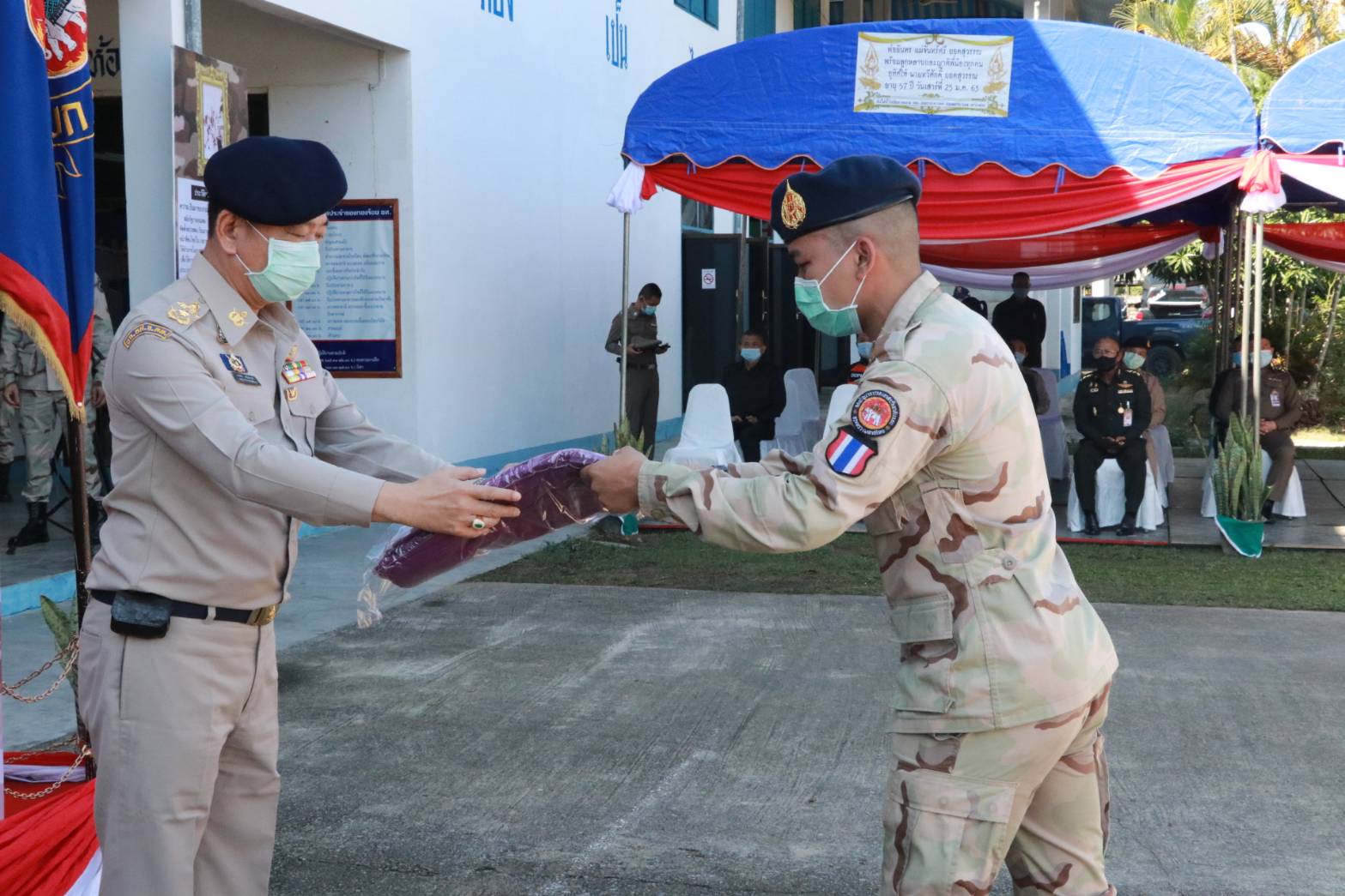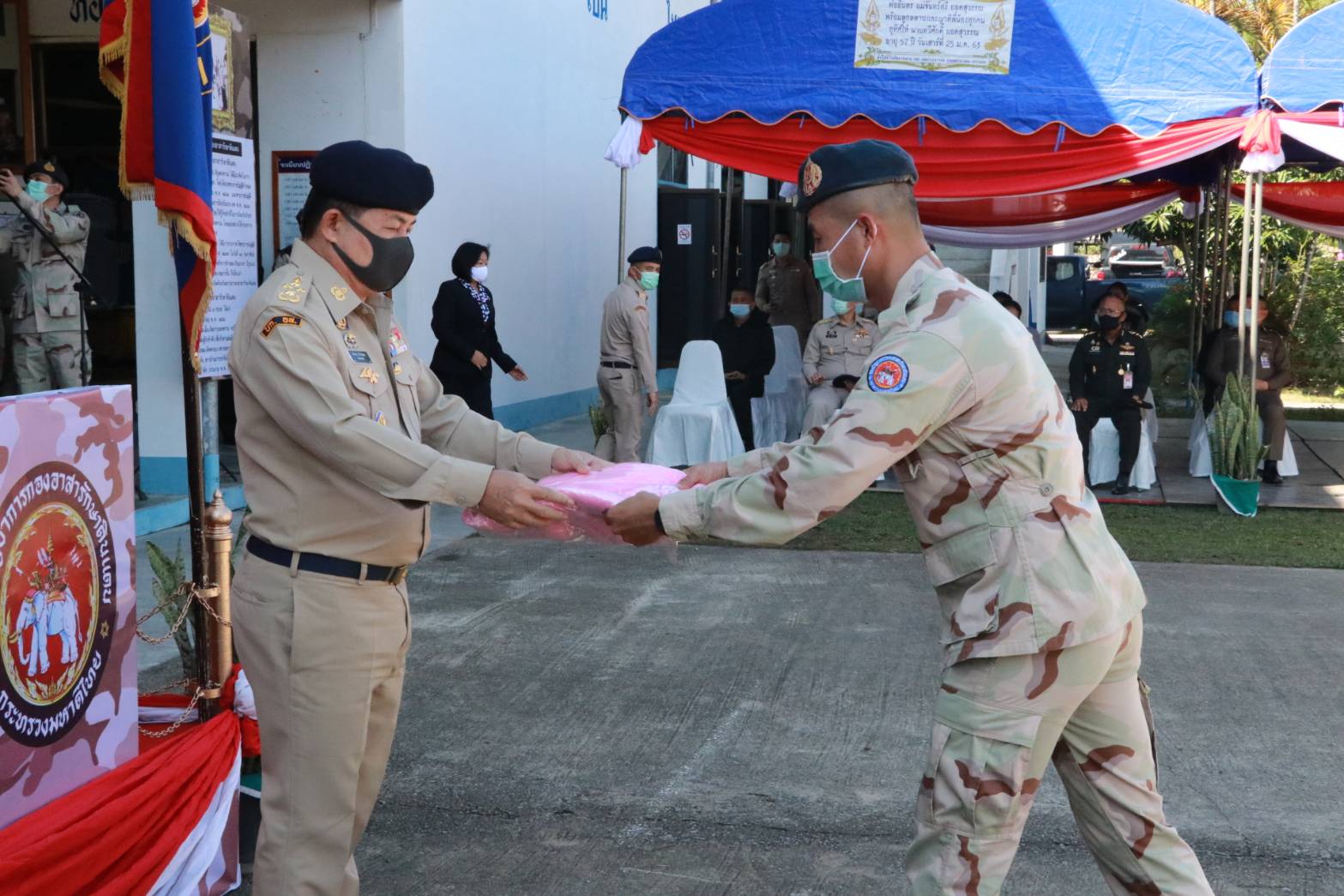 เมื่อวันที่ 10 ก.พ. 64 นายกองเอก ประจญ ปรัชญ์สกุล ผวจ.เชียงราย ในฐานะผู้บังคับการกองอาสารักษาดินแดน จ.เชียงราย เป็นประธานในพิธีบำเพ็ญบุญกุศลทางศาสนา พร้อมกับมอบเข็มอาสารักษาดินแดนสดุดีให้แก่ผู้บังคับบัญชา เจ้าหน้าที่ และสมาชิกกองอาสารักษาดินแดน จังหวัดเชียงราย พร้อมมอบทุนการศึกษา ประจำปี 2564 ให้แก่บุตรสมาชิกกองอาสารักษาดินแดน เนื่องในวันคล้ายวันสถาปนากองอาสารักษาดินแดน ครบรอบ 67 ปี ณ กองร้อยอาสารักษาดินแดนจังหวัดเชียงรายที่ 1 ถ.ศูนย์ราชการฝั่งหมิ่น ต.ริมกก อ.เมืองเชียงราย