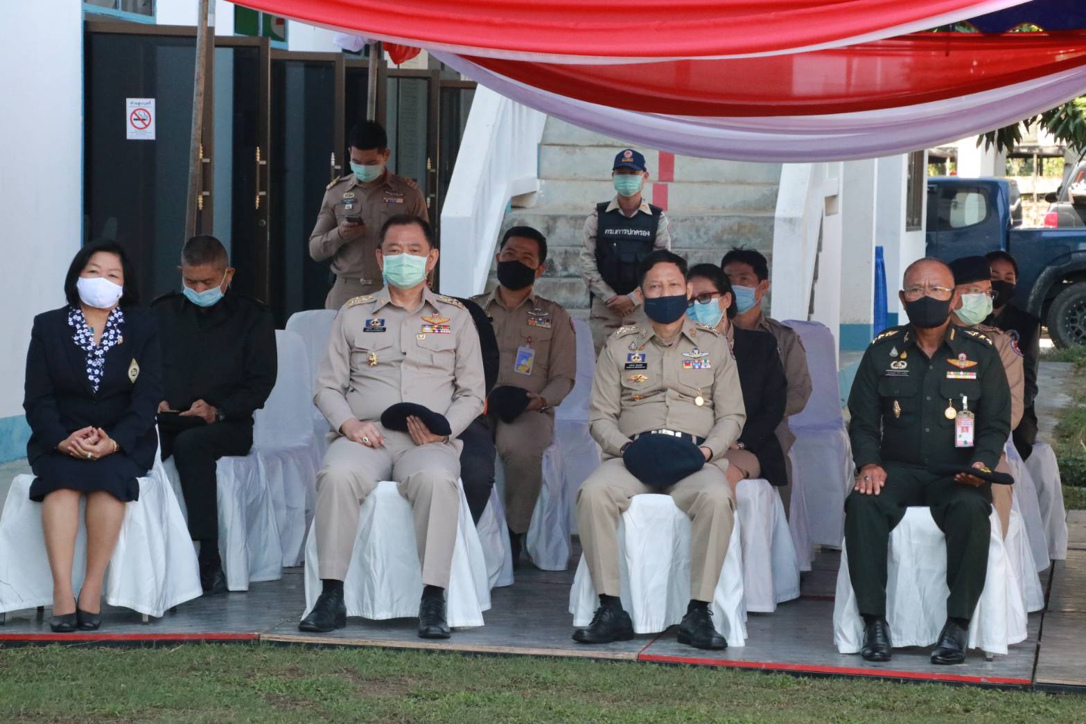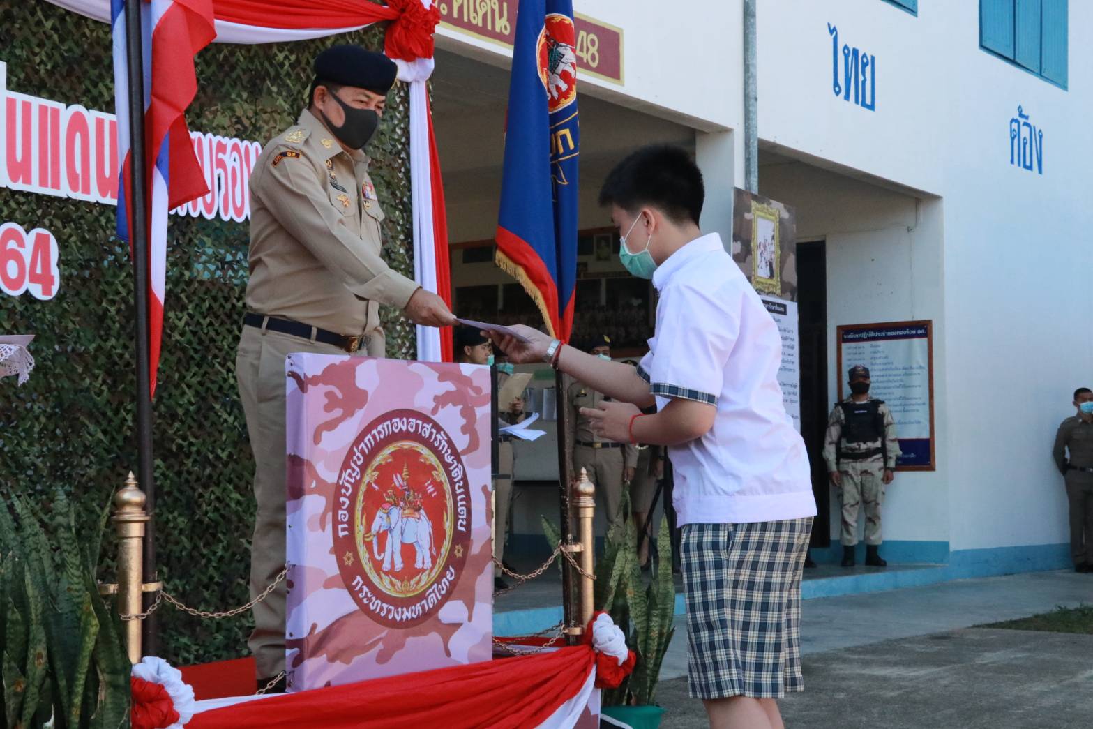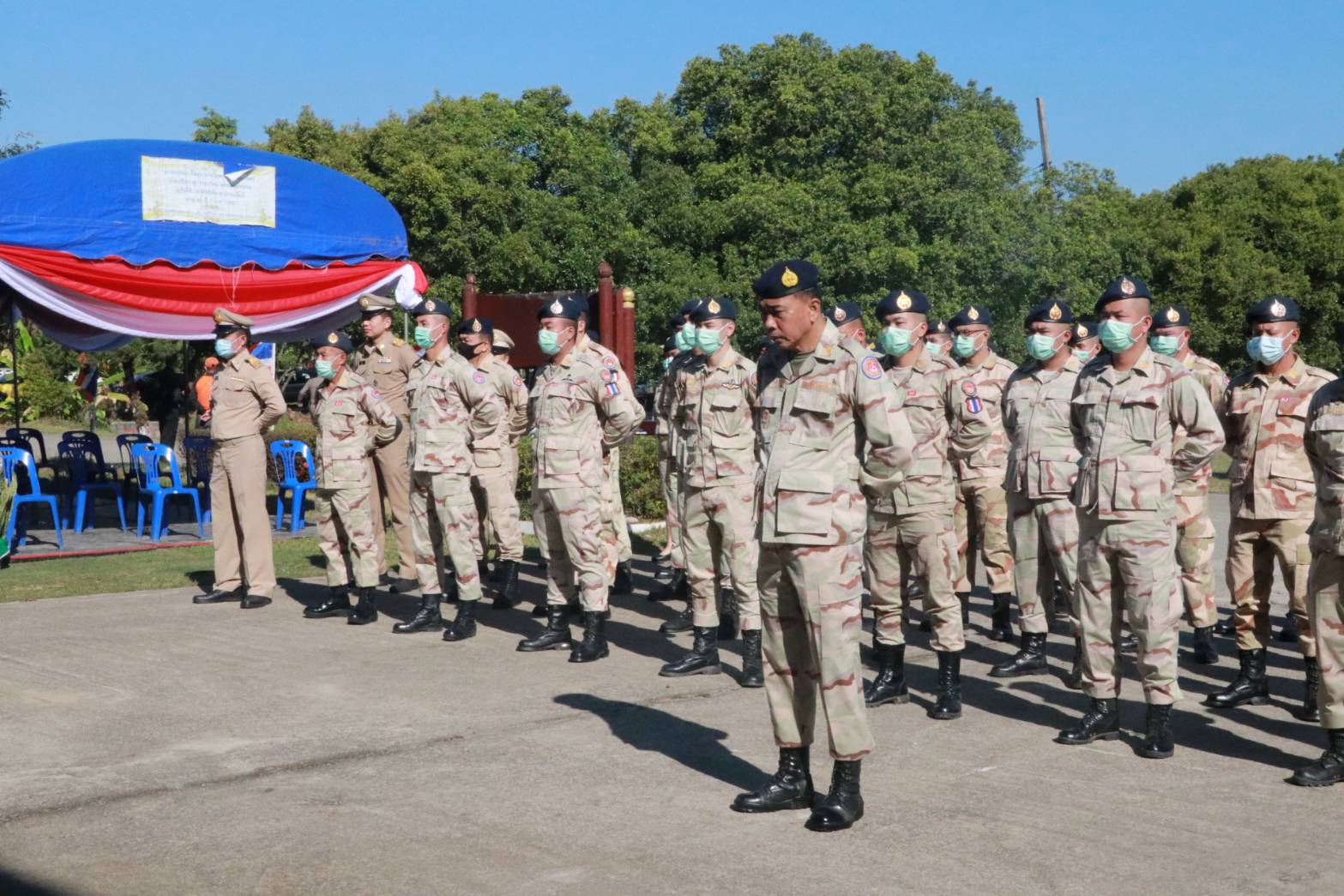 ในการนี้ นายภาษเดช หงส์ลดารมภ์ พร้อมกับนายวรวิทย์ ชัยสวัสดิ์ รอง ผวจ.เชียงราย รวมทั้งนางดวงจิตต์ ปรัญช์สกุล ประธานแม่บ้านมหาดไทย รวมทั้งนายประเสริฐ จิตต์พลีชีพ ปลัดจังหวัดเชียงราย พร้อมด้วย ผู้บังคับบัญชาทั้งฝ่ายทหาร ตำรวจ เจ้าหน้าที่ และ สมาชิกอาสารักษาดินแดน บุตร ธิดา สมาชิกอาสารักษาดินแดน ร่วมในพิธีอย่างพร้อมเพรียง