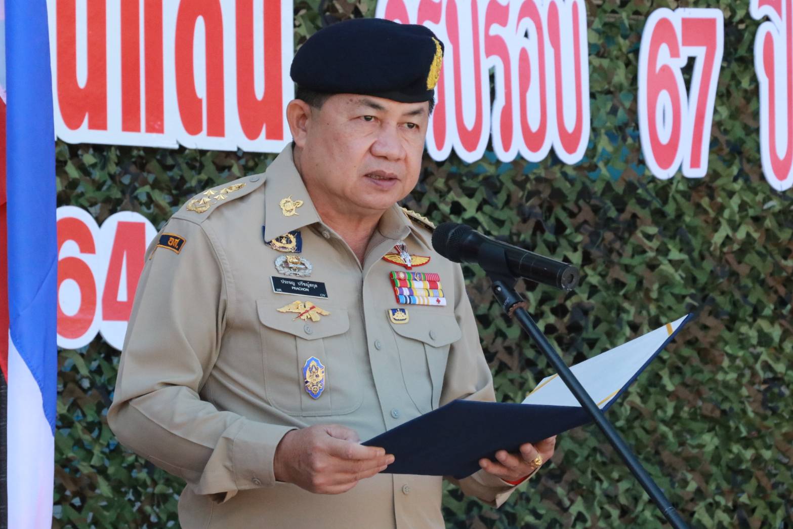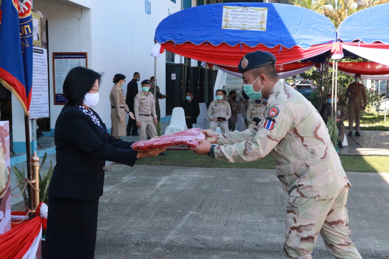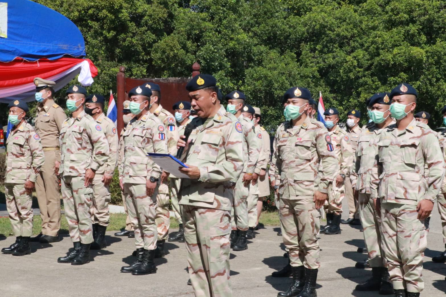 ในการนี้ นายภาษเดช หงส์ลดารมภ์ พร้อมกับนายวรวิทย์ ชัยสวัสดิ์ รอง ผวจ.เชียงราย รวมทั้งนางดวงจิตต์ ปรัญช์สกุล ประธานแม่บ้านมหาดไทย รวมทั้งนายประเสริฐ จิตต์พลีชีพ ปลัดจังหวัดเชียงราย พร้อมด้วย ผู้บังคับบัญชาทั้งฝ่ายทหาร ตำรวจ เจ้าหน้าที่ และ สมาชิกอาสารักษาดินแดน บุตร ธิดา สมาชิกอาสารักษาดินแดน ร่วมในพิธีอย่างพร้อมเพรียง