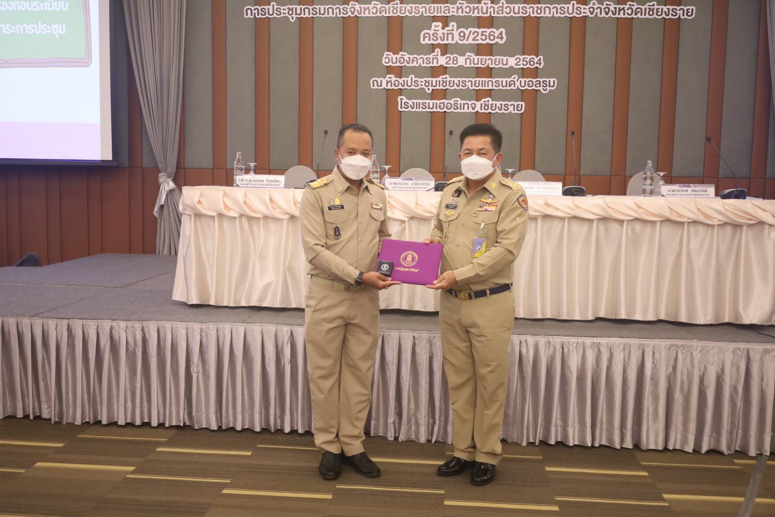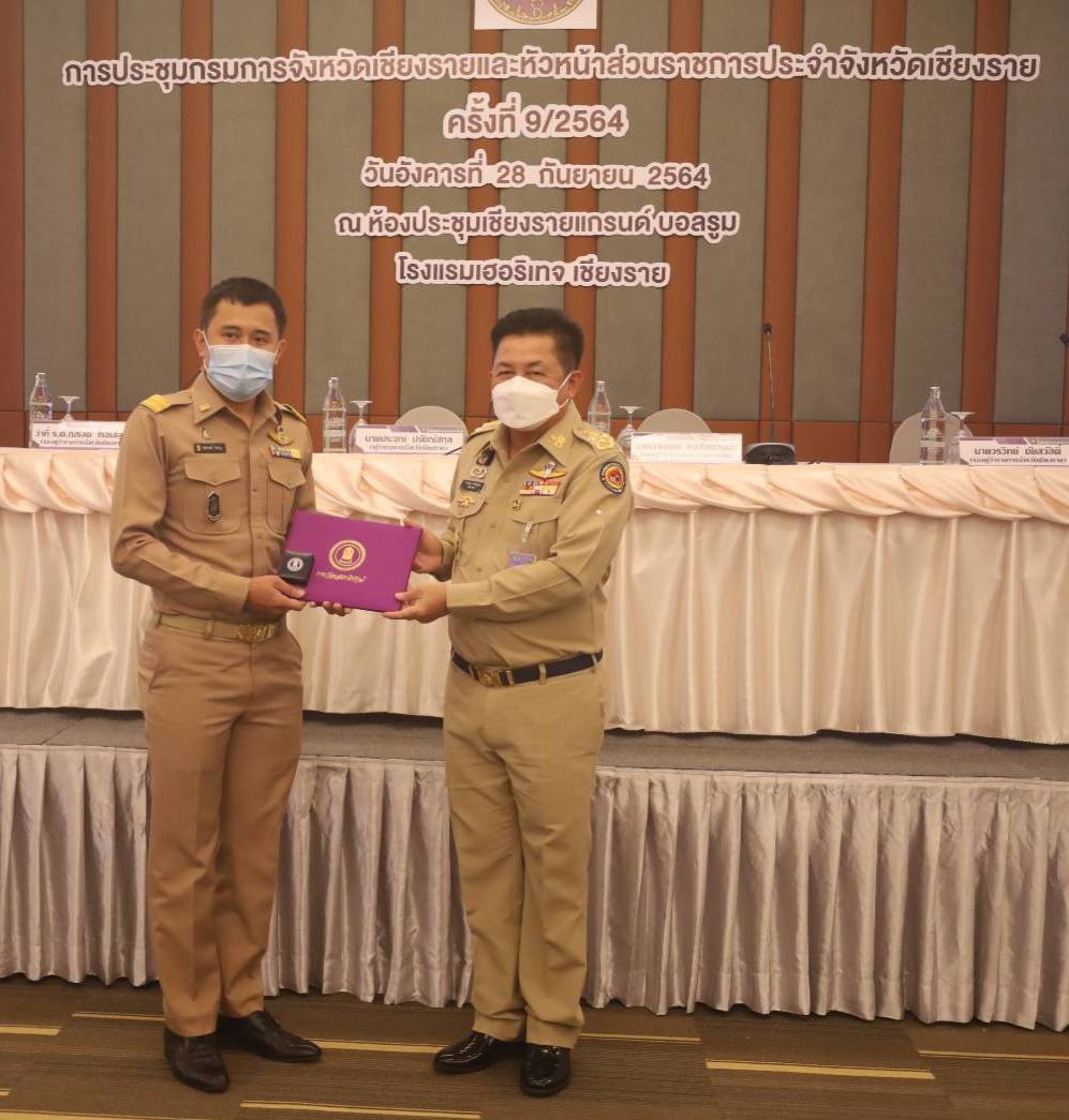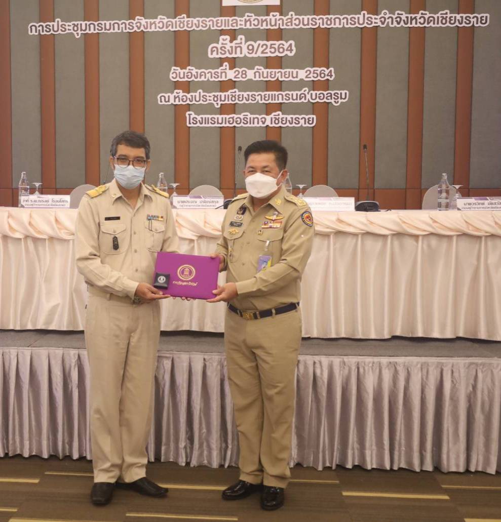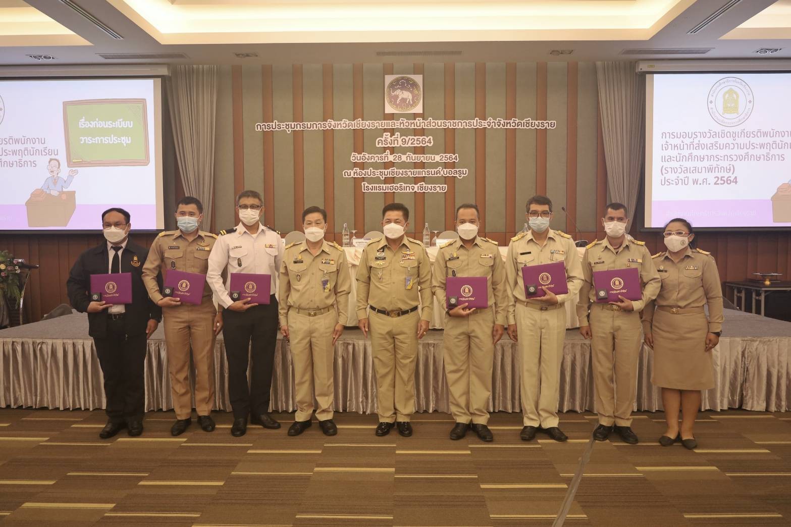 วันที่ 28 ก.ย. 64 นายประจญ ปรัชญ์สกุล ผวจ.เชียงราย มอบรางวัลเชิดชูเกียรติ พนักงานเจ้าหน้าที่ส่งเสริมความประพฤตินักเรียนและนักศึกษา กระทรวงศึกษาธิการ (รางวัลเสมาพิทักษ์) ประจำปี พ.ศ. 2564 ในการประชุมกรมการจังหวัดเชียงรายและหัวหน้าส่วนราชการประจำจังหวัดเชียงราย ครั้งที่ 9/2562 ณ ห้องประชุมเชียงรายแกรนด์รูม โรงแรมเฮอริเทจเชียงราย
