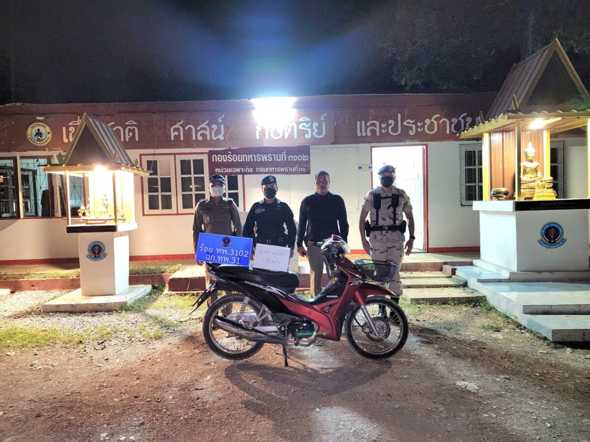 ทหารพราน 3102 ตรวจยึด จยย.เตรียมขนข้ามน้ำโขง ด้าน 2 คนร้ายโดดลงเรือหลบหนี