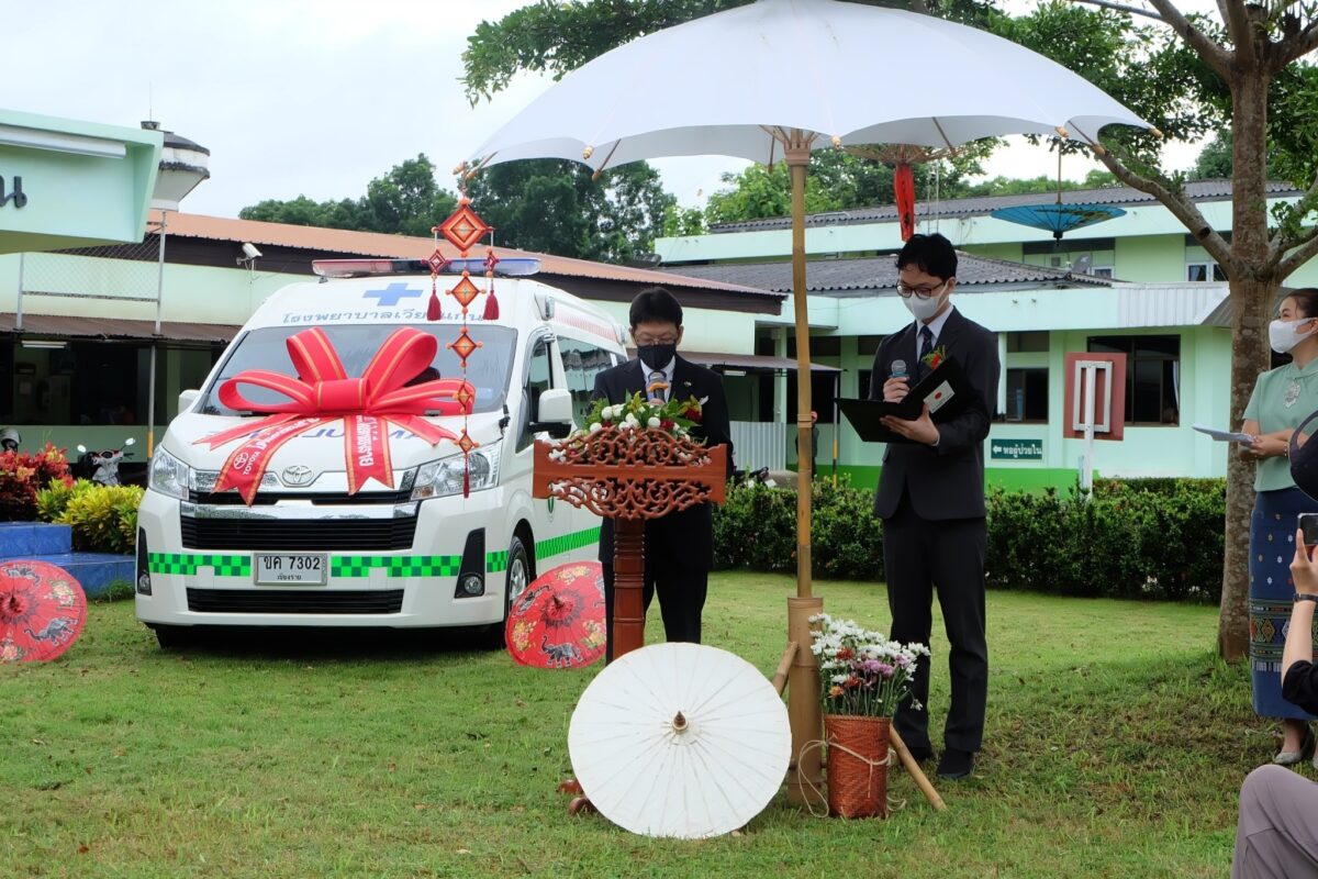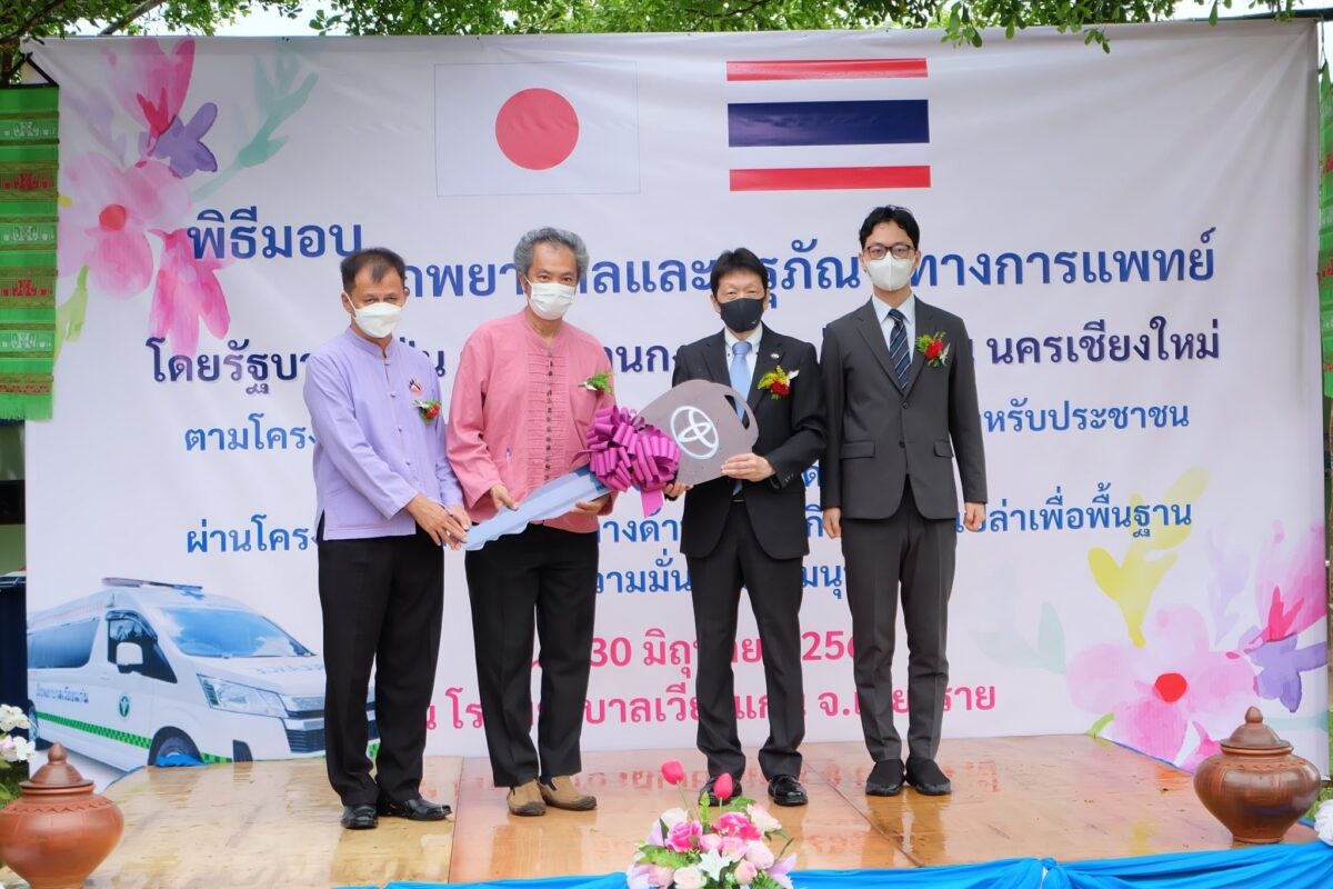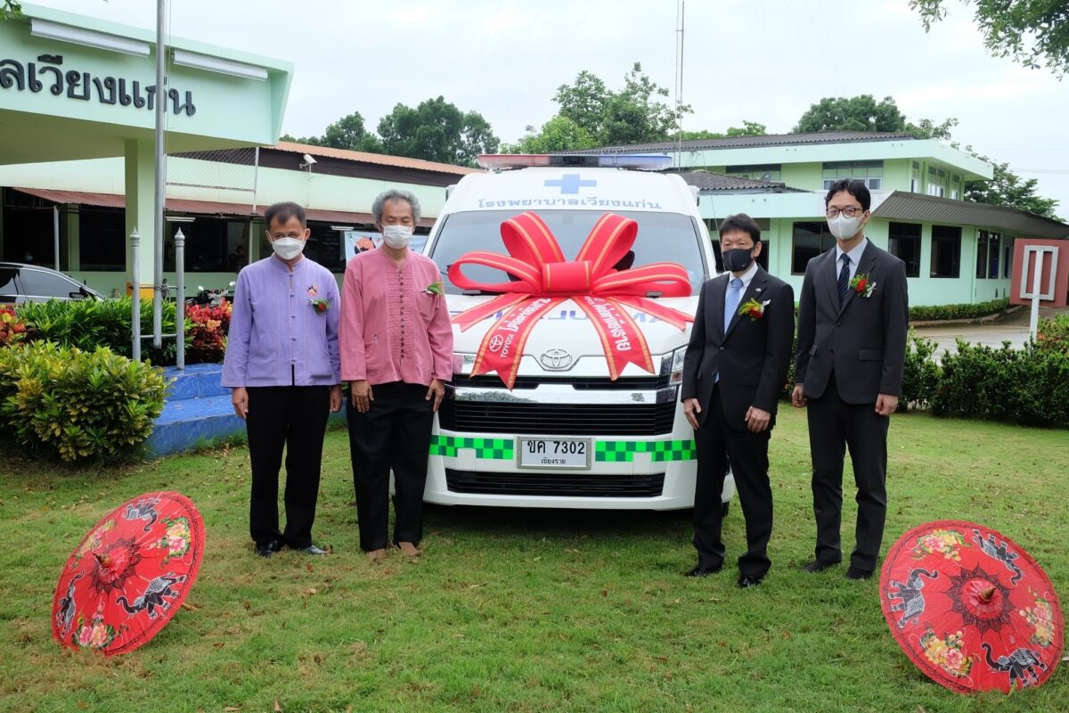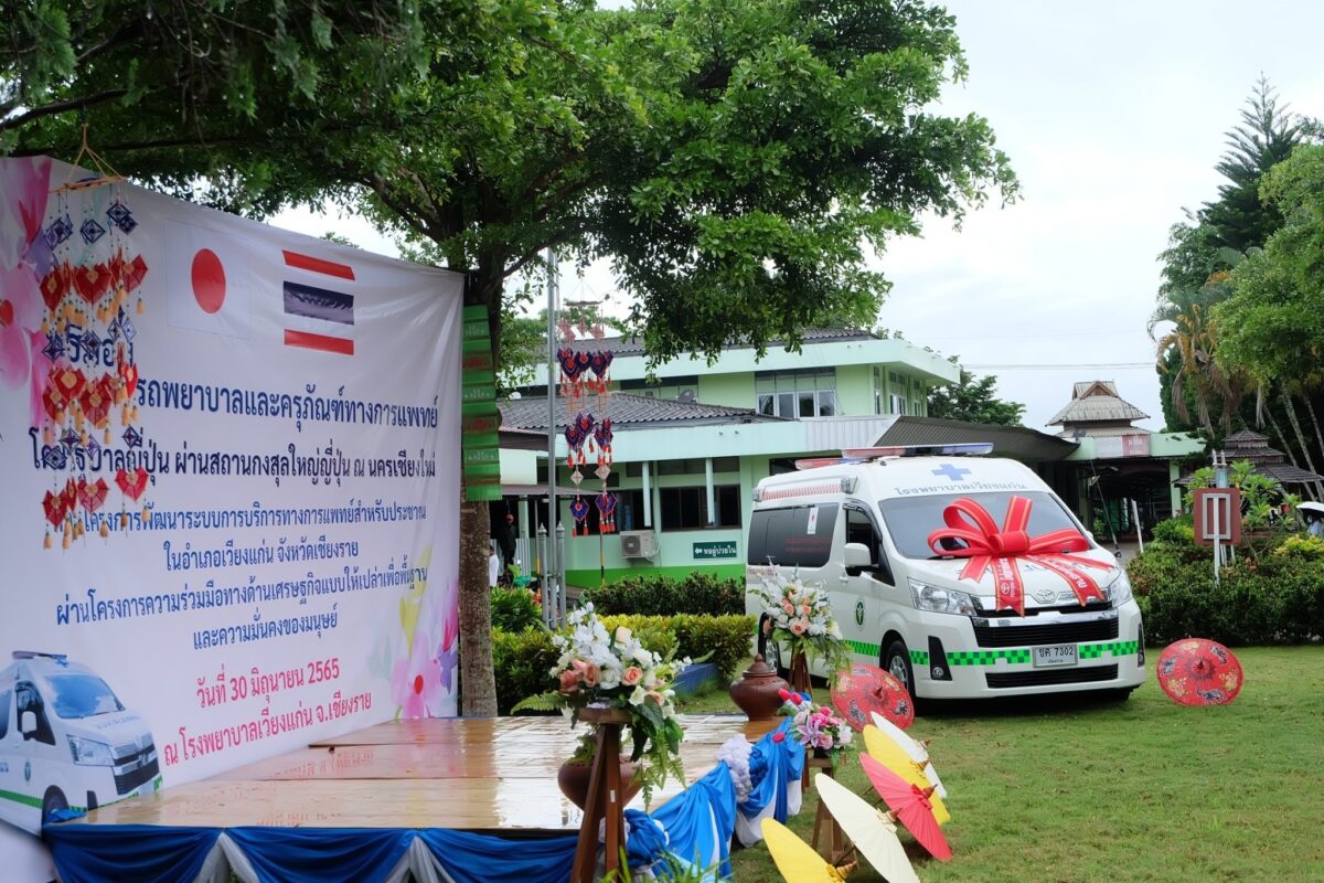 เมื่อวันที่ 1 ก.ค. 65 นพ.กิติพัฒน์ ลาชโรจน์ ผู้อำนวยการโรงพยาบาลเวียงแก่น เผยว่า นายฮิกุจิ เคอิจิ (Mr.HIGUCHI Keiichi) กงสุลใหญ่ญี่ปุ่น ณ นครเชียงใหม่ และนายซิงเซกิ ฮิโรมิ (Mr.Shinzeki Hiromi) รองกงสุล ได้เดินทางมามอบรถพยาบาลและครุภัณฑ์ทางการแพทย์แก่โรงพยาบาลเวียงแก่น จ.เชียงราย ตามโครงการพัฒนาระบบการบริการทางการแพทย์สำหรับประชาชนใน อ.เวียงแก่น จ.เชียงราย ผ่านโครงการความร่วมมือทางด้านเศรษฐกิจแบบให้เปล่าเพื่อพื้นฐานและความมั่นคงของมนุษย์ (โครงการคุซะโนะเนะ)