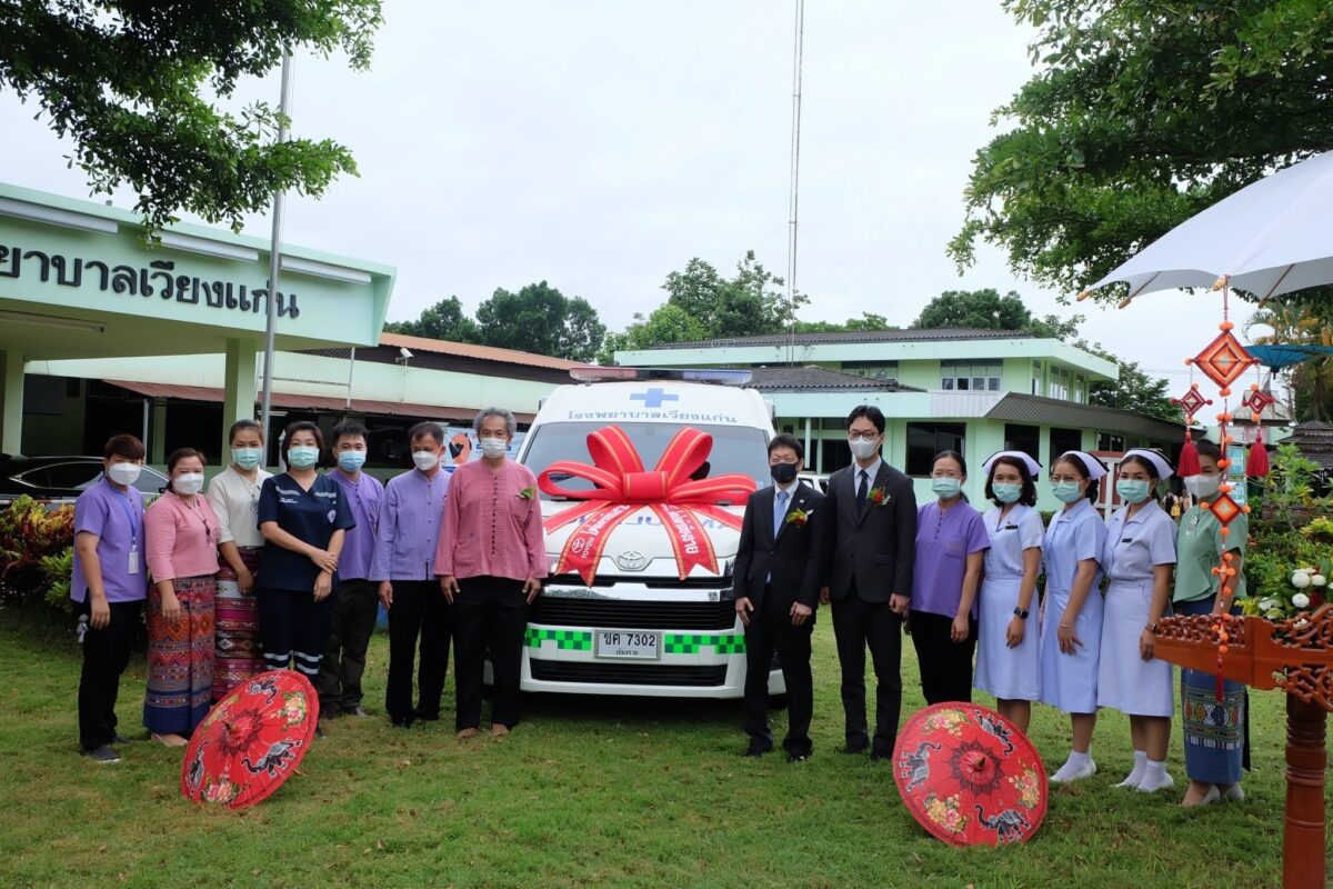 โดยมี นพ.กิติพัฒน์ ลาชโรจน์ ผู้อำนวยการโรงพยาบาลเวียงแก่น นายกิ่งเพชร พันธ์ประยูร ปลัดอำเภอหัวหน้ากลุ่มงานบริหารงานปกครอง พร้อมด้วยหัวหน้าส่วนราชการ และเจ้าหน้าที่โรงพยาบาลเวียงแก่นร่วมต้อนรับ และรับมอบรถพยาบาลและครุภัณฑ์ทางการแพทย์ โดยได้รับการสนับสนุนงบประมาณจากรัฐบาลญี่ปุ่น จำนวนเงิน 3,014,000 บาท