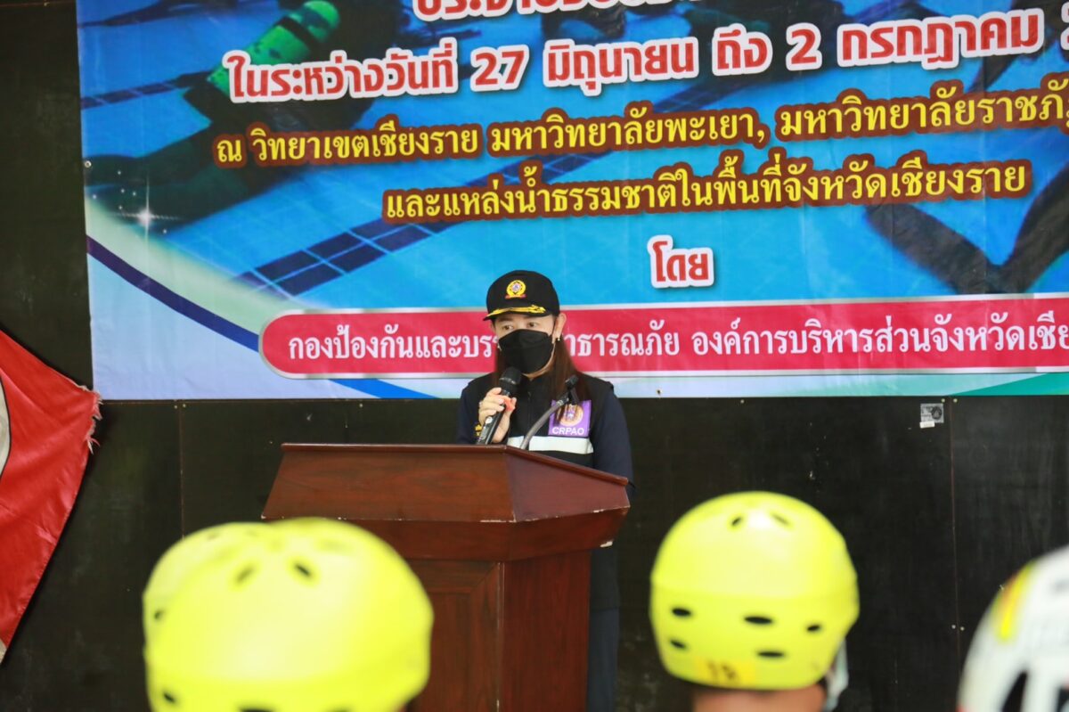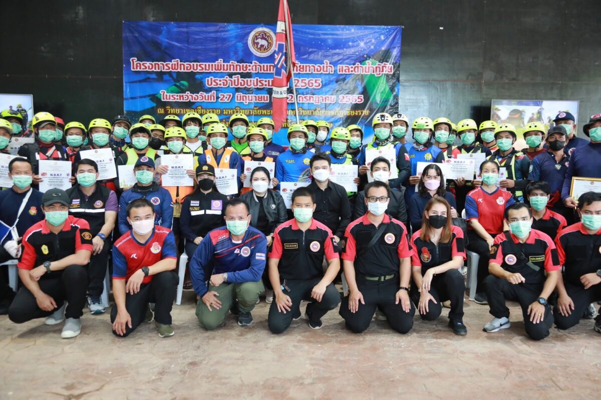 มาตั้งแต่วันที่ 27 มิถุนายน – 2 กรกฎาคม 2565 โดยมีผู้เข้าร่วมโครงการประกอบด้วย เจ้าหน้าที่ผู้ปฏิบัติงานด้านป้องกันและบรรเทาสาธารณภัย เจ้าหน้าที่ อาสาสมัครกู้ชีพกู้ภัยของหน่วยงานมูลนิธิ และสมาคมต่างๆ ในพื้นที่จังหวัดเชียงราย การดำเนินโครงการประกอบด้วย การเพิ่มทักษะการกู้ภัยทางน้ำ ดำน้ำกู้ภัย และได้ฝึกการใช้อุปกรณ์กู้ภัยทางน้ำอย่างมีระบบแบบแผน สร้างเครือข่ายที่เข้มแข็งและกว้างขวางในการประสานงาน การปฏิบัติภารกิจร่วมกันระหว่างหน่วยงานภาครัฐและประชาชนอย่างมีประสิทธิภาพ เพื่อลดความ