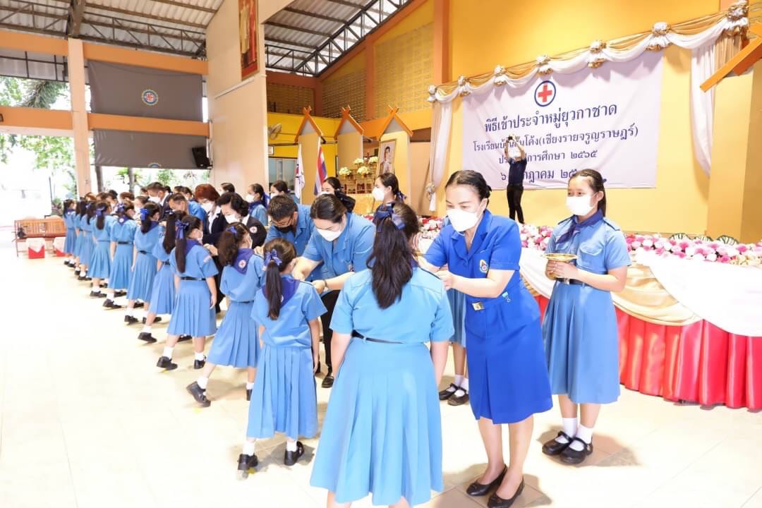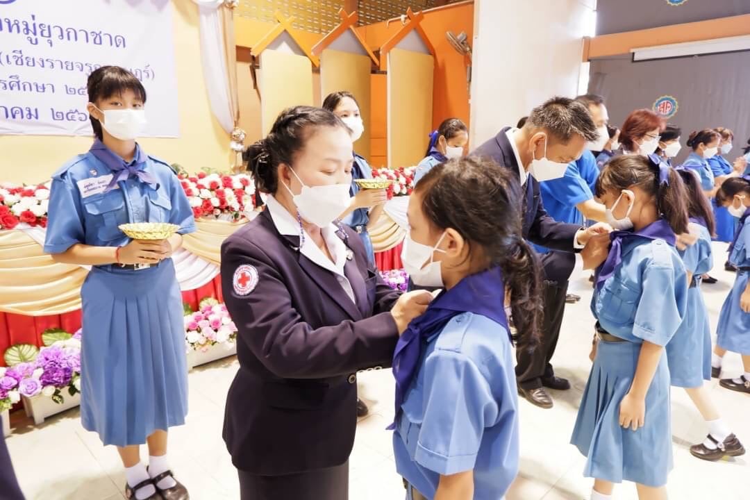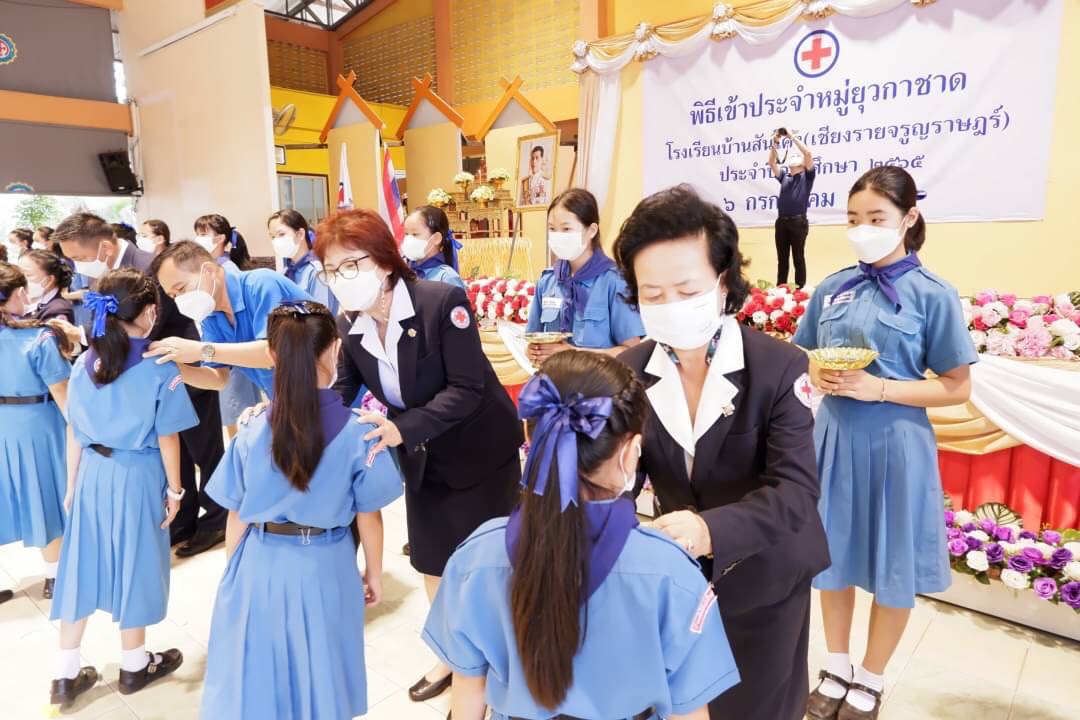 วันที่ 6 ก.ค. 65 เวลา 09.00 น. นางบุษบา บุญญลักษม์ นายกเหล่ากาชาดจังหวัดเชียงราย มอบหมายให้ นายธวัช หล้านามวงค์ ผู้ช่วยนายกเหล่ากาชาดจังหวัดเชียงราย เป็นประธานในพิธี เข้าประจำหมู่สมาชิกยุวกาชาด ประจำปีการศึกษา 2565 และมอบเข็มยุวกาชาดให้สมาชิกยุวกาชาดใหม่ ณ อาคารอเนกประสงค์ 2 โรงเรียนบ้านสันโค้ง (เชียงรายจรูญราษฎร์) โดย คณะกรรมการ-สมาชิกเหล่ากาชาดจังหวัดเชียงราย กลุ่มที่ 2 กรรมการ MOU ด้านการส่งเสริมและสนับสนุนกิจการยุวกาชาด และอาสากาชาด ร่วมเป็นเกียรติในพิธี