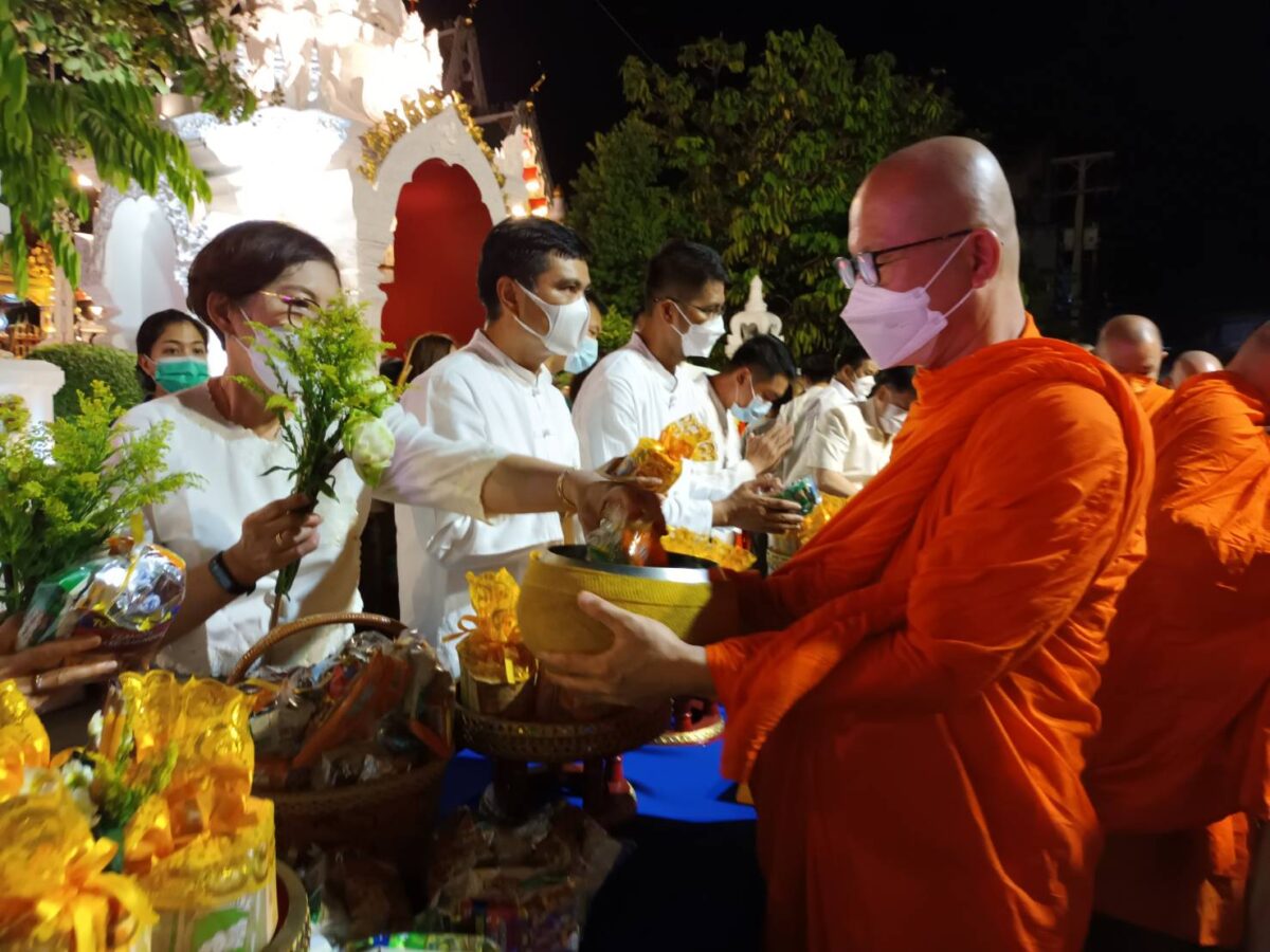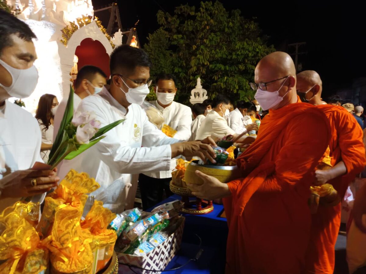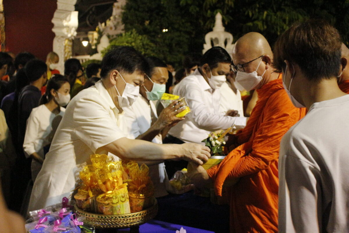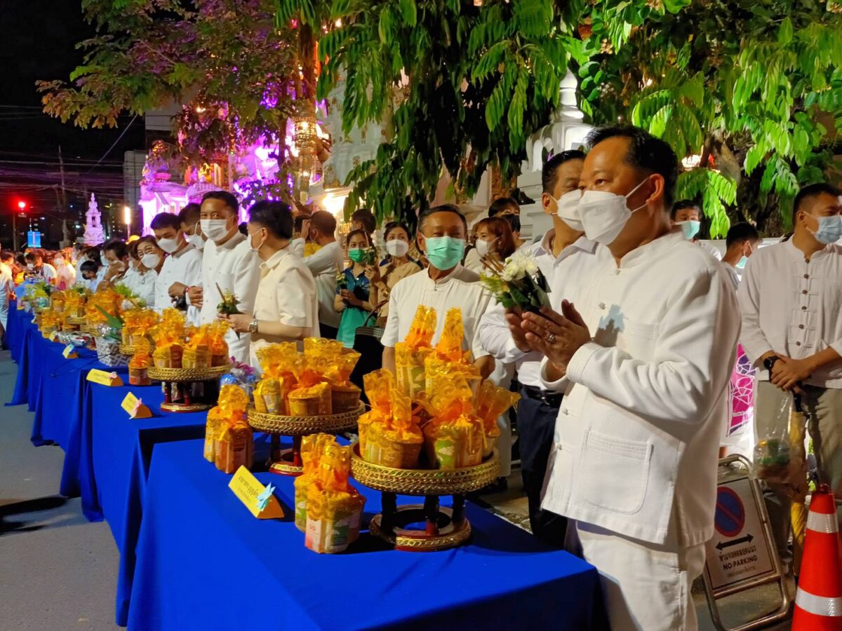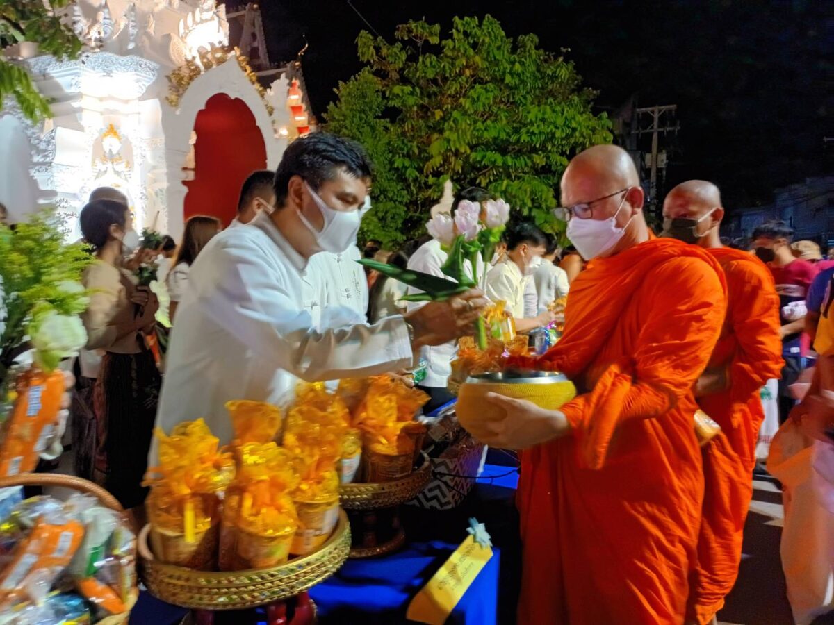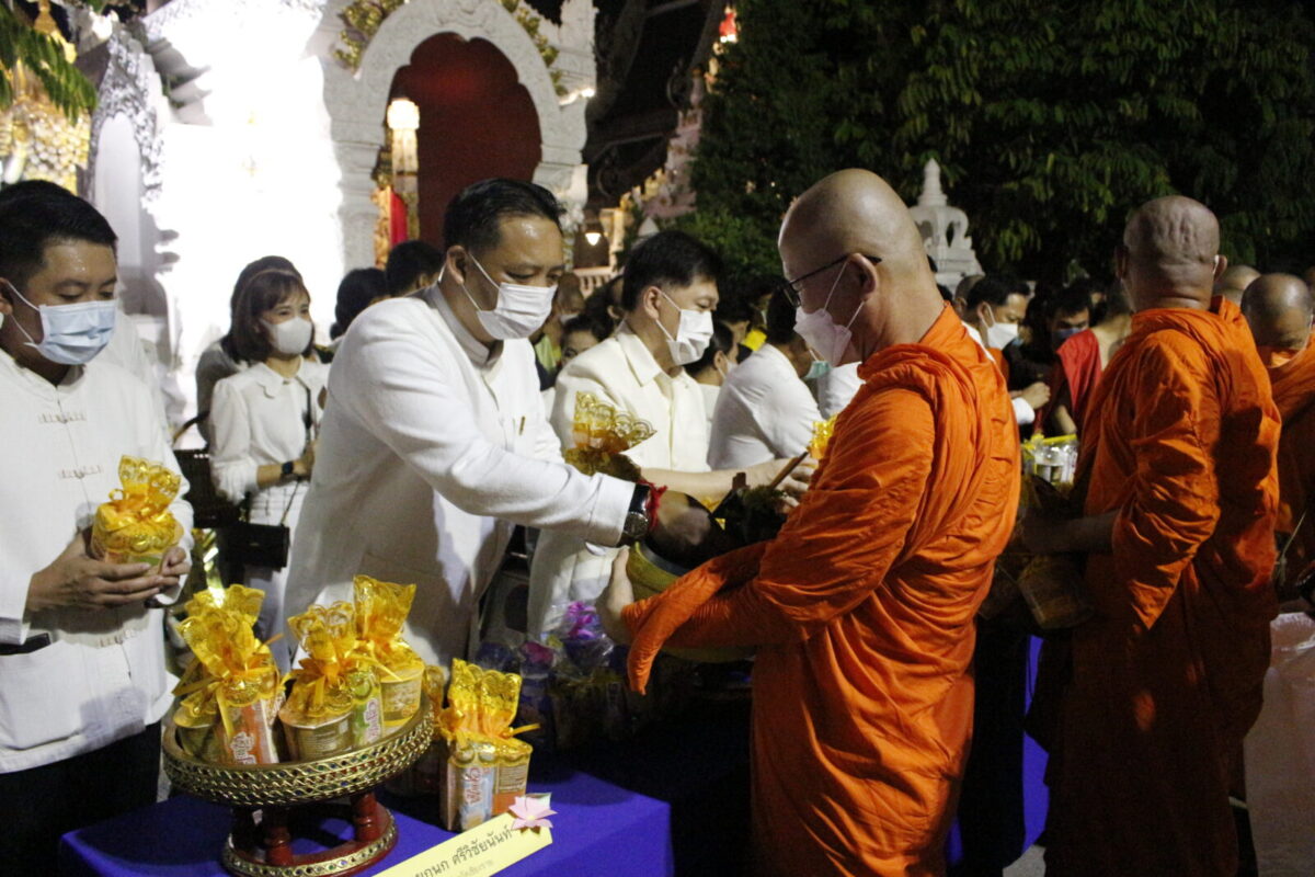 เมื่อเวลา 00.01 น. วันที่ 13 ก.ค. 65 ณ บริเวณหน้าวัดมิ่งเมือง ถ.บรรพปราการ อ.เมือง จ.เชียงราย นายภาสกร บุญญลักษม์ ผู้ว่าราชการจังหวัดเชียงราย พร้อมด้วยนายบัญชา เชาวรินทร์ รองผู้ว่าราชการจังหวัดเชียงราย นายกนก ศรีวิชัยนันท์ ปลัดจังหวัดเชียงรายหัวหน้าส่วนราชการ หน่วยงานราชการและชาวพุทธศาสนิกชน ร่วมตักบาตรเที่ยงคืน หรือ “ตักบาตรเป็งปุ๊ด” ในวันพุธ ที่เป็นวันเพ็ญขึ้น 15 ค่ำ