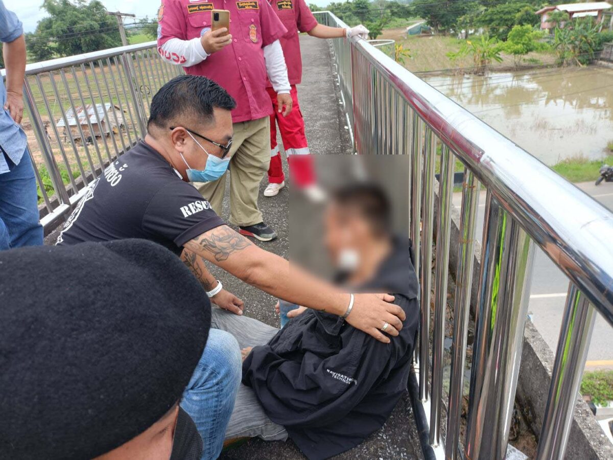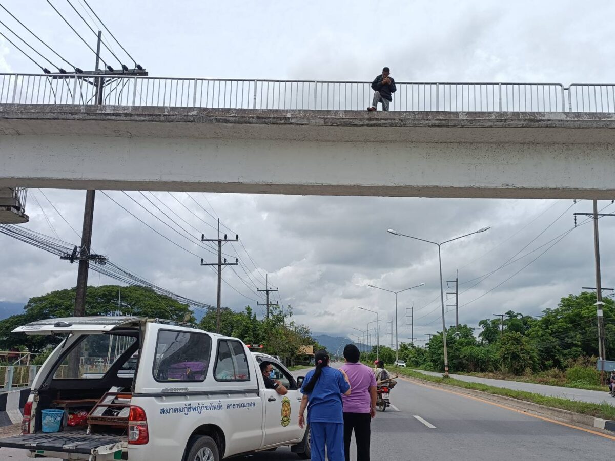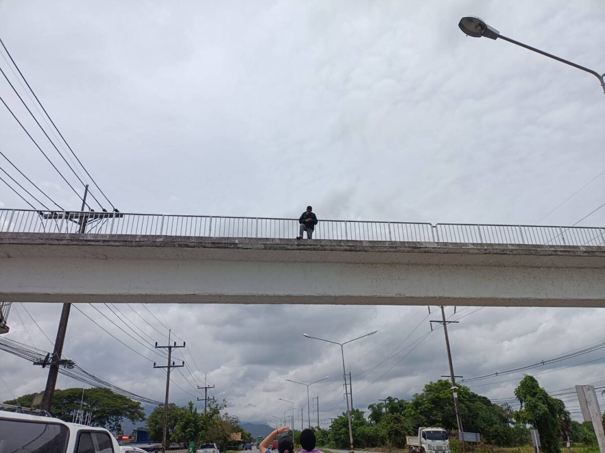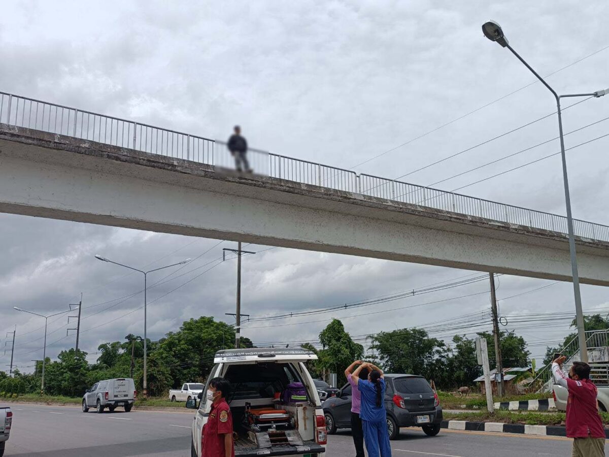 หนุ่มแม่สายเครียด เมียไม่ยอมคืนดี ขึ้นสะพานลอยหวังกระโดดตัดปัญหา