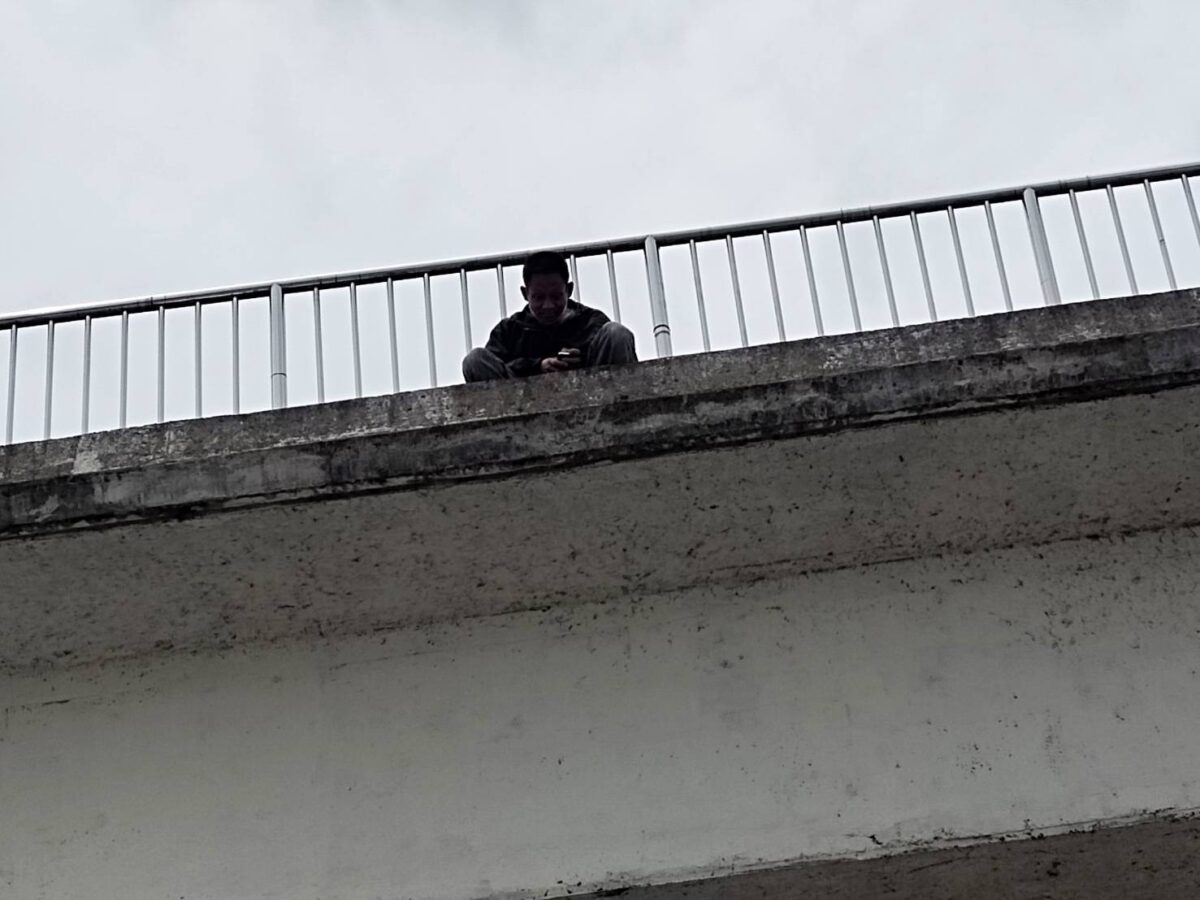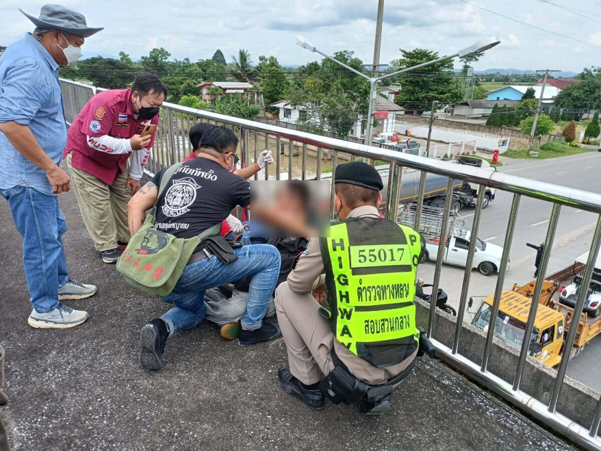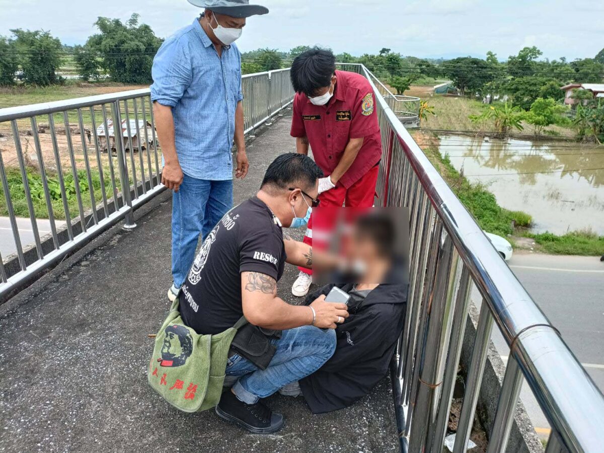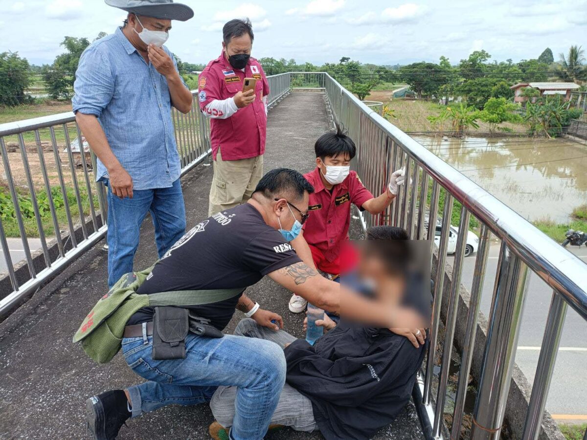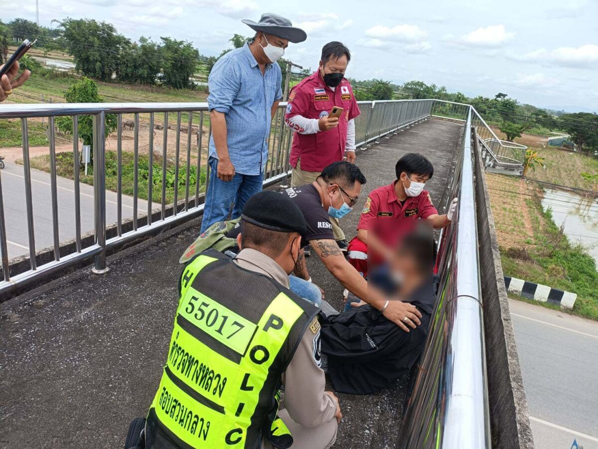 หนุ่มแม่สายเครียด เมียไม่ยอมคืนดี ขึ้นสะพานลอยหวังกระโดดตัดปัญหา