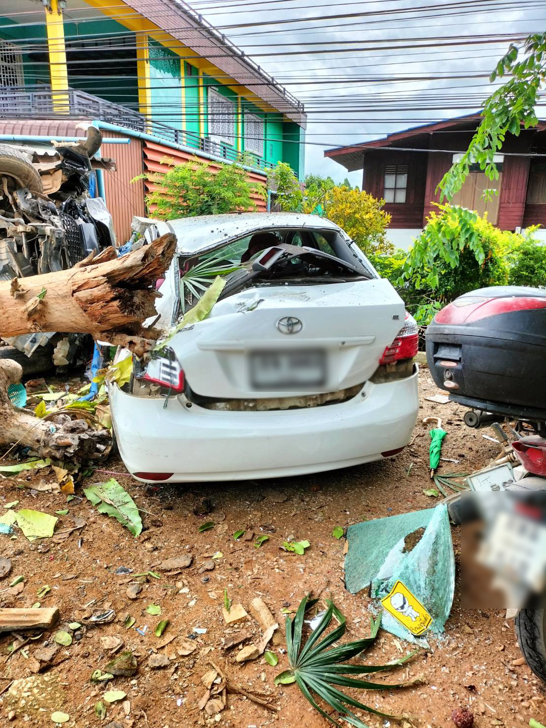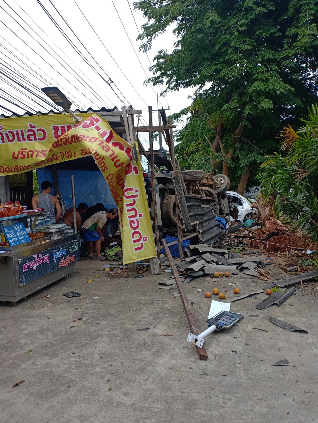 เมื่อไปถึงพบนายวินัย(สงวนนามสกุล) อายุ 42 ปี ชาว ต.แม่กา อ.เมือง จ.พะเยา คนขับรถรถกระบะ ยี่ห้อมิตซูบิชิไทรทันสีดำ ทะเบียน พะเยา โดยรถอยู่ในเสียหาย ใกล้กันมีรถ เก๋งโตโยต้า สีขาว ทะเบียนลำพูน และรถเก๋งโตโยต้าอัลติส ทะเบียน 7449 เชียงราย และรถจักรยานยนต์เสียหายอีก 2 คัน ในที่เกิดเหตุเจ้าหน้าที่ได้พบร่างของ น.ส.จตุพร พูลเกต ชาว ต.รอบเวียง อ.เมือง จ.เชียงราย ซึ่งเป็นลูกค้าที่มาซื้อของที่ร้าน และร่างของ นางอารีย์ ใจดี อายุ 62 ปี เป็นแม่ค้าขายผลไม้ ชาว ต.ป่ากาอดำ อ.แม่ลาว จ.เชียงราย