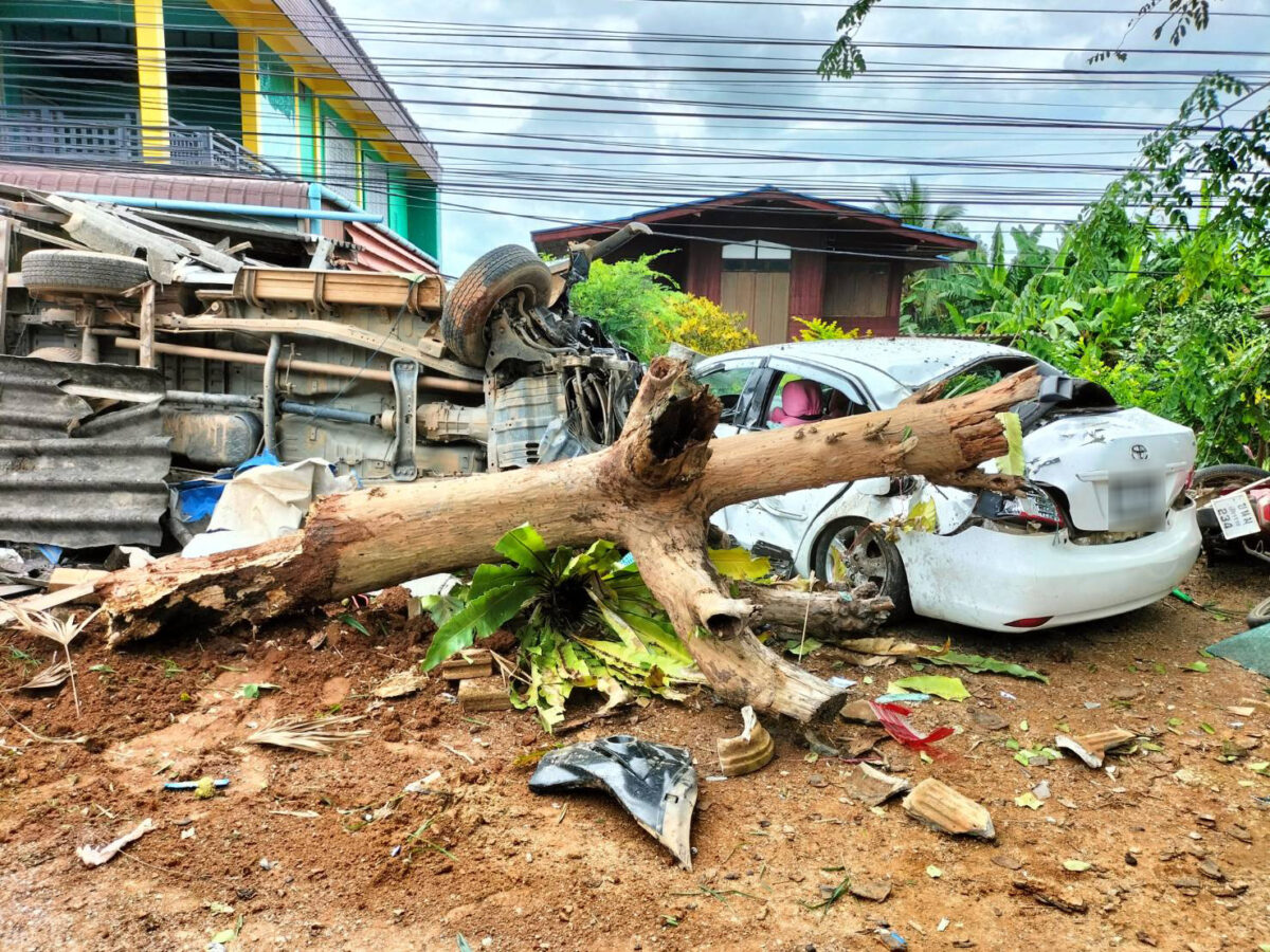 กระบะเมาแล้วขับ อ้างรถตัดหน้าหักหลบพุ่งชนคนข้างทางเสียชีวิต 2 ศพ เจ็บอีก 2