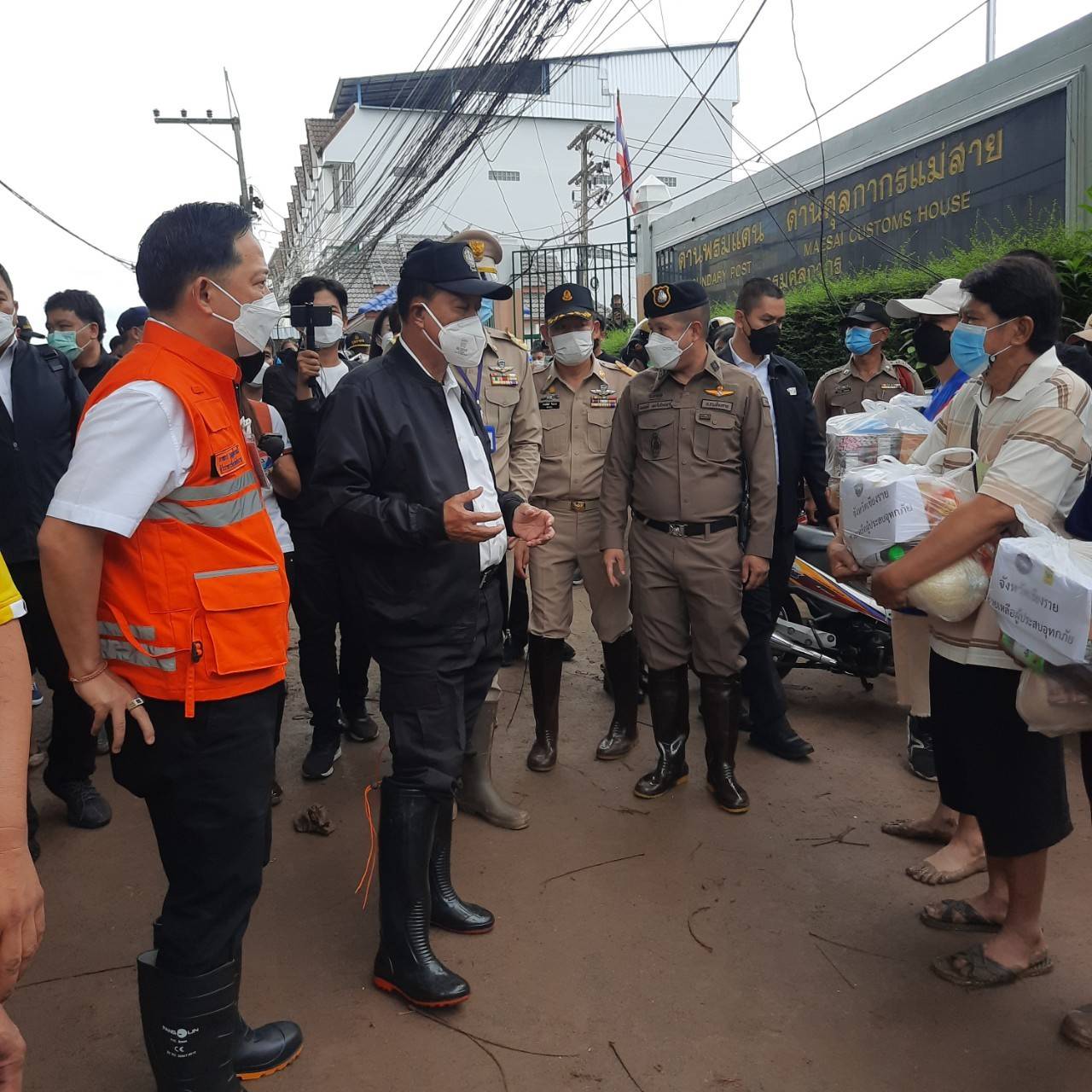 เวลา 09.20 น.พลเอกอนุพงษ์ เผ่าจินดา รัฐมนตรีว่าการกระทรวงมหาดไทย(มท.1) และคณะ เดินทางเดินมาเยี่ยมเยือนและมอบถุงยังชีพ เครื่องอุปโภคบริโภค น้ำดื่มให้กับชาวบ้านที่ได้รับผลกระทบจากน้ำท่วม ที่หอประชุมอำเภอแม่สายและในพื้นที่ตลาดสายลมจอย สะพานแห่งที่ 1 อำเภอแม่สาย จังหวัดเชียงราย