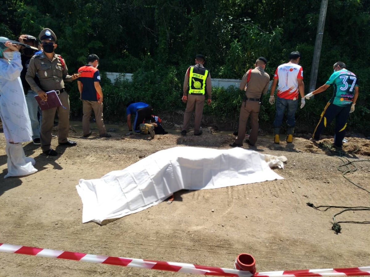 จากการสอบสวนเบื้องต้นทราบว่า บริเวณดังกล่าวกำลังมีการก่อสร้างขยายถนน ในช่วงกลางวันคนงานก่อสร้างถนน ได้ทำการสูบน้ำในร่องน้ำออก เพื่อจะเตรียมว่างท่อตามริมทาง แต่ปรากฏว่าเจอรองเท้าแตะและกระเป๋าสะพายของผู้ตายลอยขึ้นมาเหนือน้ำ และเมื่อสูบน้ำออกเพิ่มเติมก็เจอร่างผู้เสียชีวิตนอนคว่ำหน้าอยู่ในร่องน้ำ จึงแจ้ง ปภ.ทต.งิ้ว มาทำการตรวจสอบเบื้องต้น และประสานหน่วยงานต่างๆมาทำการตรวจที่เกิดเหตุ