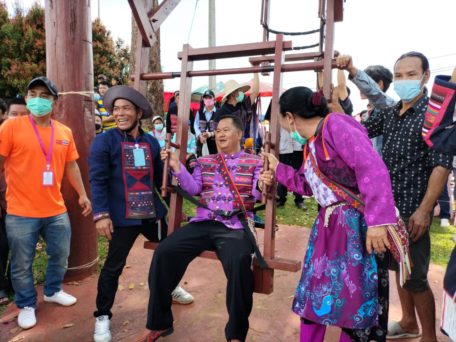 ชาวต่างชาติชื่นชอบประเพณีวัฒนธรรมชาวอาข่า ในงานประเพณีโล้ชิงช้ากระทุ้งกระบอกไม้ไผ่ “บ่อ ฉ่อง ตุ๊” ประจำปี 2022