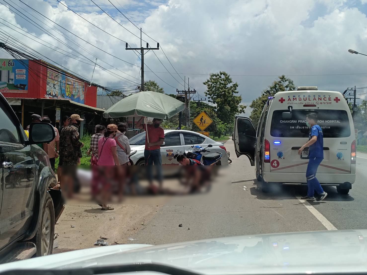 จากการตรวจสอบกล้องวงจรปิด เห็นว่า ผู้ขับขี่รถจักรยานยนต์ขับมาจาก อ.เทิง ได้หยุดรอดูรถเพื่อจะขับข้ามถนนเพื่อจะเลี้ยวเข้าบ้านที่อยู่ในซอย 2 แต่จังหวะข้ามถนน คาดว่าคนขี่ จยย. ไม่ทันมองเห็นรถยนต์ฟอร์จูนเนอร์ที่ขับมาจากทางเชียงรายมุ่งหน้าไปทาง อ.เทิง จึงชนกันเข้าอย่างจัง ร่างผู้บาดเจ็บถูกชนกระเด็นไปไกลประมาณ 10 เมตร นอนแน่นิ่งอยู่ริมถนน หลังประสานเจ้าหน้าที่แพทย์และตำรวจได้รีบรุดมาตรวจสอบที่เกิดเหตุอย่างเร่งด่วน ก่อนจะนำส่งร่างผู้บาดเจ็บไปรักษาที่ รพ.เชียงรายประชานุเคราะห์ ส่วนสาเหตุของอุบัติเหตุอยู่ระหว่างการสอบสวนและตรวจสอบพยานหลักฐานของเจ้ากน้าที่ตำรวจ