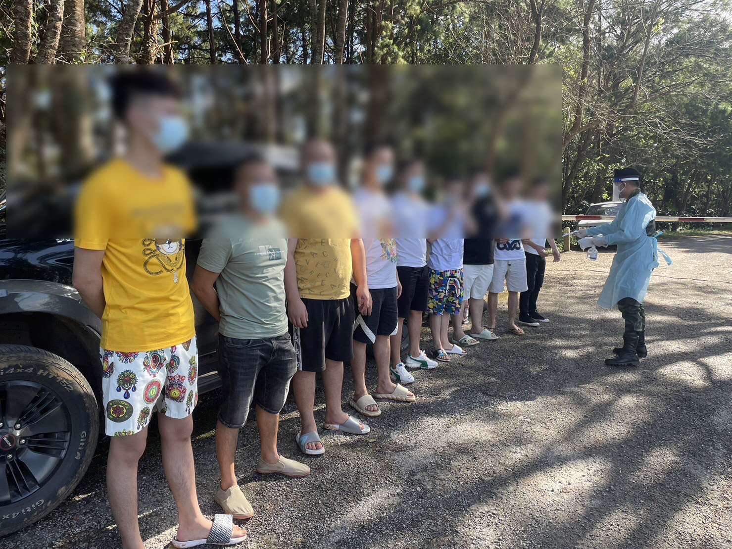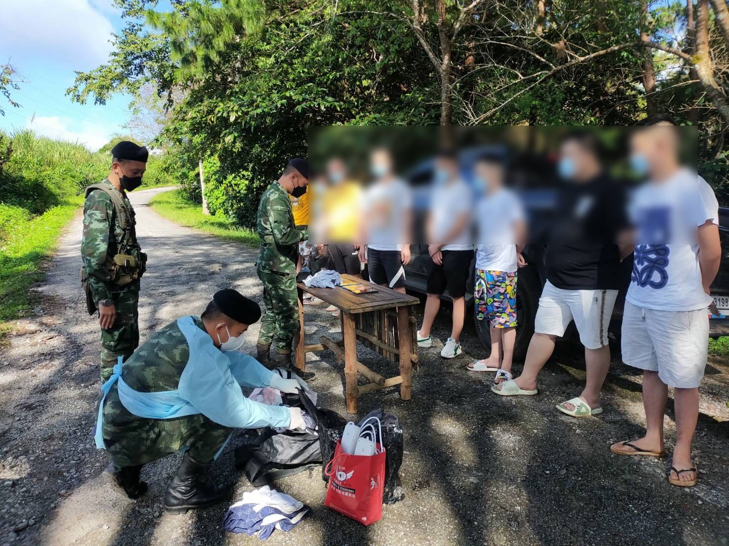 จากการตรวจสอบพบว่าทั้งหมดเป็นชาย สัญชาติจีน จำนวน 9 คน ซึ่งพึ่งหลบหนีเข้าเมืองมาจาก จ.ท่าขี้เหล็ก ประเทศเมียนมา ติดกับ อ.แม่สาย จ.เชียงราย โดยได้หลบหนีเข้ามาทางช่องทางผาขาว ประเทศเมียนมา ติดกับหมู่บ้านลิเซ เพื่อจะเดินทางต่อไปยัง อ.เมือง จ.เชียงราย แลกกับค่าจ้างคนละ 1,000 บาท จากการตรวจสอบสัมภาระของชาวจีนทั้งหมดพบมีโทรศัพท์มือถือจำนวน 45 เครื่อง บัตรเครดิตจำนวนมาก และเงินสดอีกจำนวนหนึ่ง