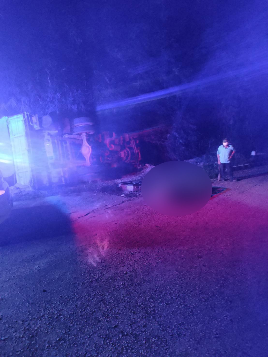 เมื่อเวลาประมาณ 18.30 น. วันที่ 30 ก.ย. 65 ร.ต.อ.พิชิต เชื้อเมืองพาน รอง สว.(สอบสวน) สภ.เวียงแก่น จ.เชียงราย รับแจ้งเหตุรถหกล้อเบรคแตกเสียหลักล้มตะแคงข้าง มีผู้เสียชีวิต 1 ราย และบาดเจ็บ 1 ราย จึงออกตรวจสอบพื้นที่เกิดเหตุร่วมกับแพทย์เวร รพ.เวียงแก่น และสมาคมกู้ภัยเจ้าหลวงเวียงแก่นสงเคราะห์