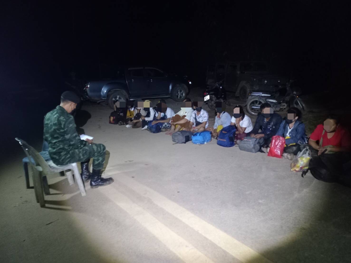 โดยได้ตรวจพบกลุ่มคนเดินฝ่าความมืดมาตามช่องทางธรรมชาติจากประเทศเพื่อนบ้าน เข้ามาในเขตประเทศไทย จึงได้แสดงตัวเข้าทำการตรวจสอบ พบว่าเป็นกลุ่มคนหลบหนีเข้าเมืองโดยผิดกฎหมาย สัญชาติเมียนมา จำนวน 13 คน เป็น ชาย 5 คน หญิง 8 คน จากการตรวจสอบไม่พบสิ่งผิดกฎหมายหรือยาเสพติด ทางเจ้าหน้าที่จึงได้ควบคุมตัวผู้ต้องหาทั้งหมด ส่งให้กับพนักงานสอบสวน สภ.แม่สาย เพื่อดำเนินการตามกฎหมายต่อไป