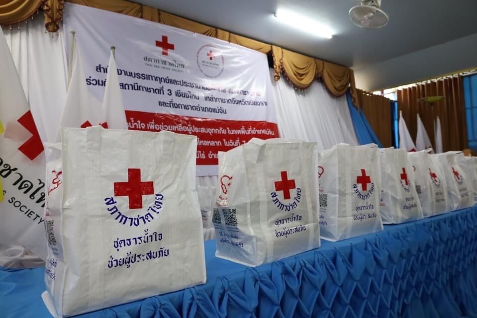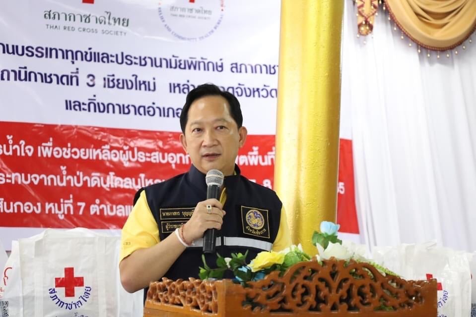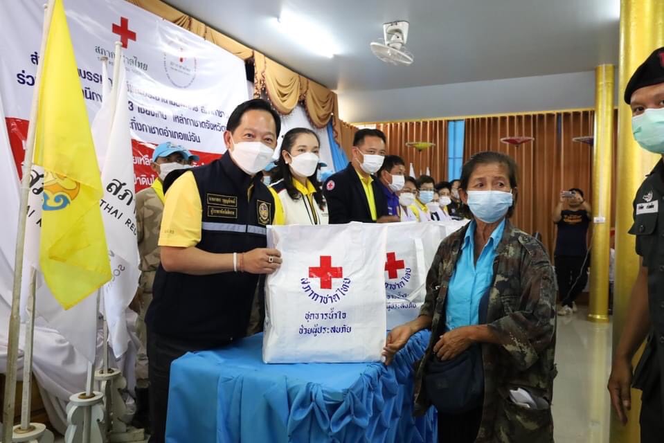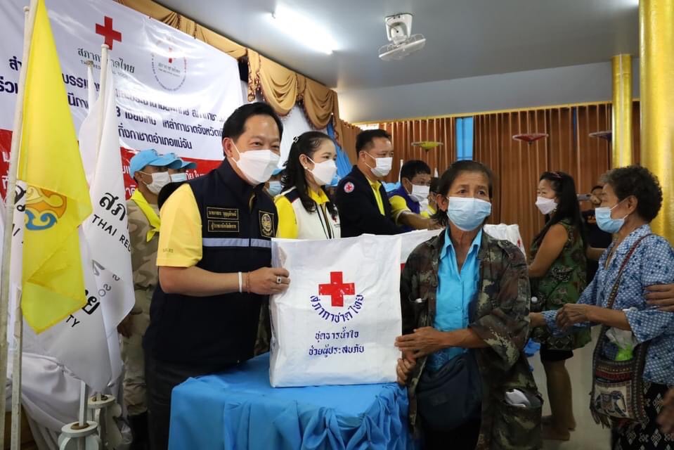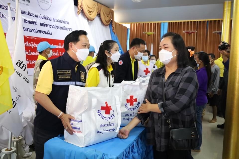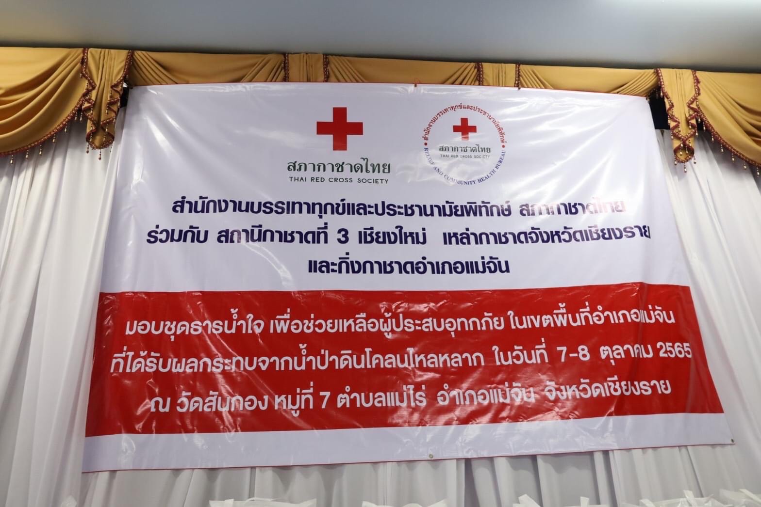 เหล่ากาชาดจังหวัดเชียงราย ร่วมกับ สถานีกาชาดที่ 3 เชียงใหม่ จัดพิธีมอบชุดธารน้ำใจสภากาชาดไทย แก่ผู้ประสบอุทกภัย ในพื้นที่ ต.แม่ไร่ อ.แม่จัน