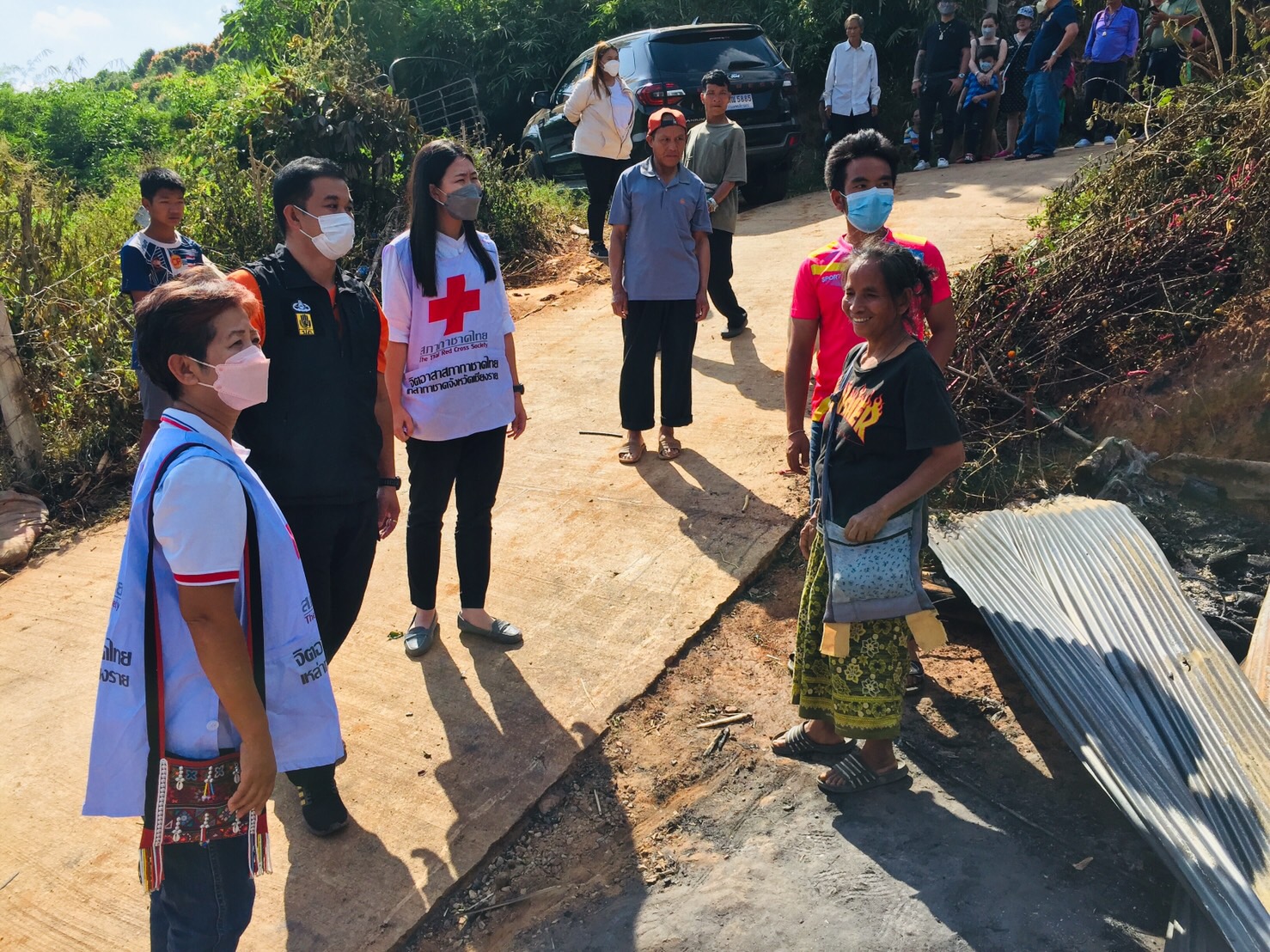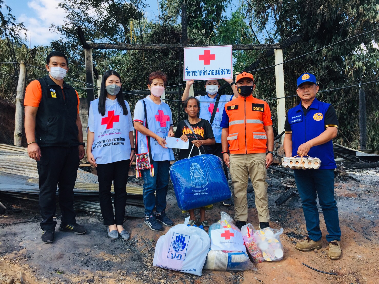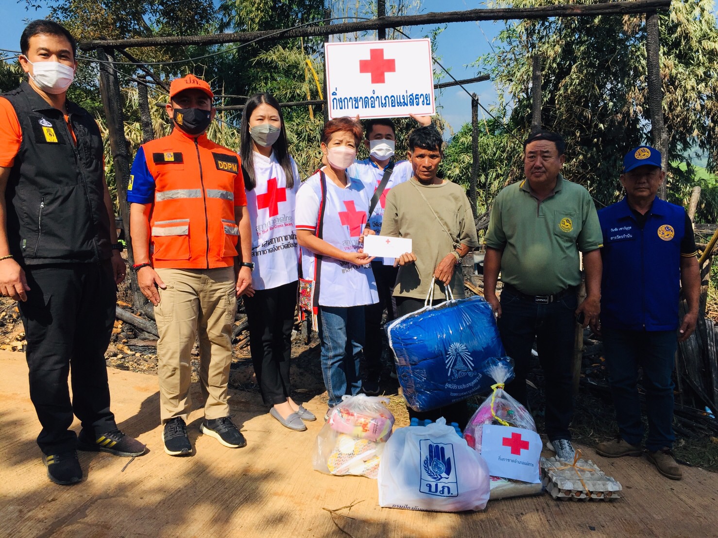 ในการนี้ทางกิ่งกาชาดอำเภอแม่แม่สรวยได้ให้ความช่วยเหลือ